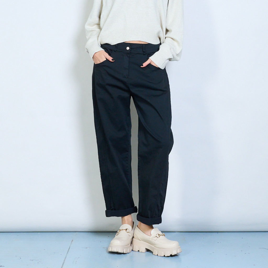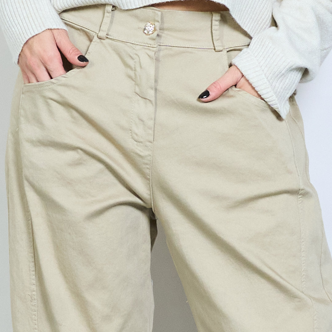 - Gambe leggermente affusolate con orli arricciati per una forma trendy
