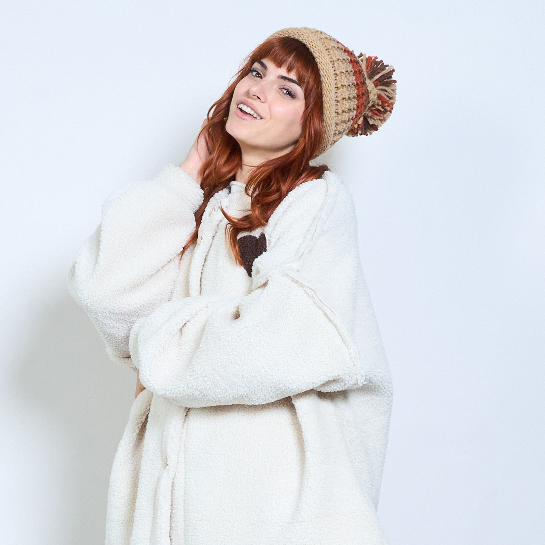 - Presenta un morbido pompon in pelliccia sintetica sulla parte superiore per un look invernale giocoso e accogliente