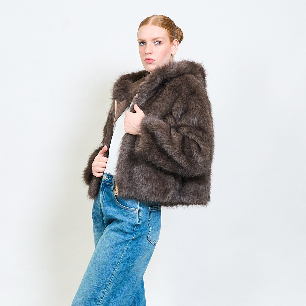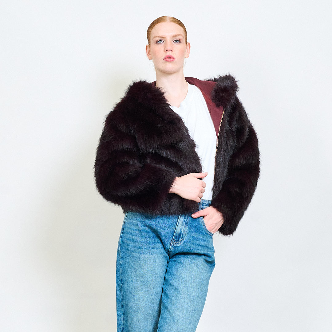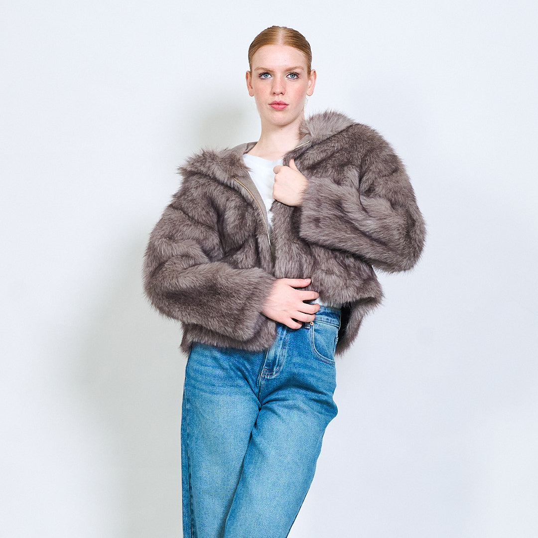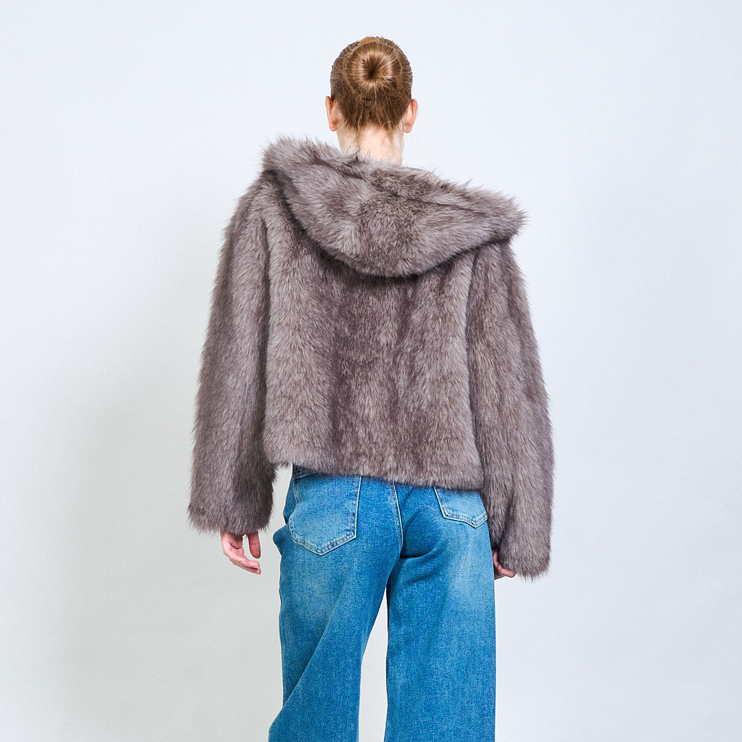 Giacca a pelliccia corta con felpa con cappuccio all'ingrosso