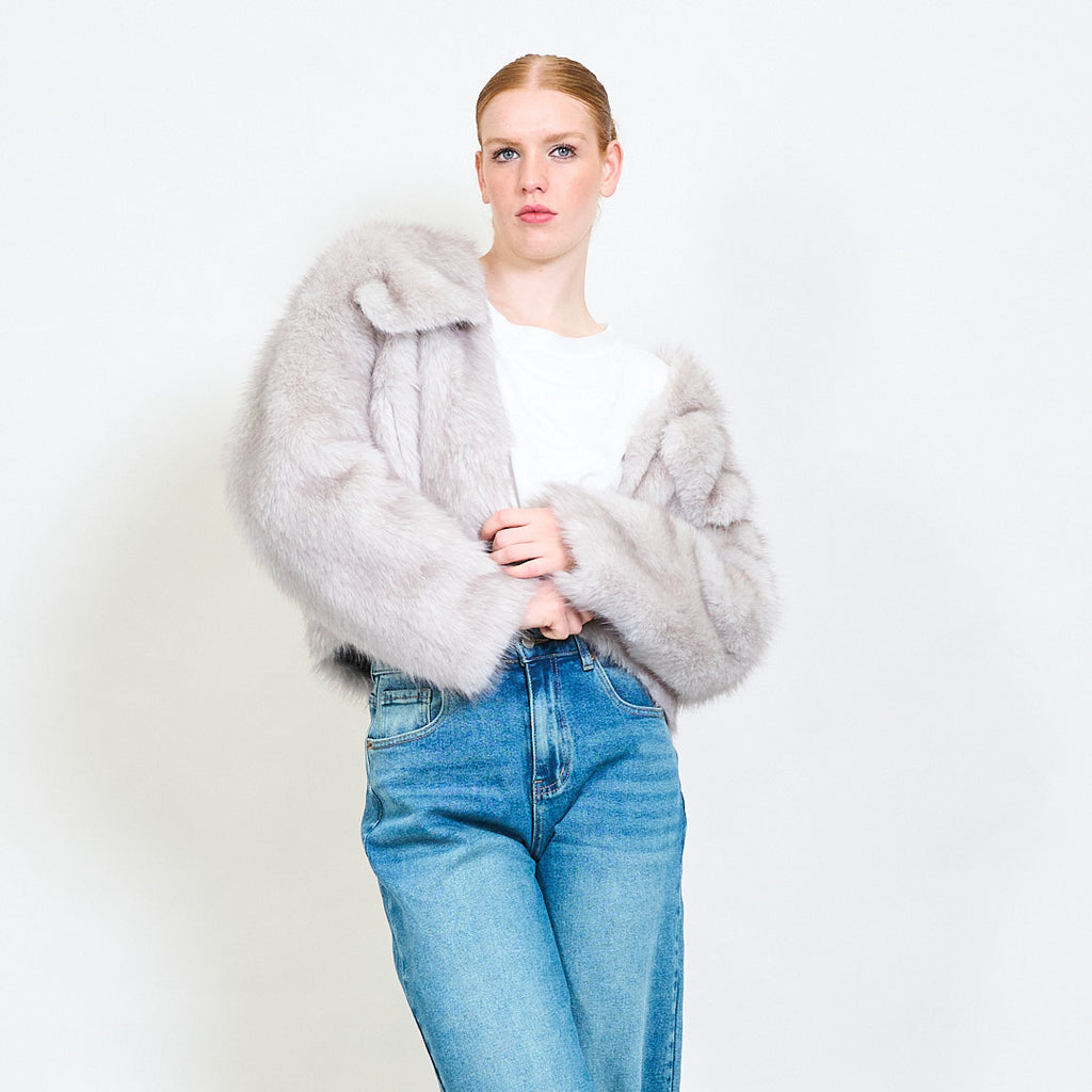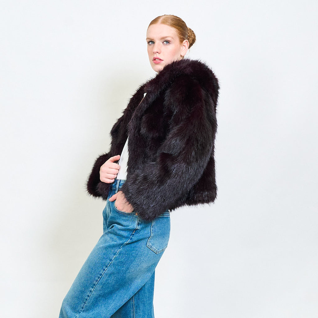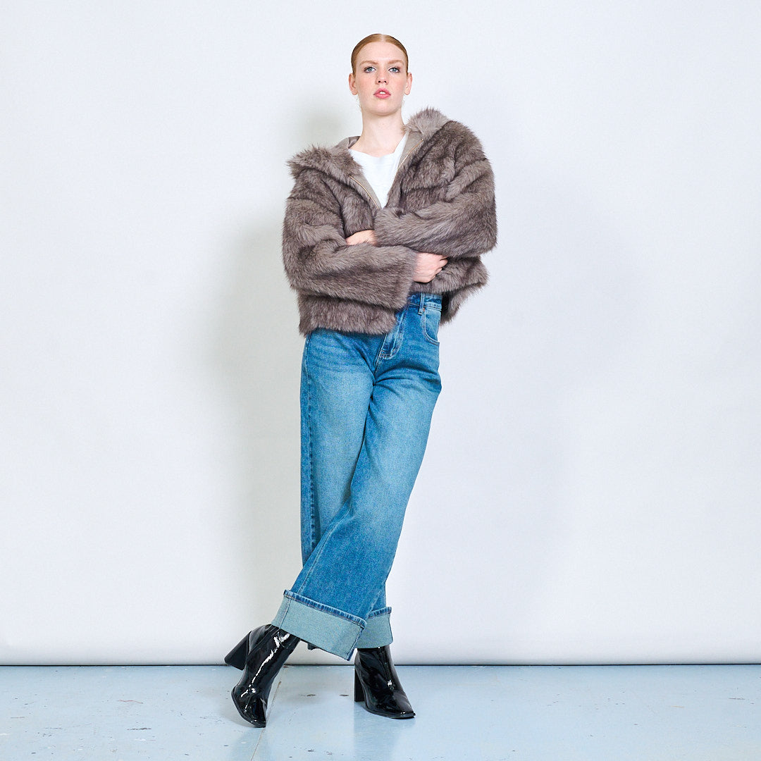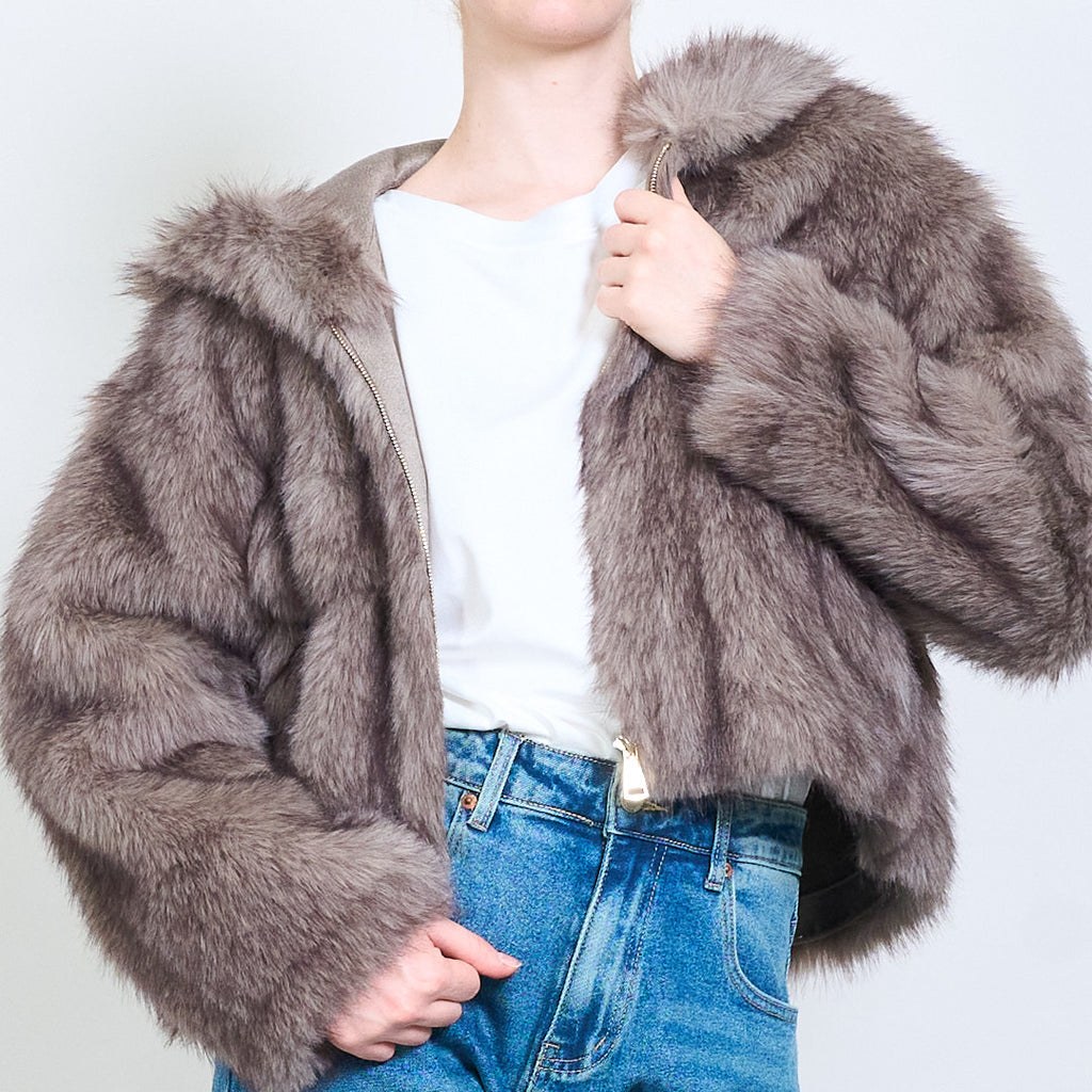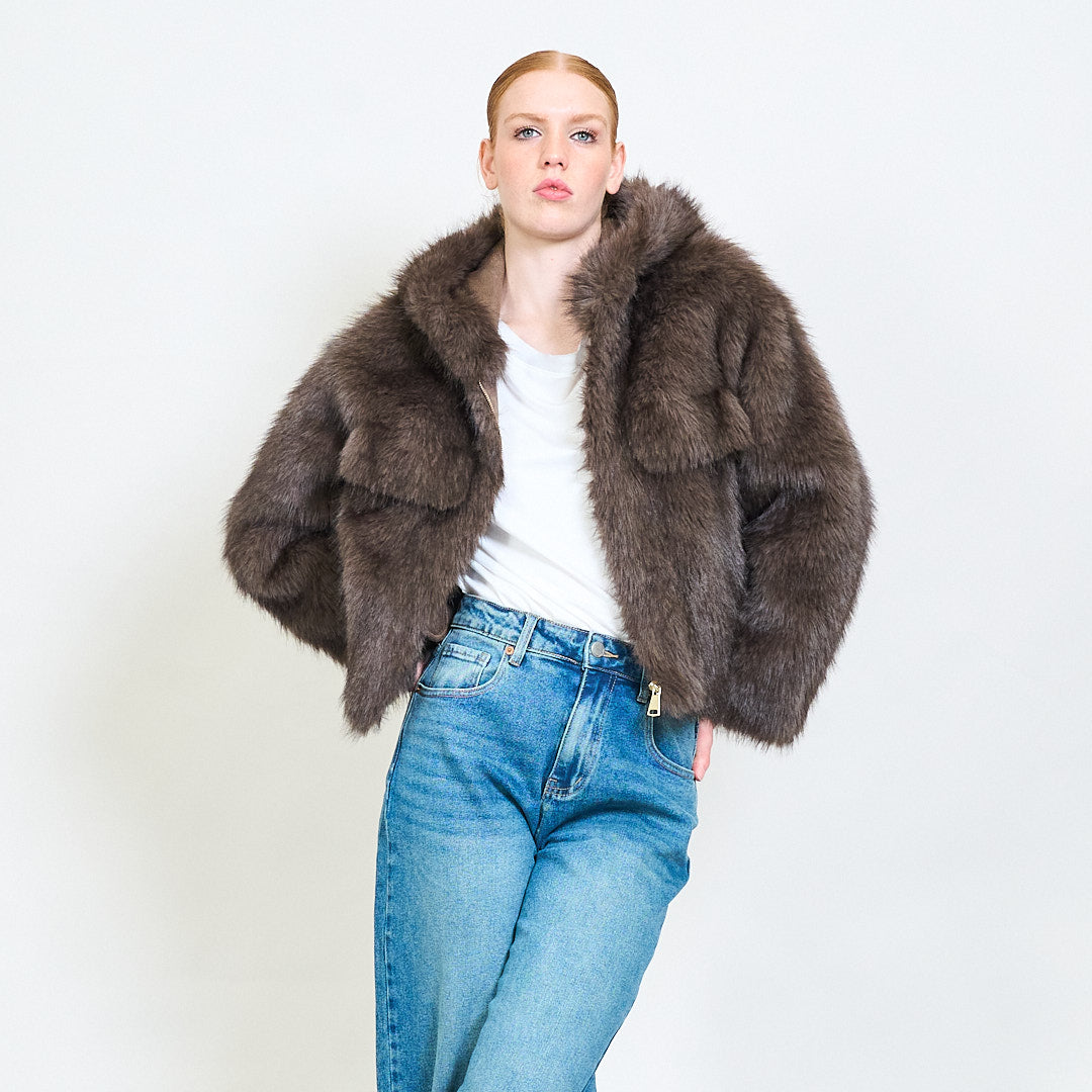 Giacca a pelliccia corta con felpa con cappuccio all'ingrosso