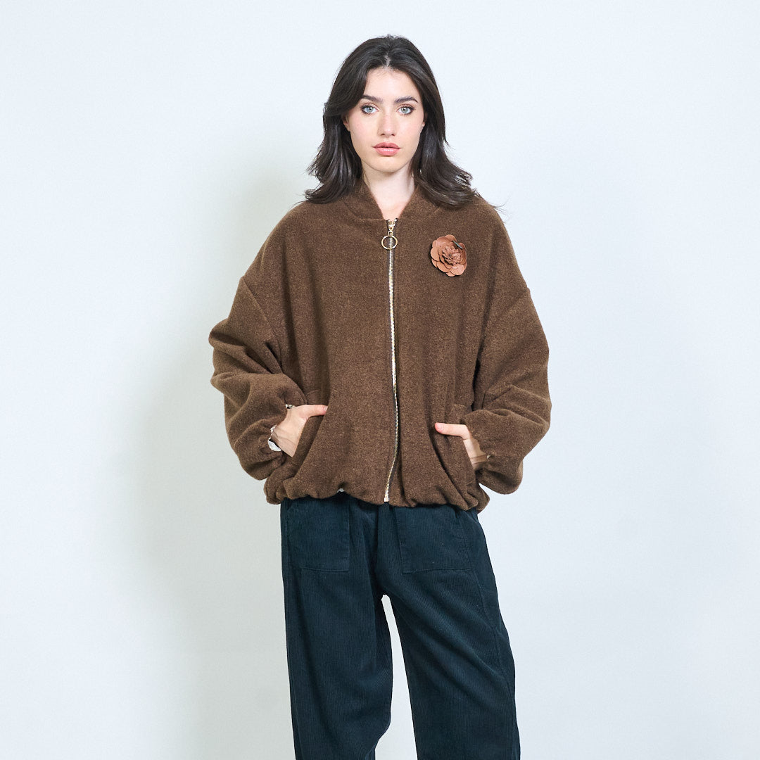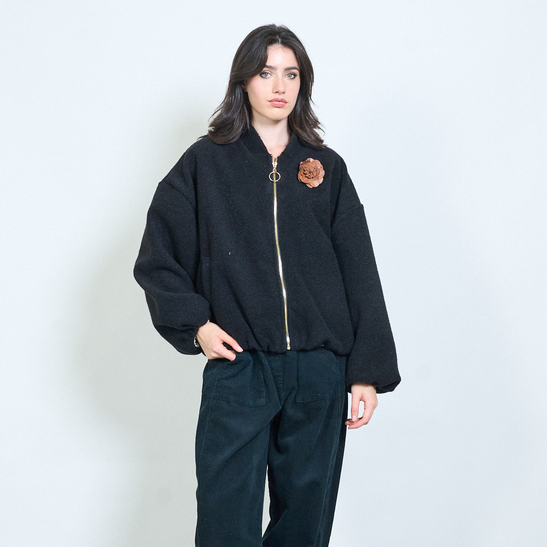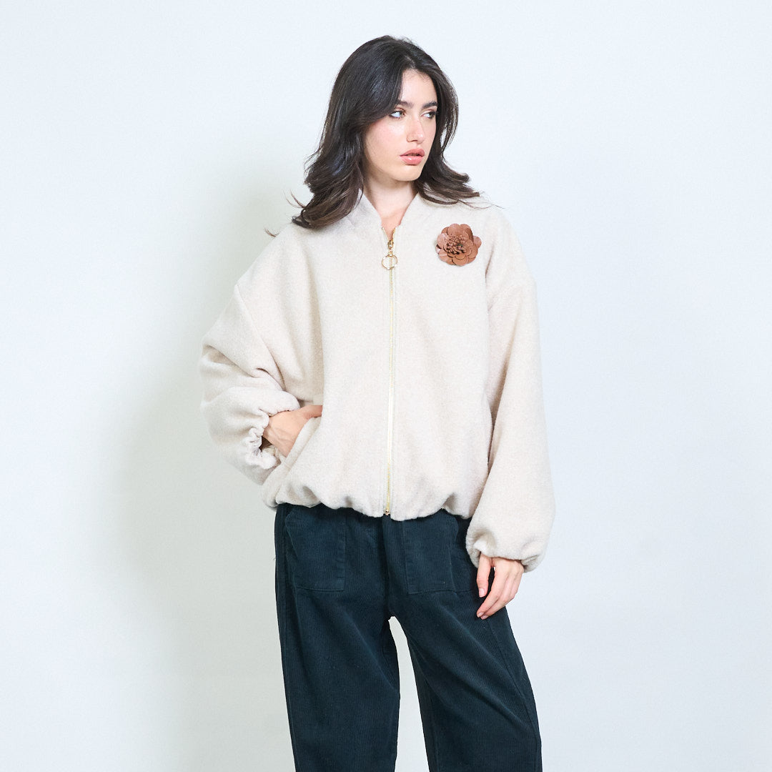 Giacca con zip stile bomber minimalista con dettaglio spilla floreale all'ingrosso