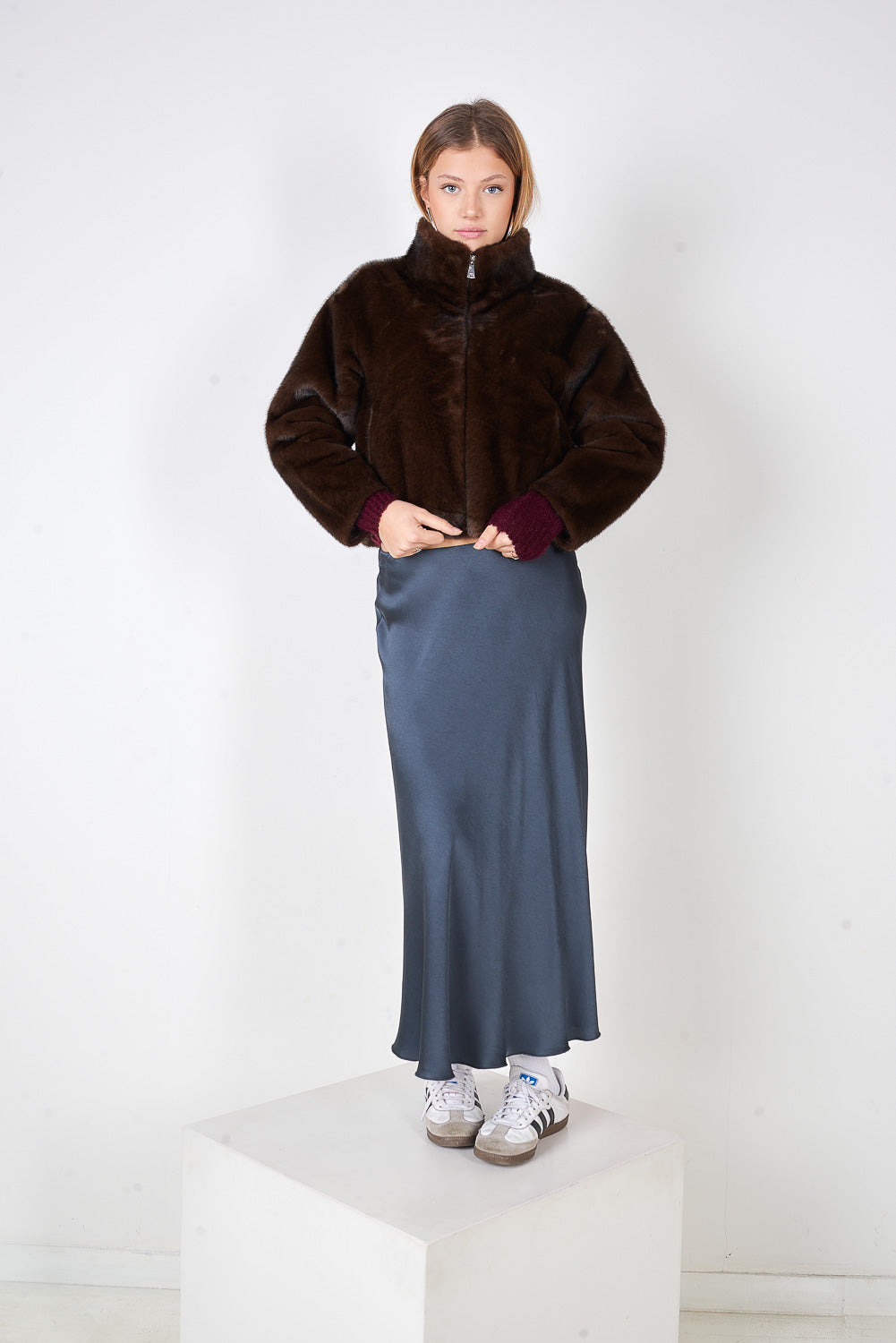 Giacca in peluche testurizzata con zip a collo alto e tasche laterali all'ingrosso