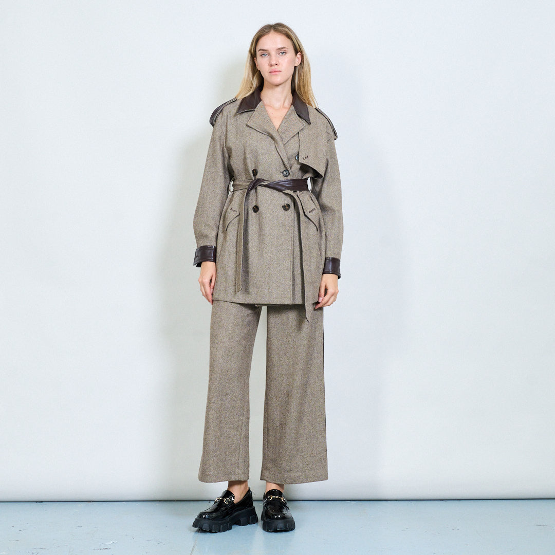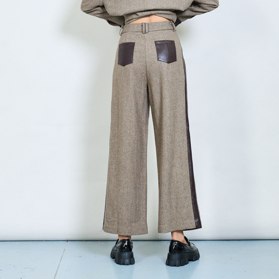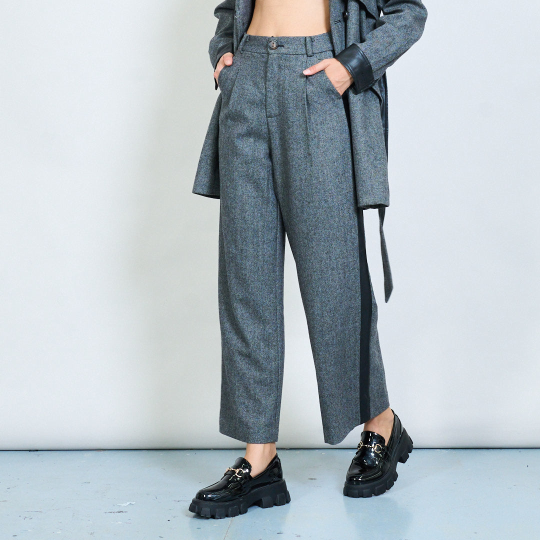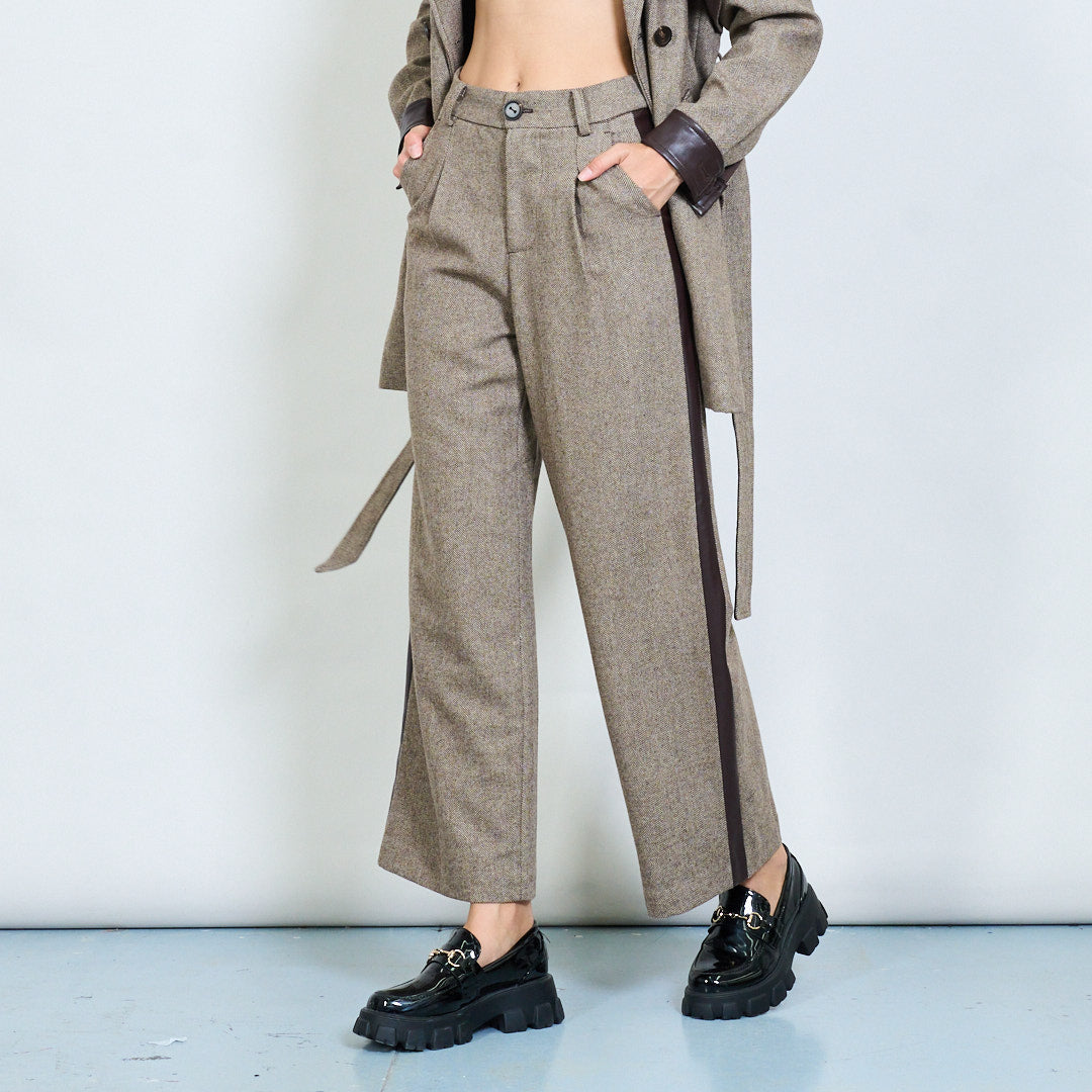 Pantaloni a gamba larga su misura con striscia laterale in pelle fatta all'ingrosso
