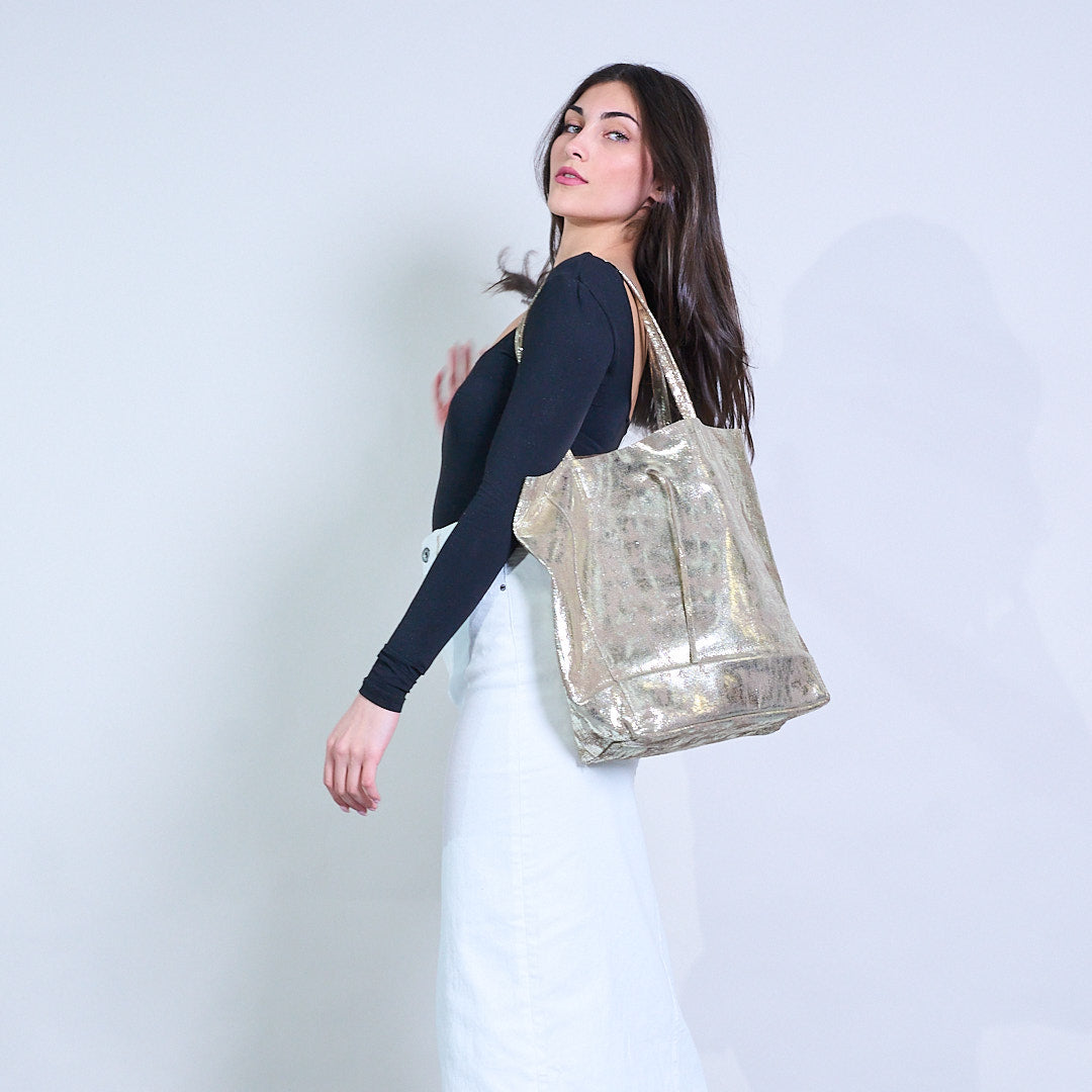 Tote metallica artigianale con finitura a forma di lamina testurizzata all'ingrosso