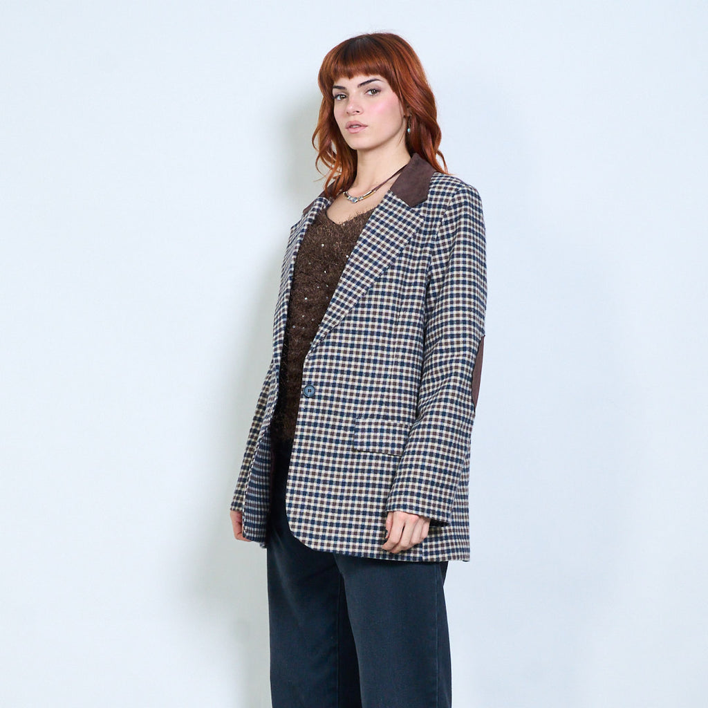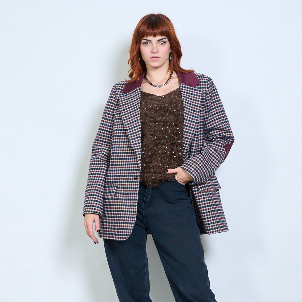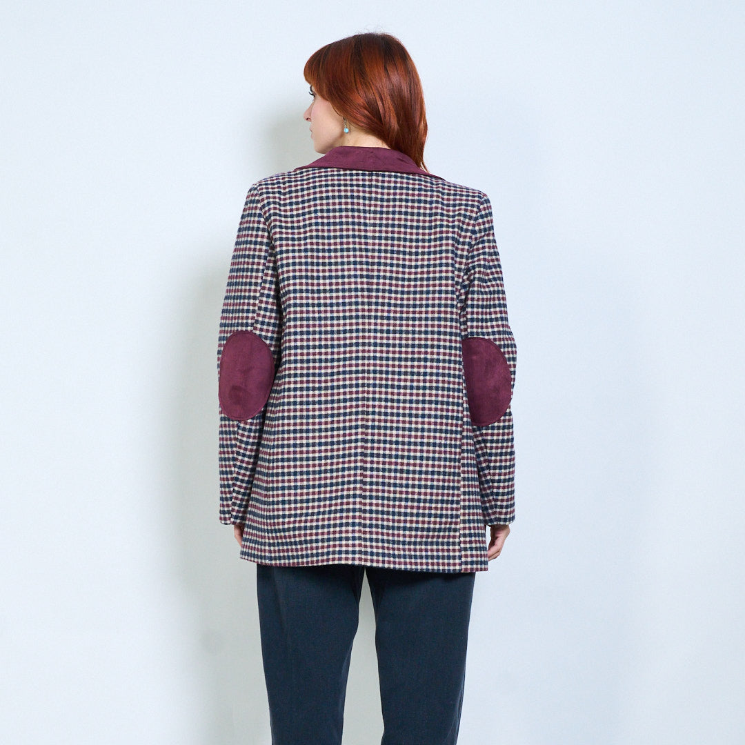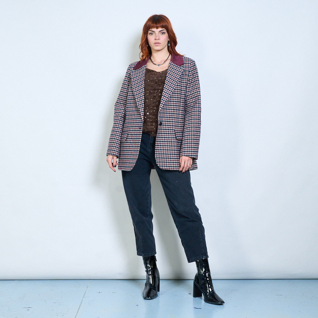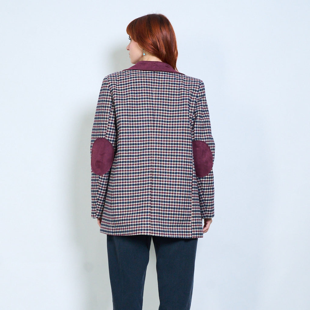 Vendita all'ingrosso di blazer sartoriale con colletto scamosciato a contrasto a quadri