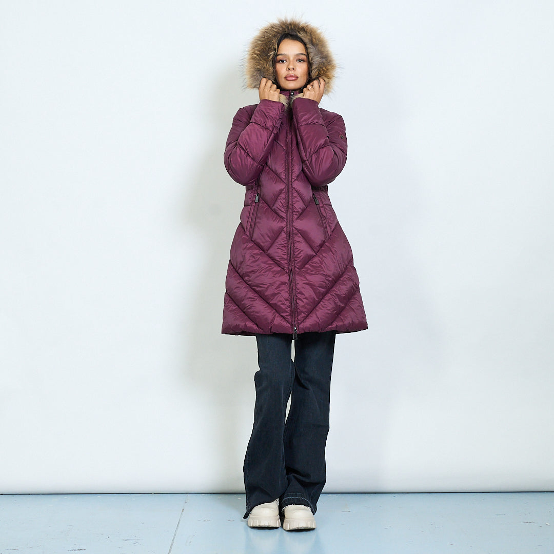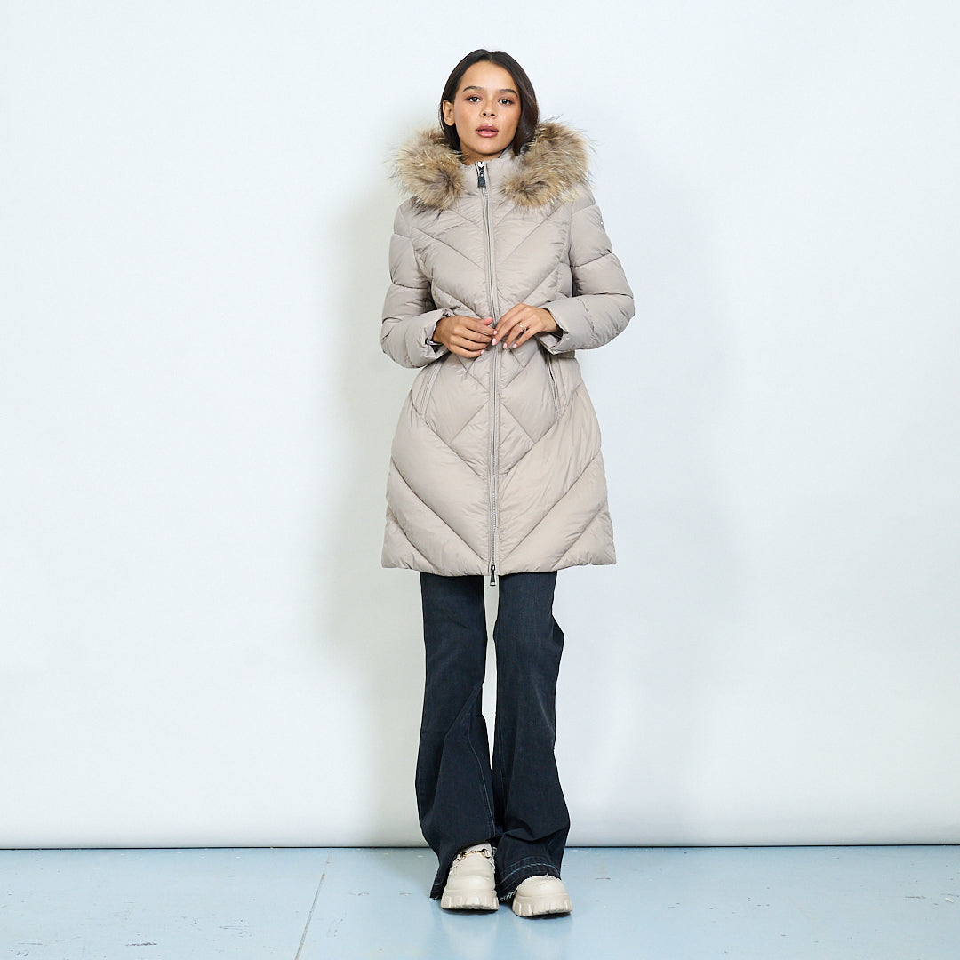 - Cappotto imbottito a metà lunghezza con dettagli trapuntati chevron