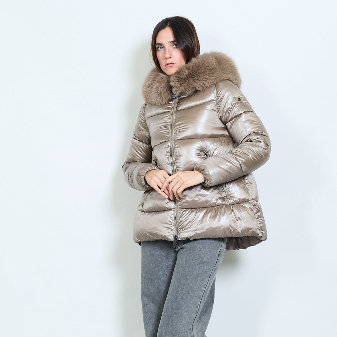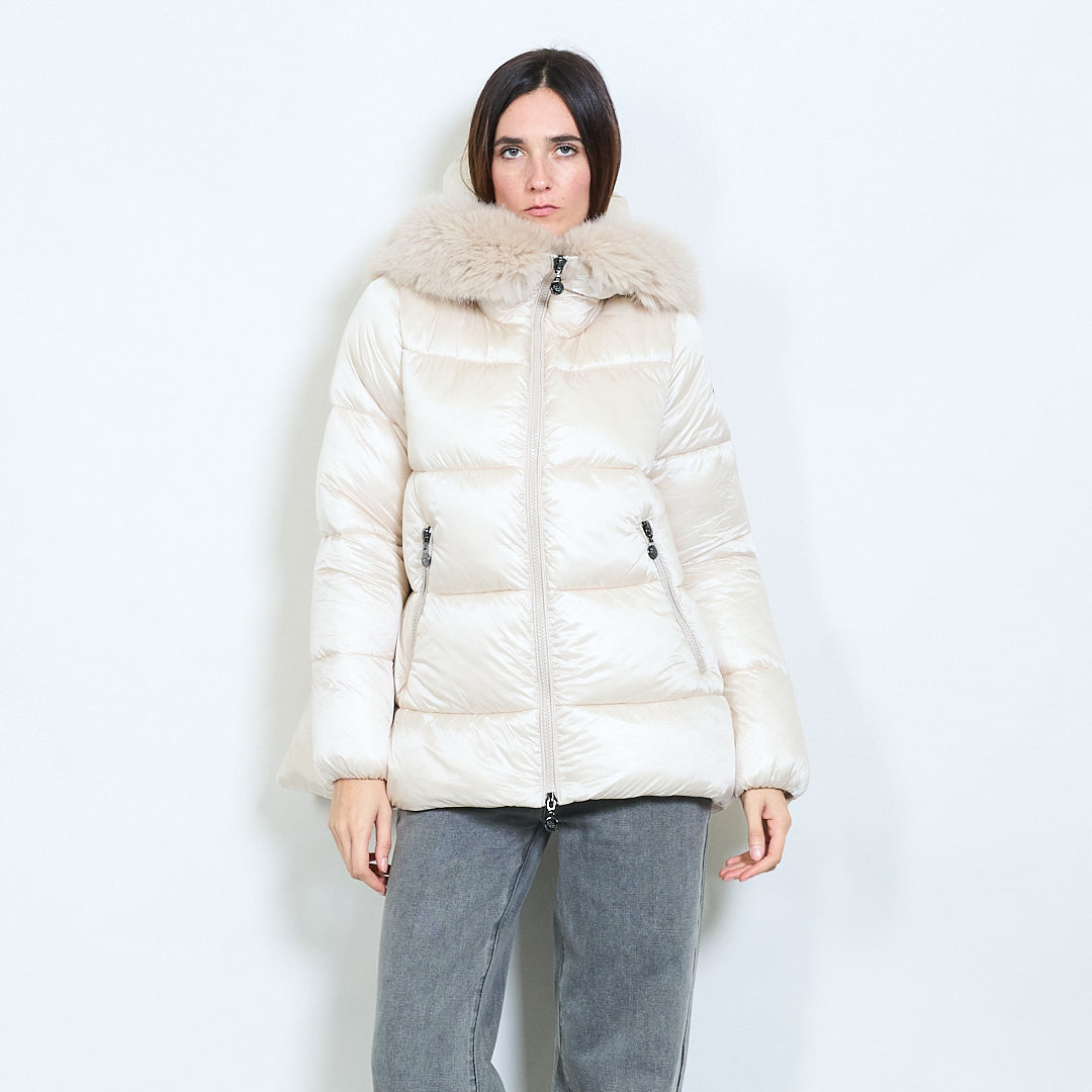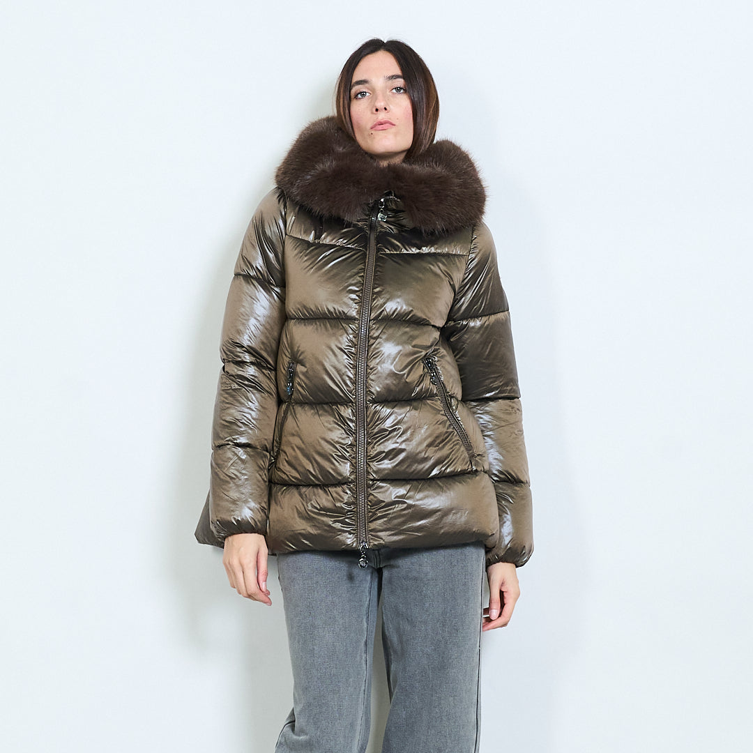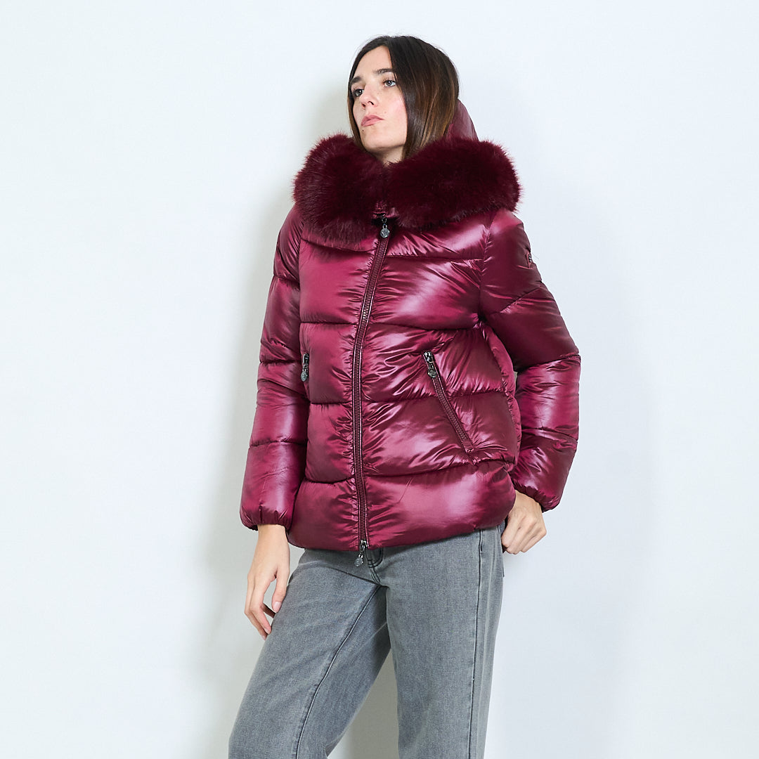 Giacca a palla trapuntata con rivestimento da colletto in finta pelliccia staccabile all'ingrosso