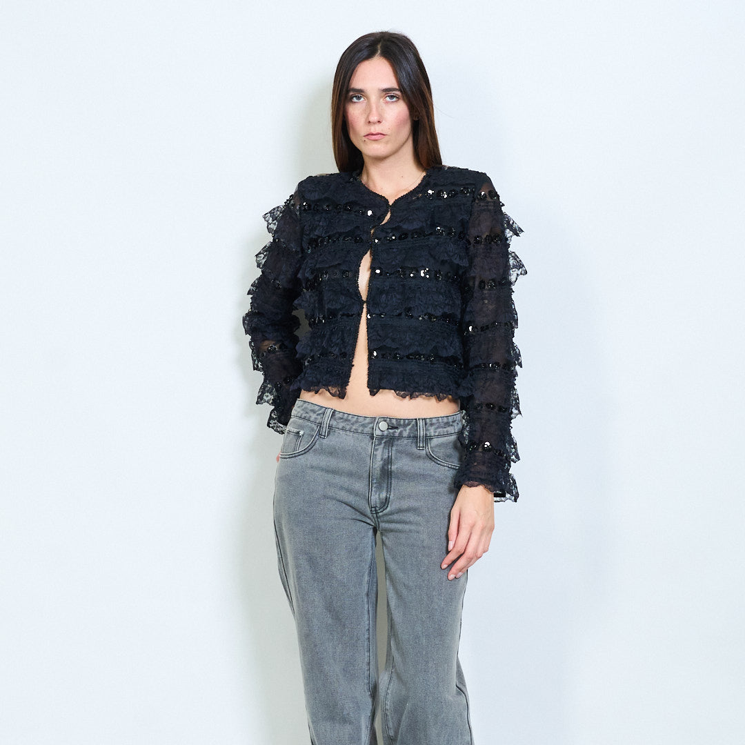 Giacca corto in paillettestri a strati di pizzo all'ingrosso