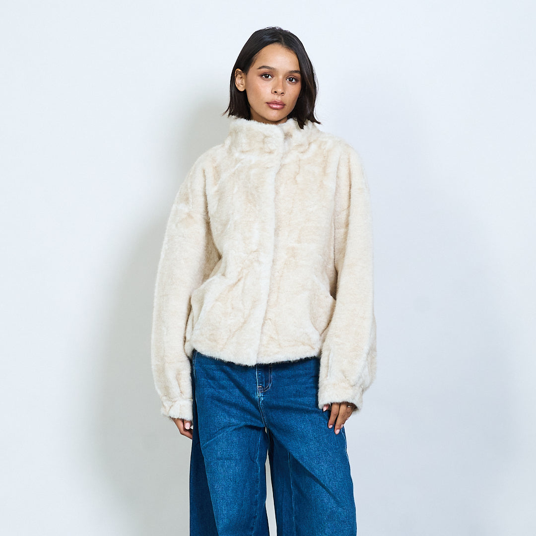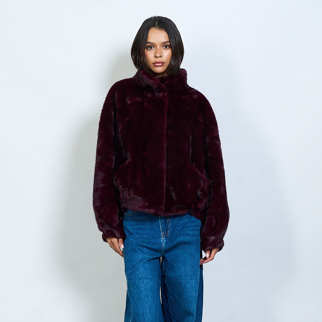 Giacca in pelliccia in finto con collo alto e tasche all'ingrosso