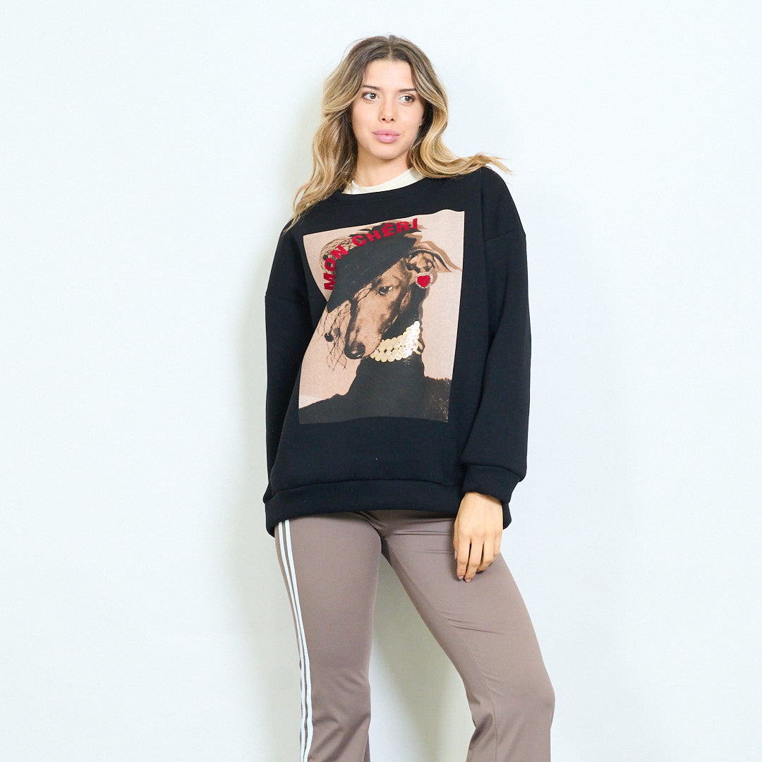 Vendita all'ingrosso di felpa con stampa di ritratto grafico di cane Mon chéri