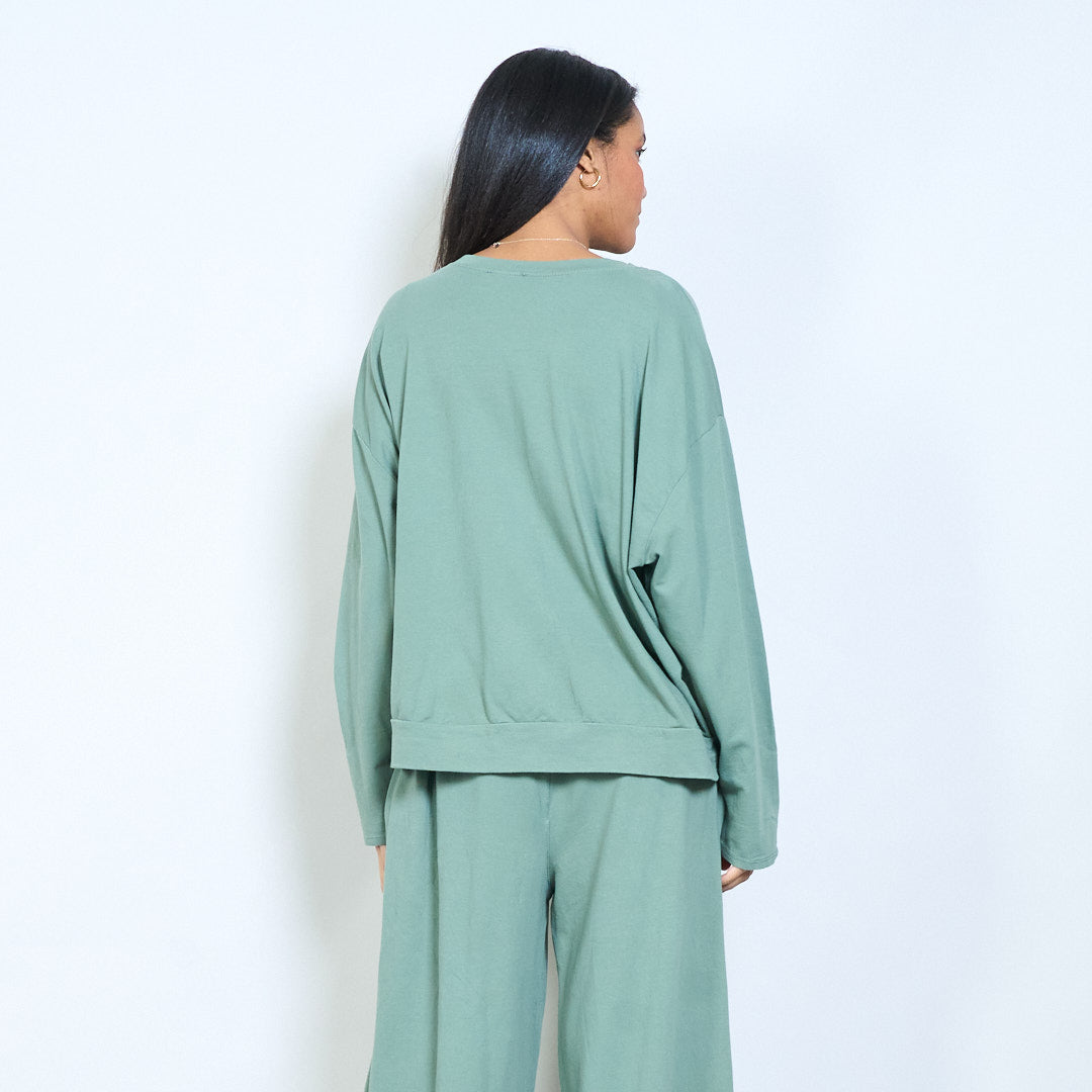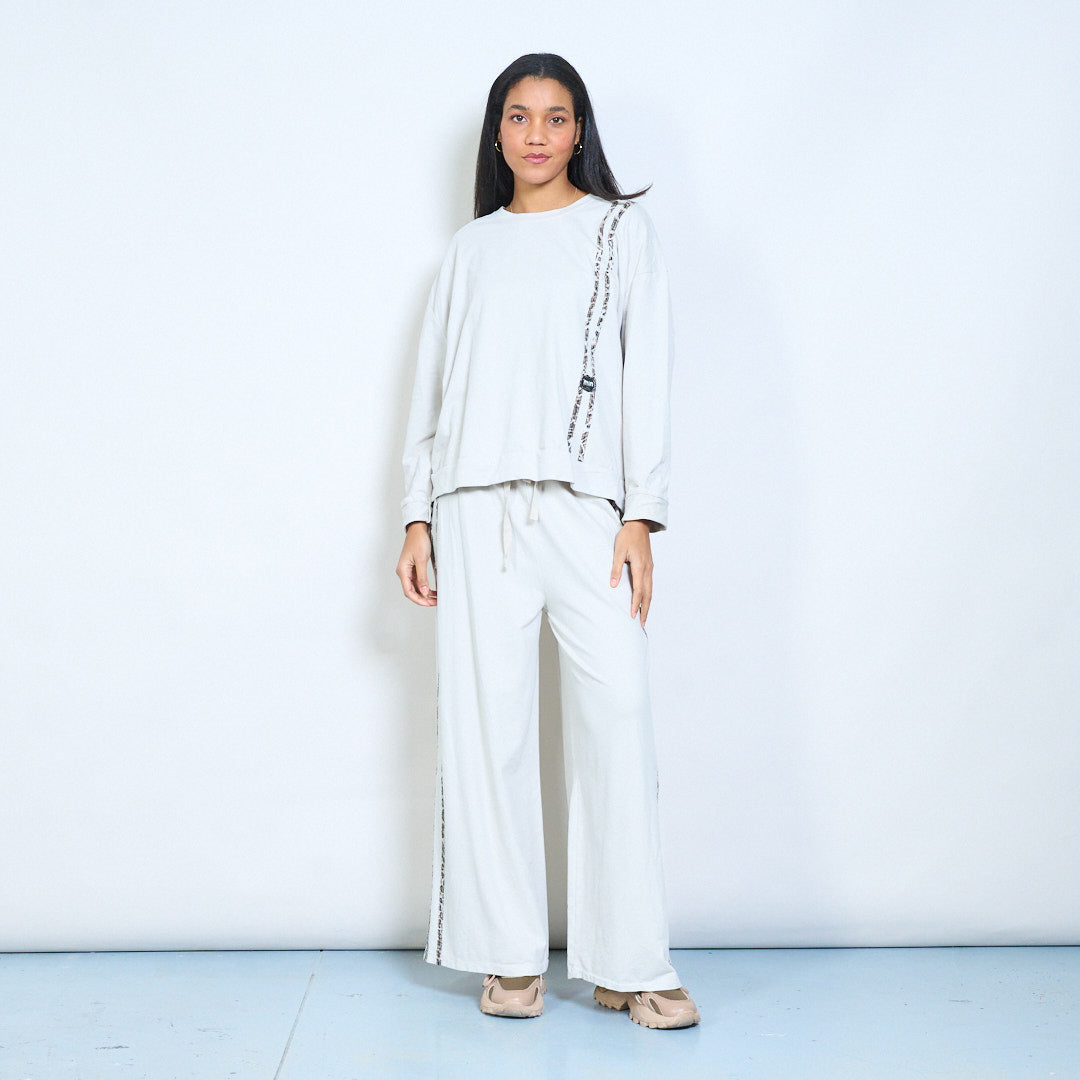 Top in maglia rilassata a maniche lunghe con finiture laterali decorative all'ingrosso