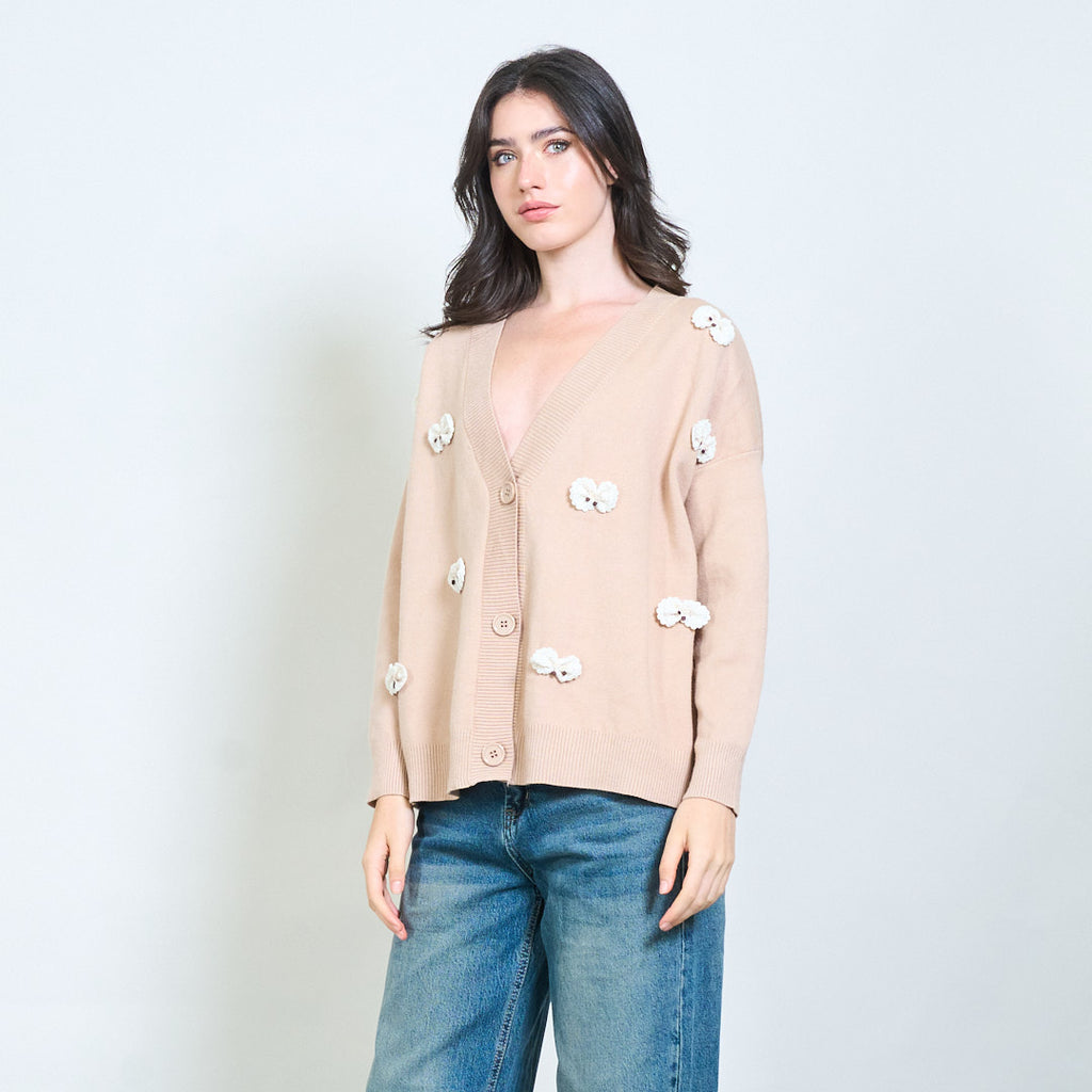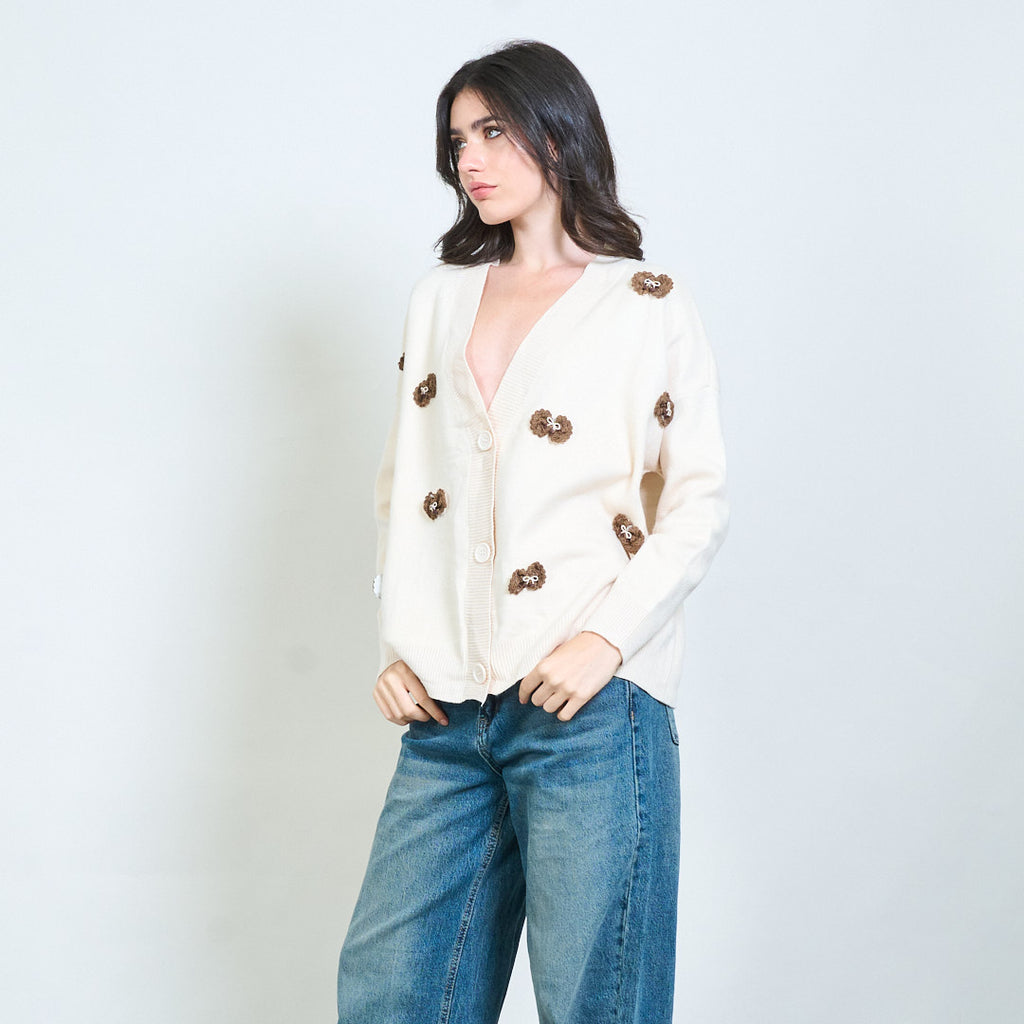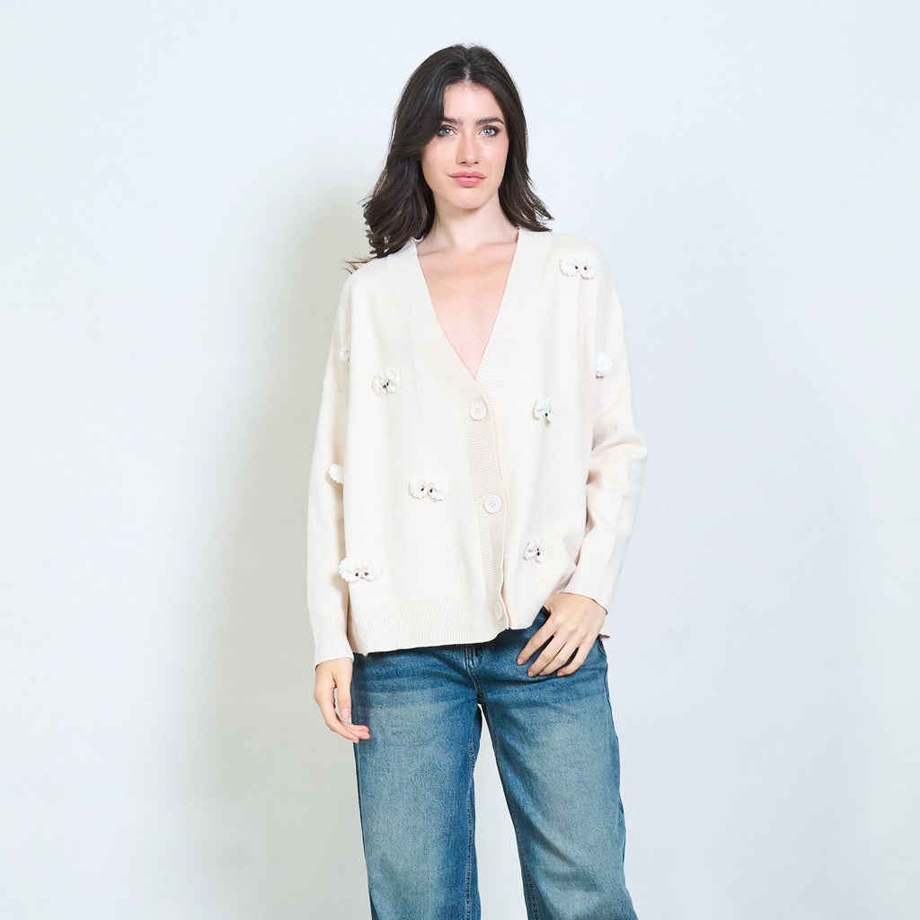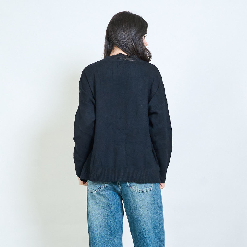 - Cardigan a maglia morbida con una linea a V a coste e chiusura a pulsante