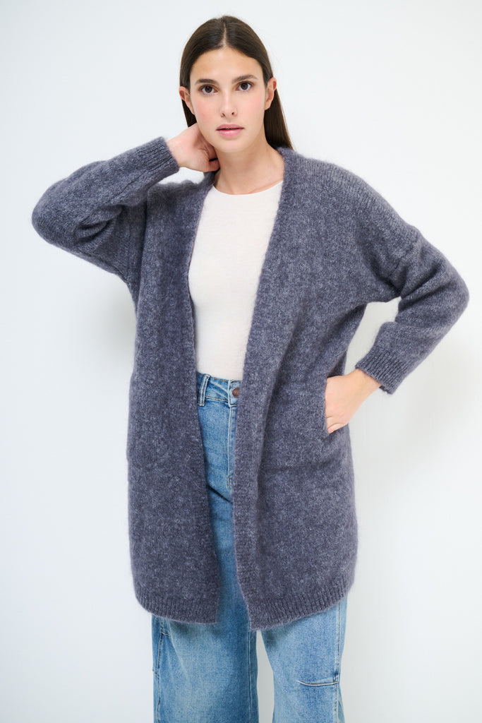 Cardigan a maglia affidata a lungo frontale a lungo termine all'ingrosso