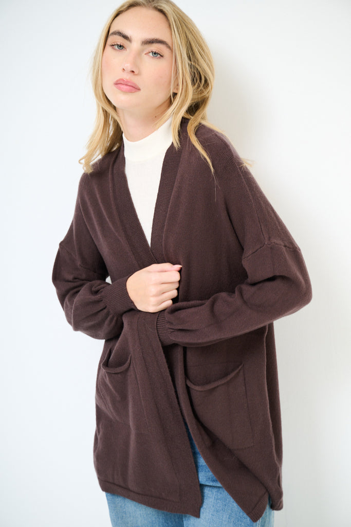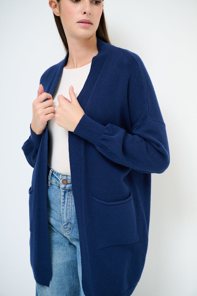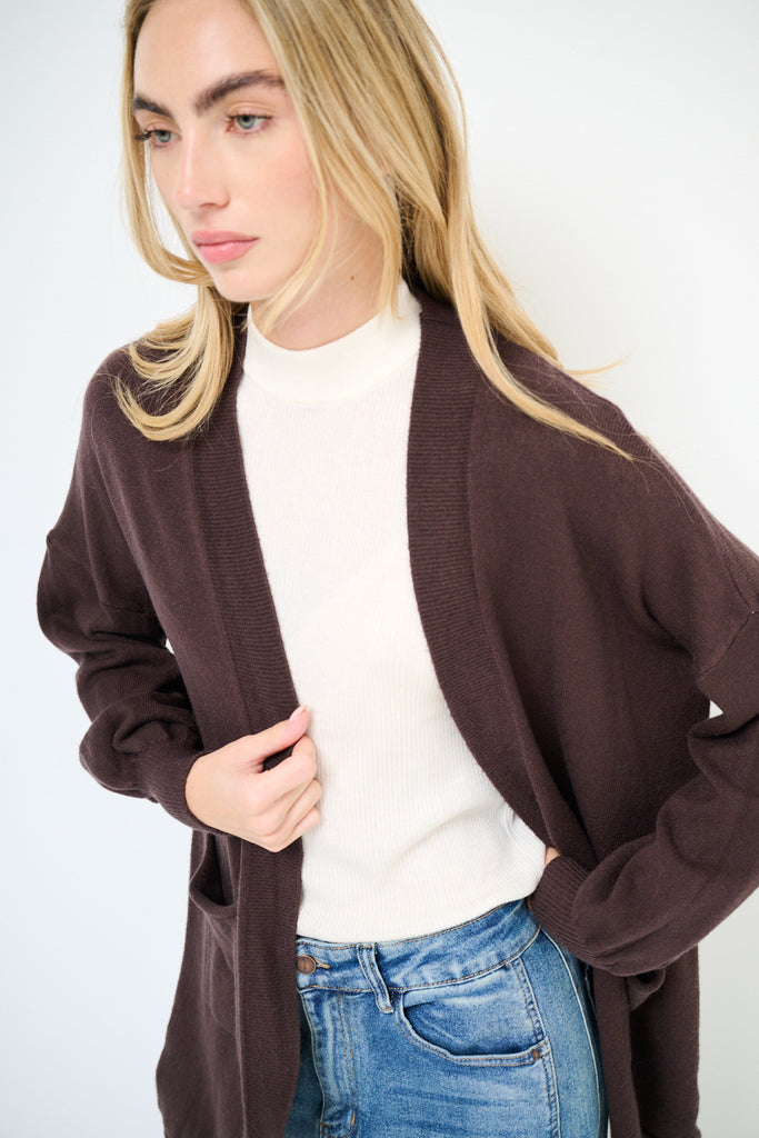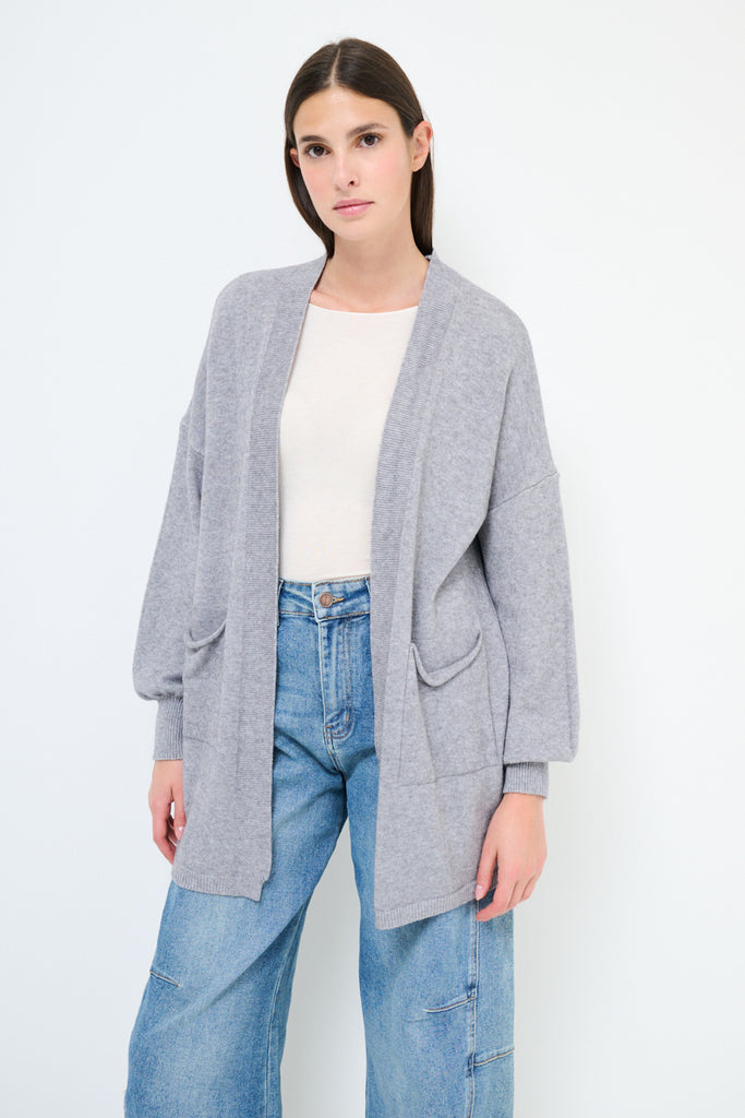 Cardigan a tasca anteriore aperta in forma rilassata all'ingrosso