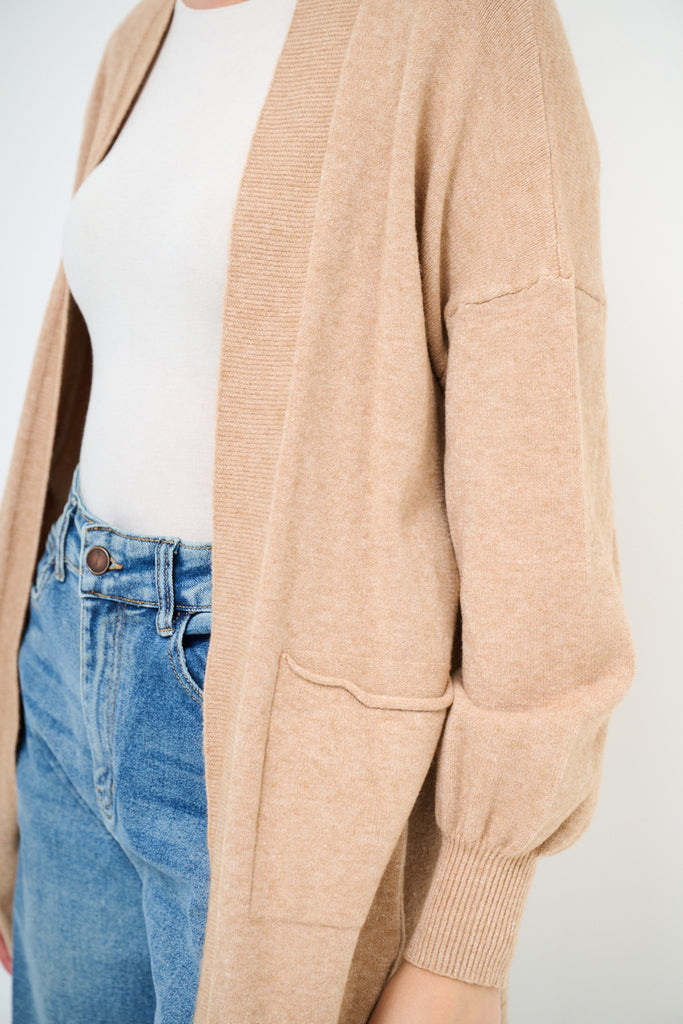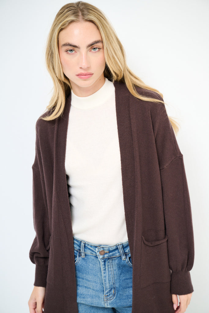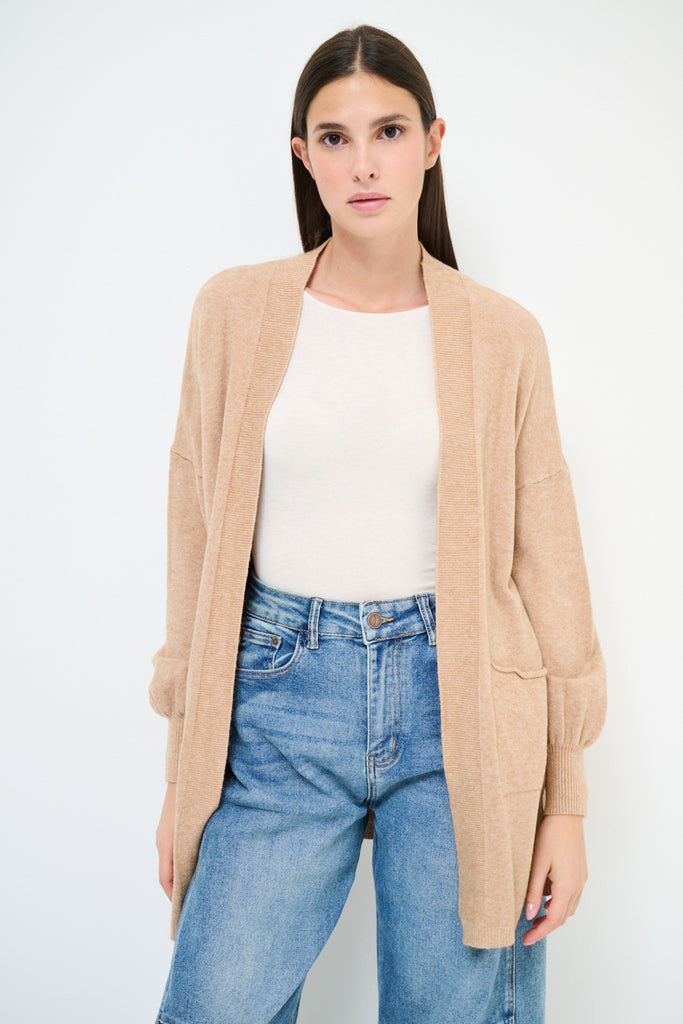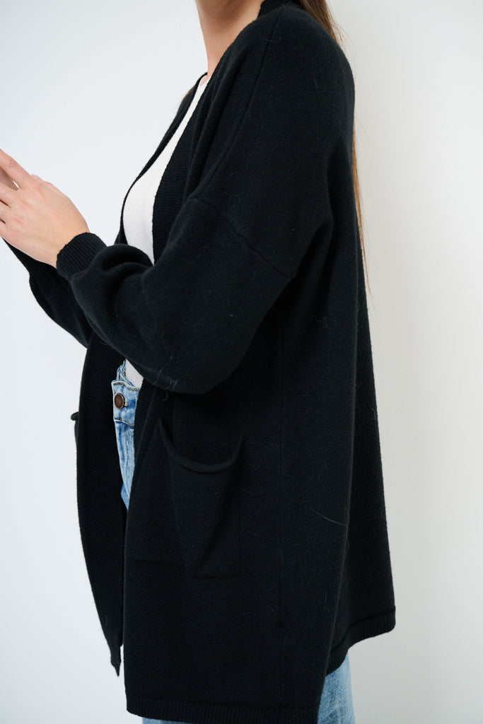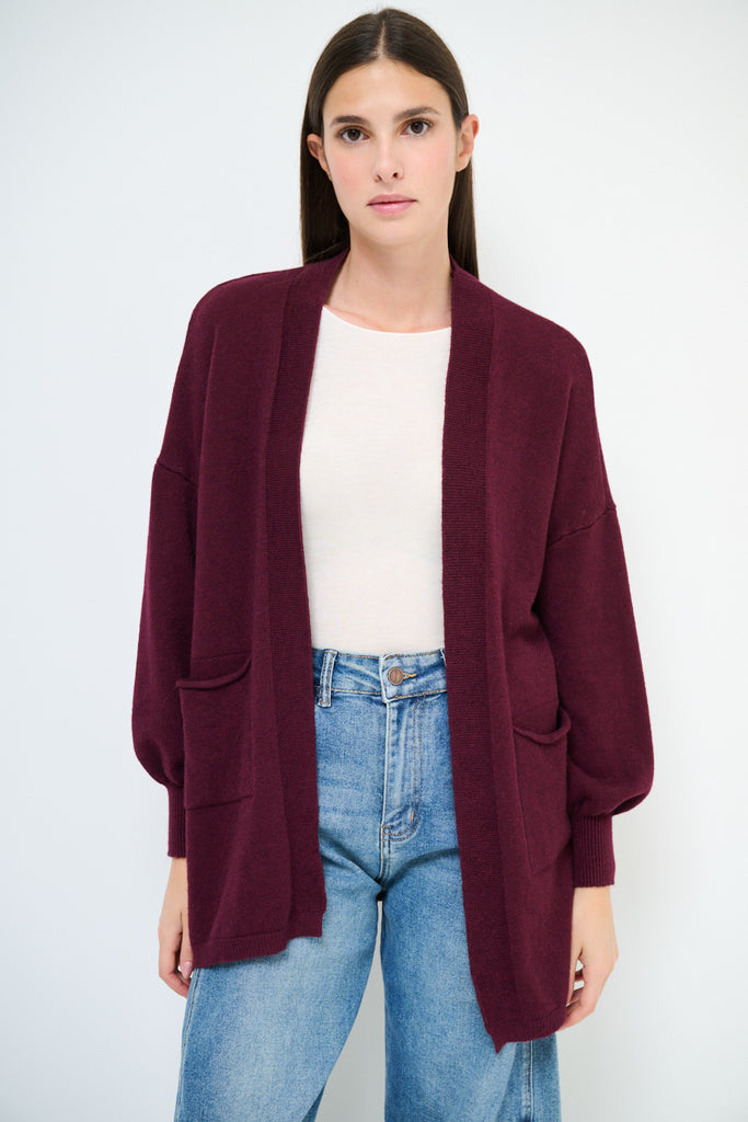 Cardigan a tasca anteriore aperta in forma rilassata all'ingrosso
