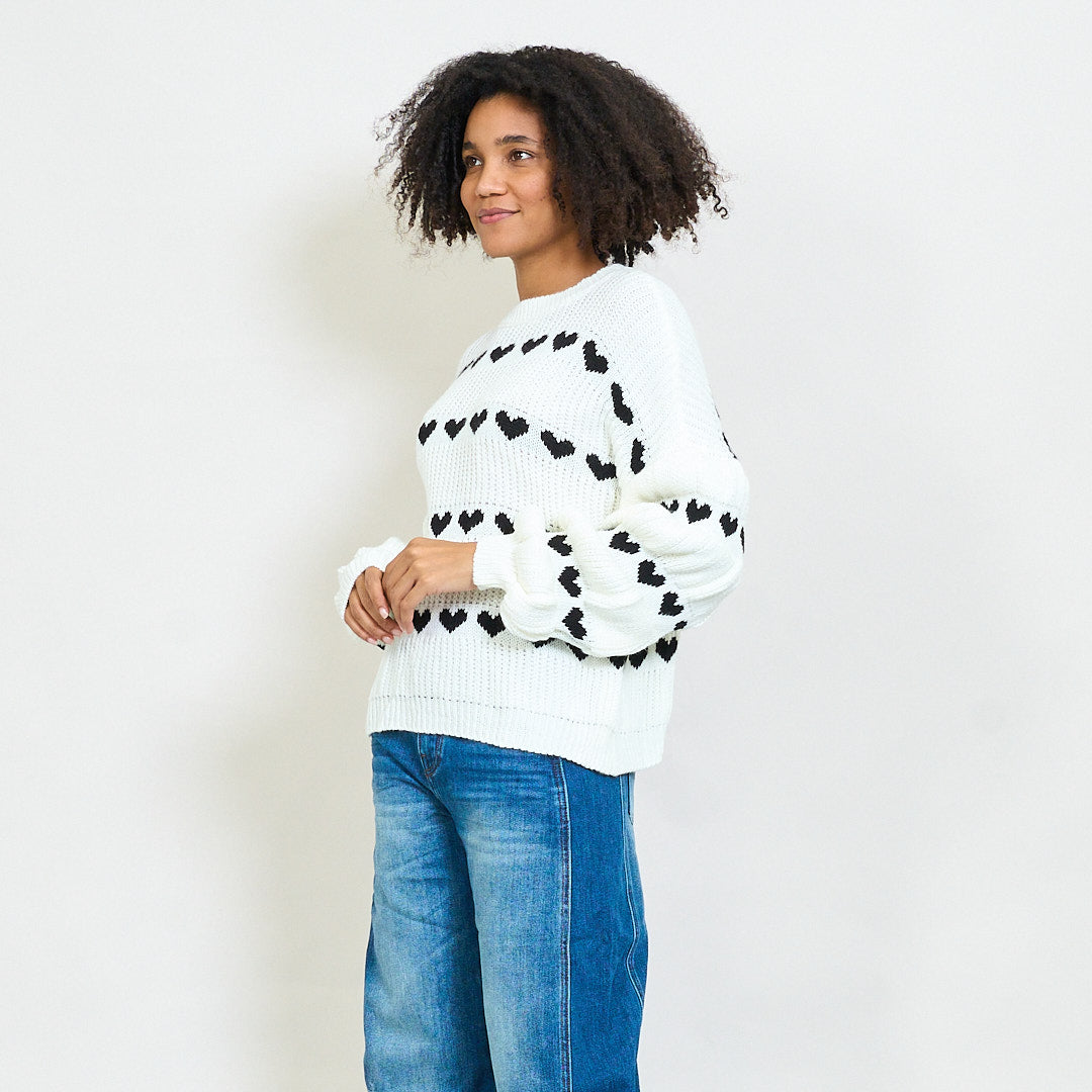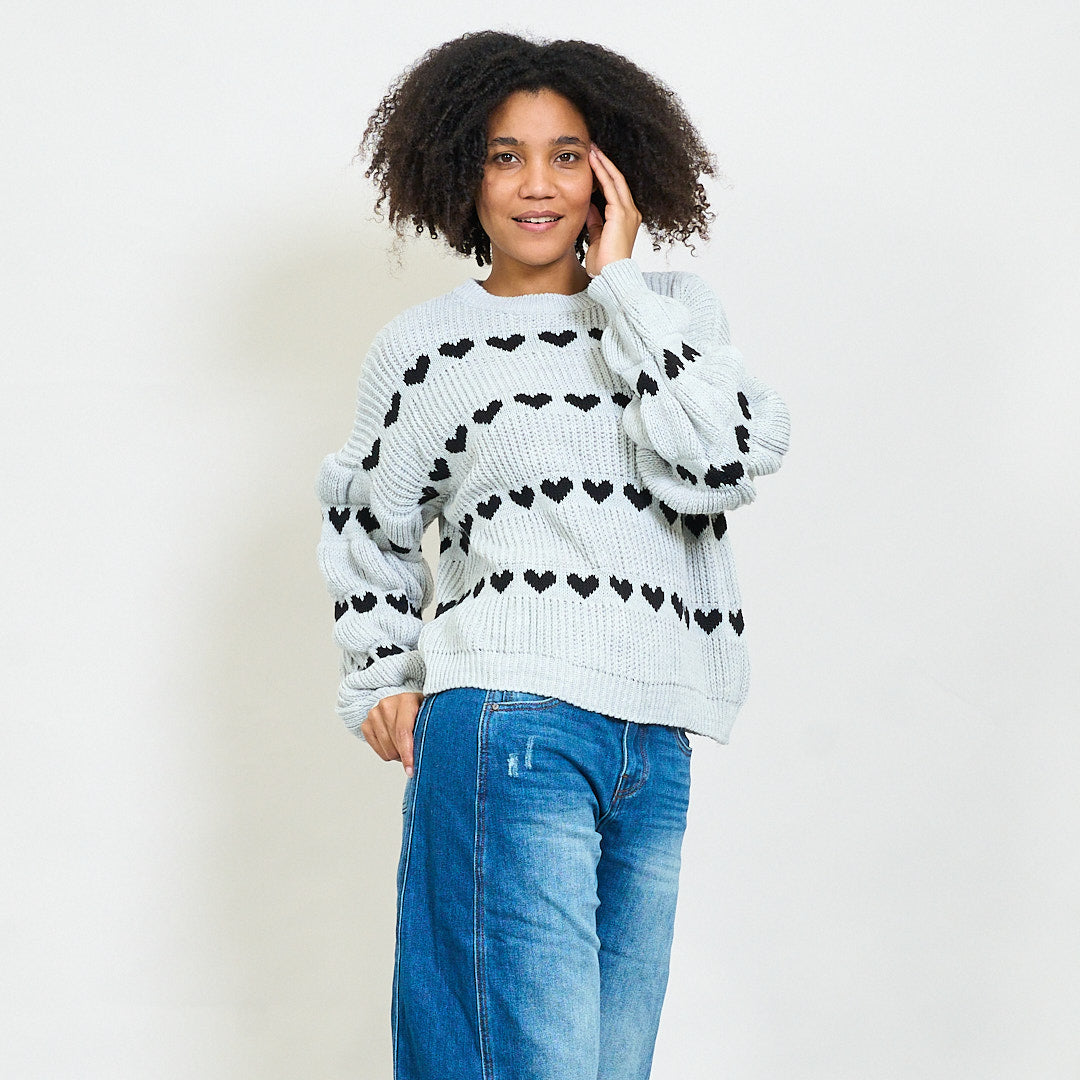 Maglione a maglia grosso con motivazione a strisce per il cuore all'ingrosso