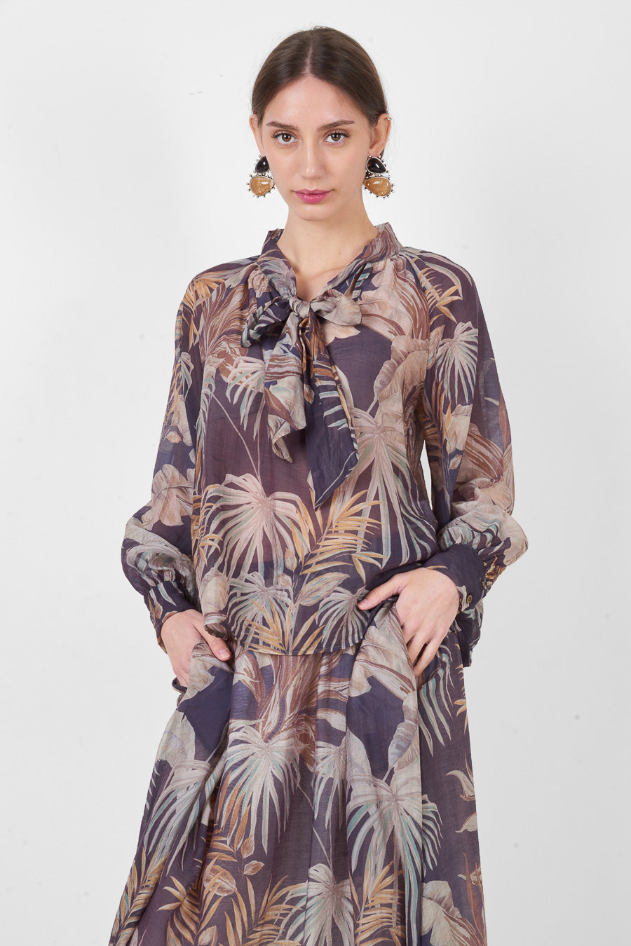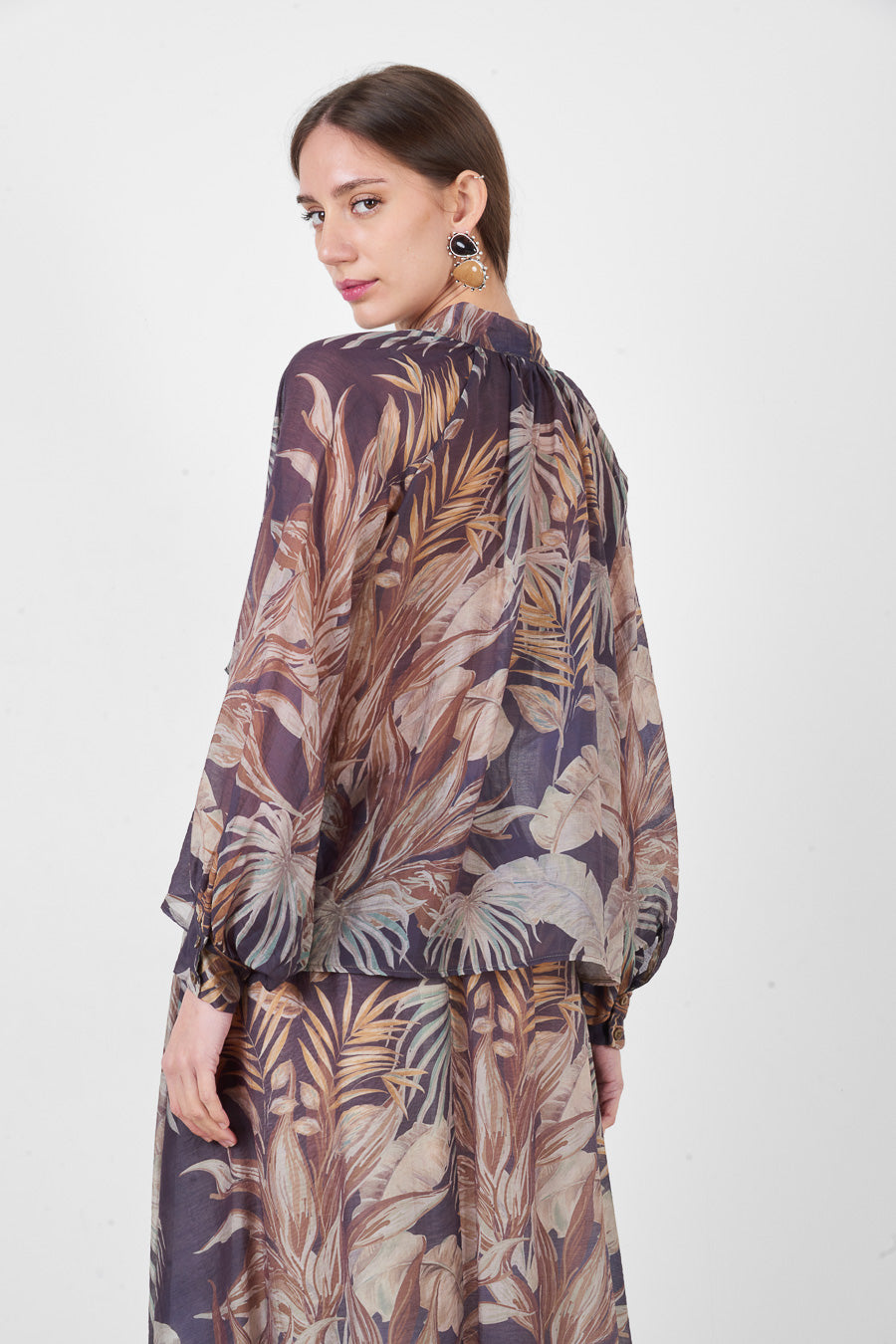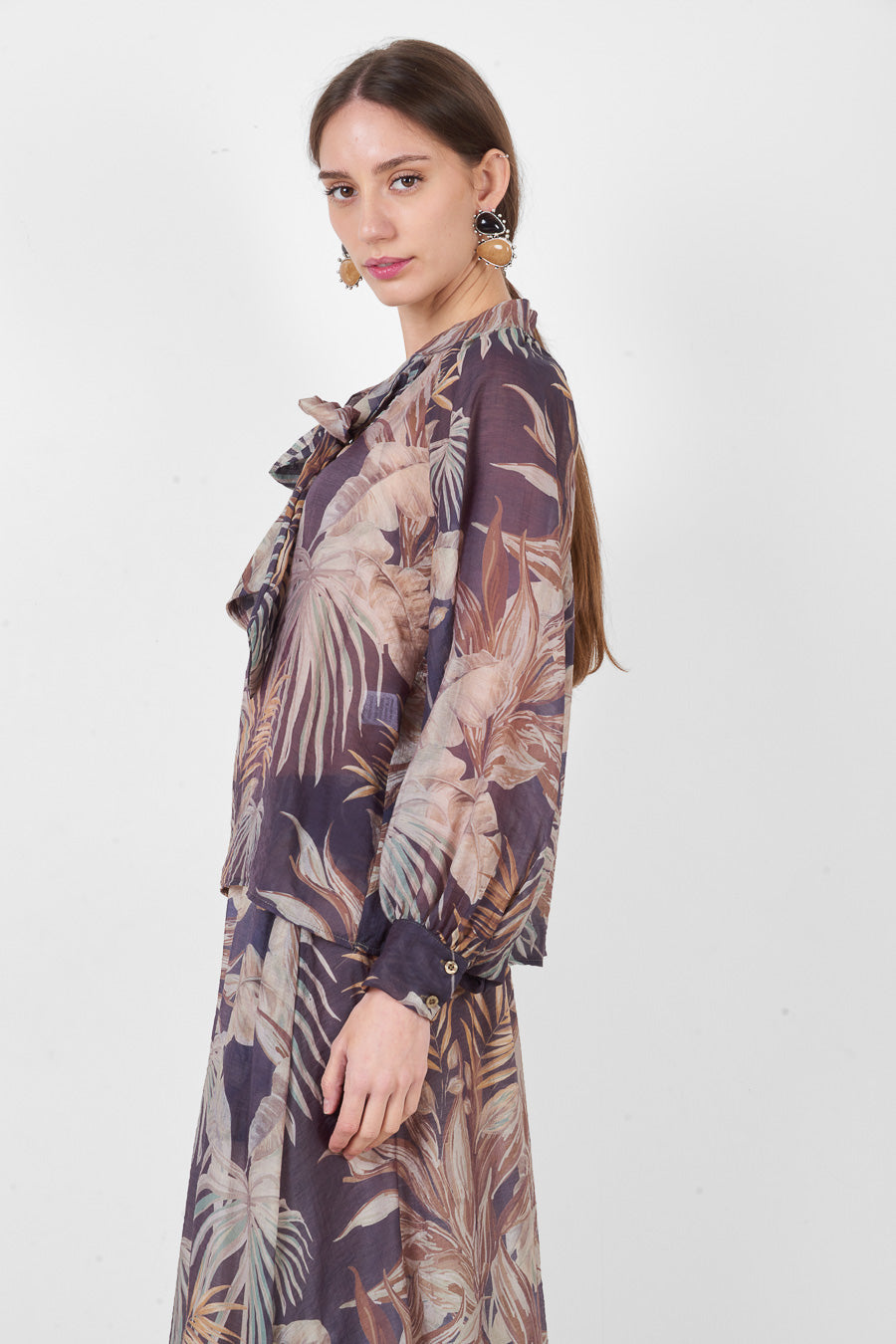 Vendita all'ingrosso di camicette stampate con vestibilità rilassata, maniche lunghe e collo allacciato