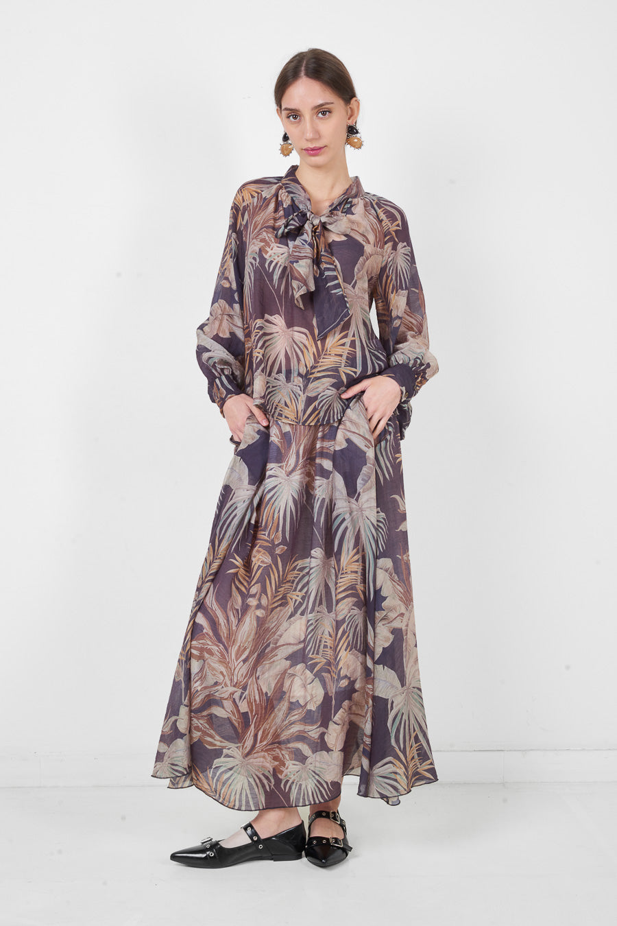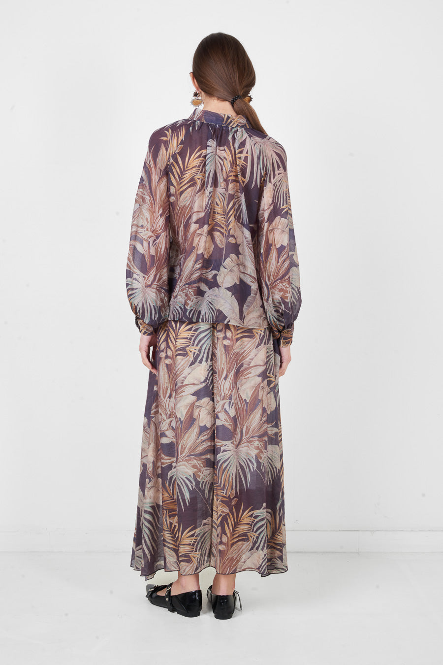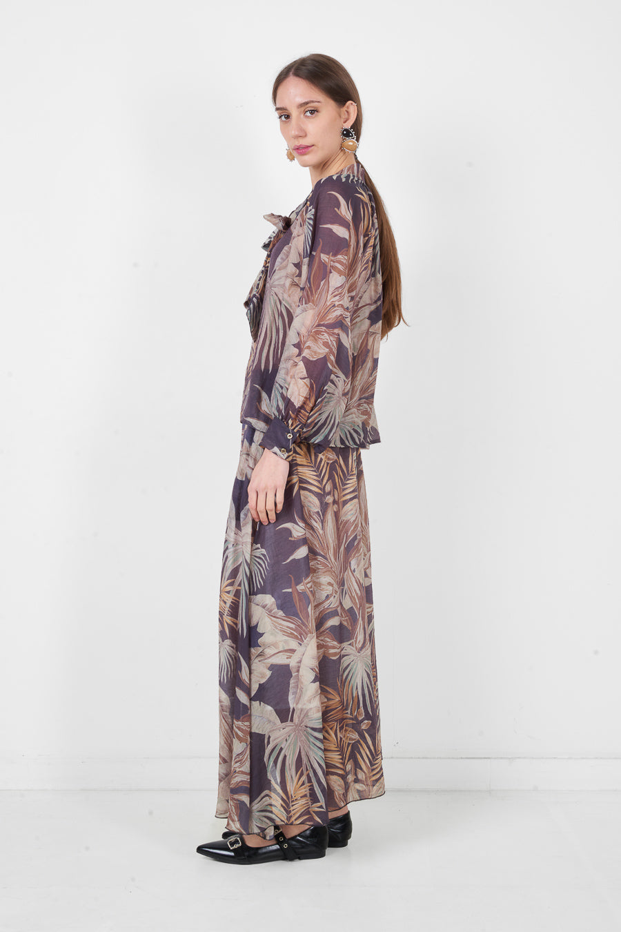 Vendita all'ingrosso di camicette stampate con vestibilità rilassata, maniche lunghe e collo allacciato
