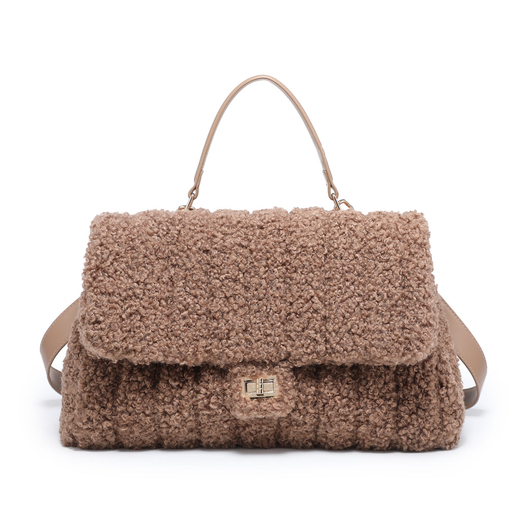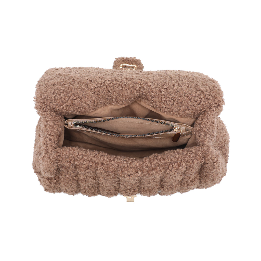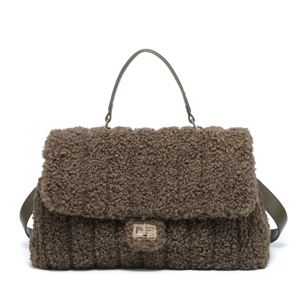Borsa a tracolla con patta testurizzata bouclé e manico superiore all'ingrosso
