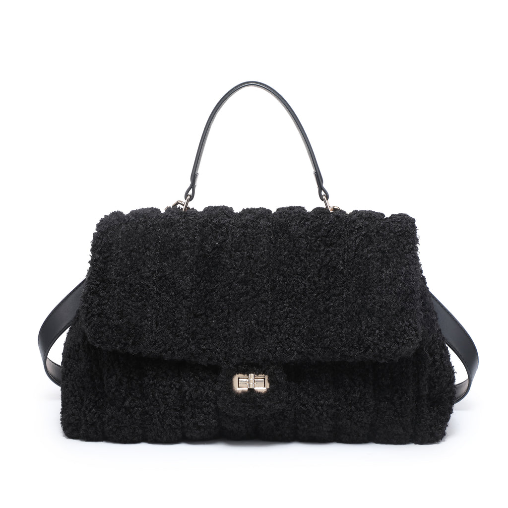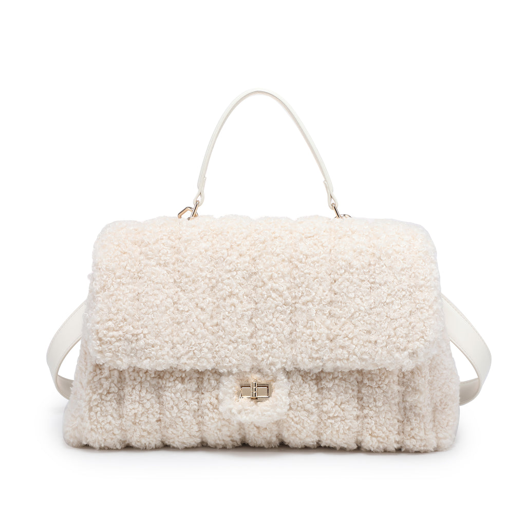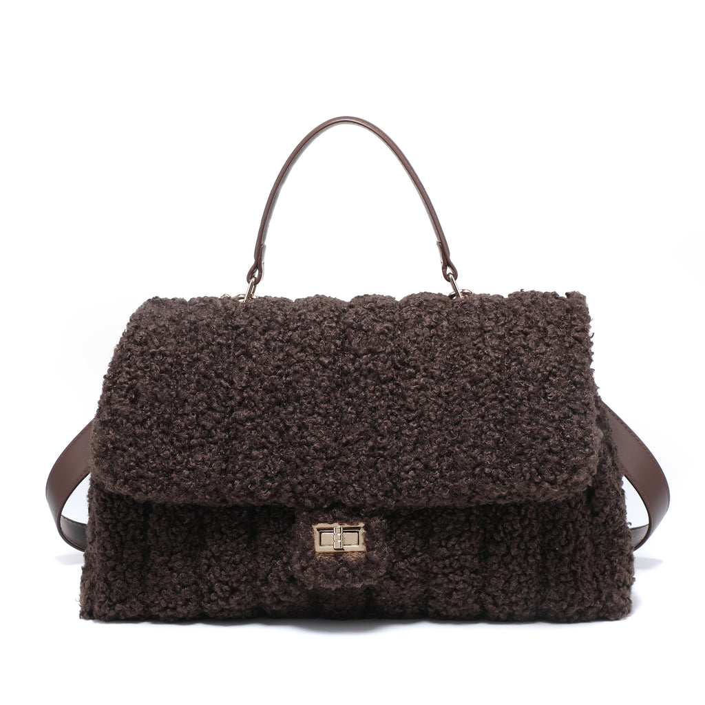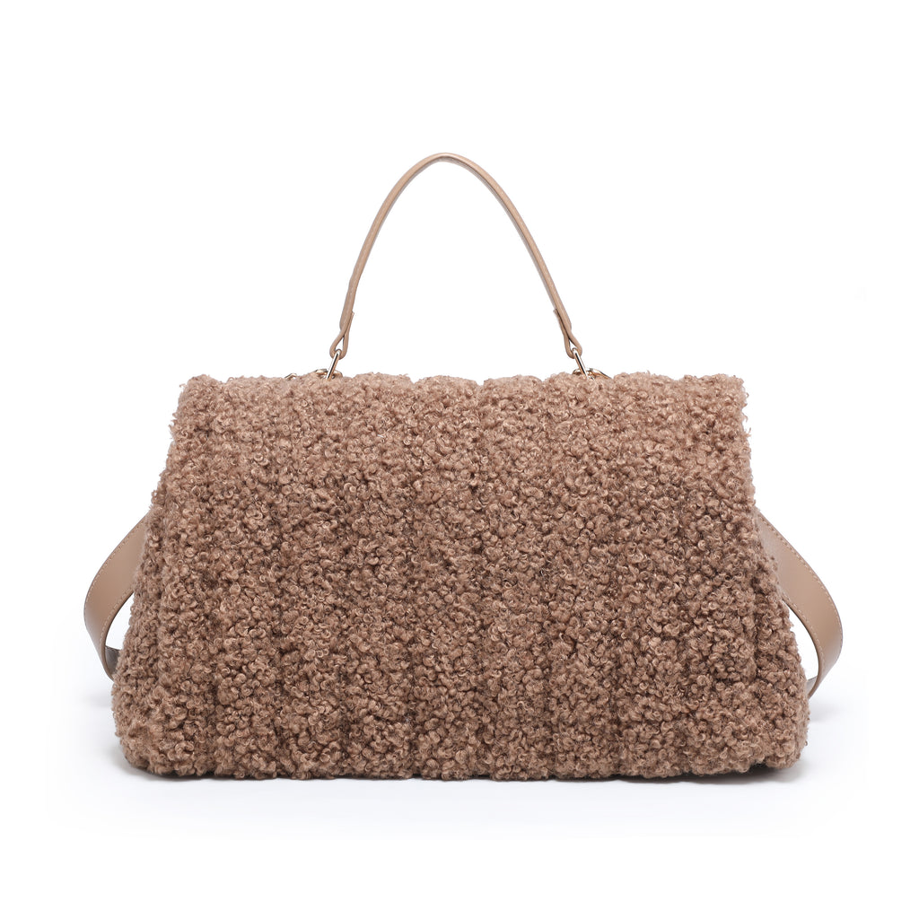 Borsa a tracolla con patta testurizzata bouclé e manico superiore all'ingrosso
