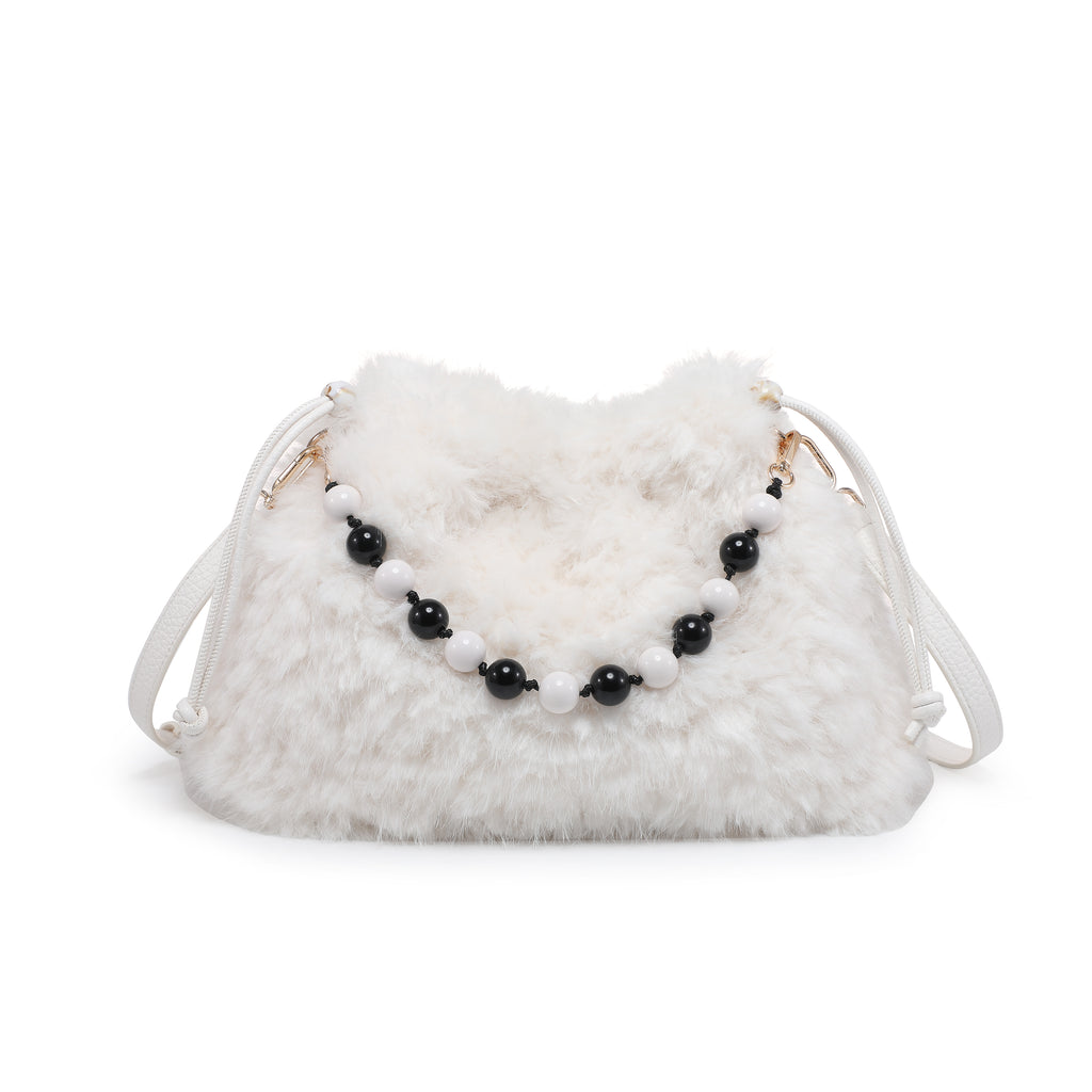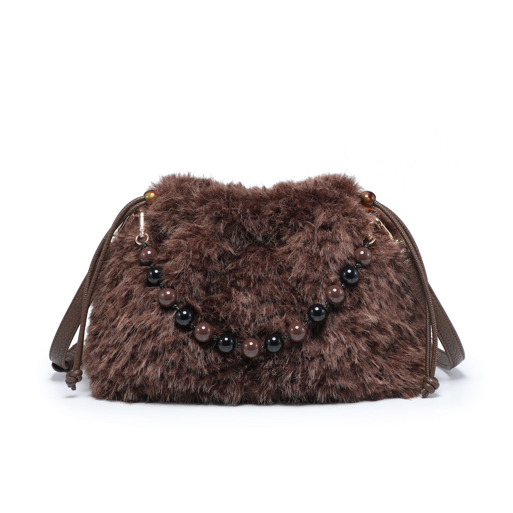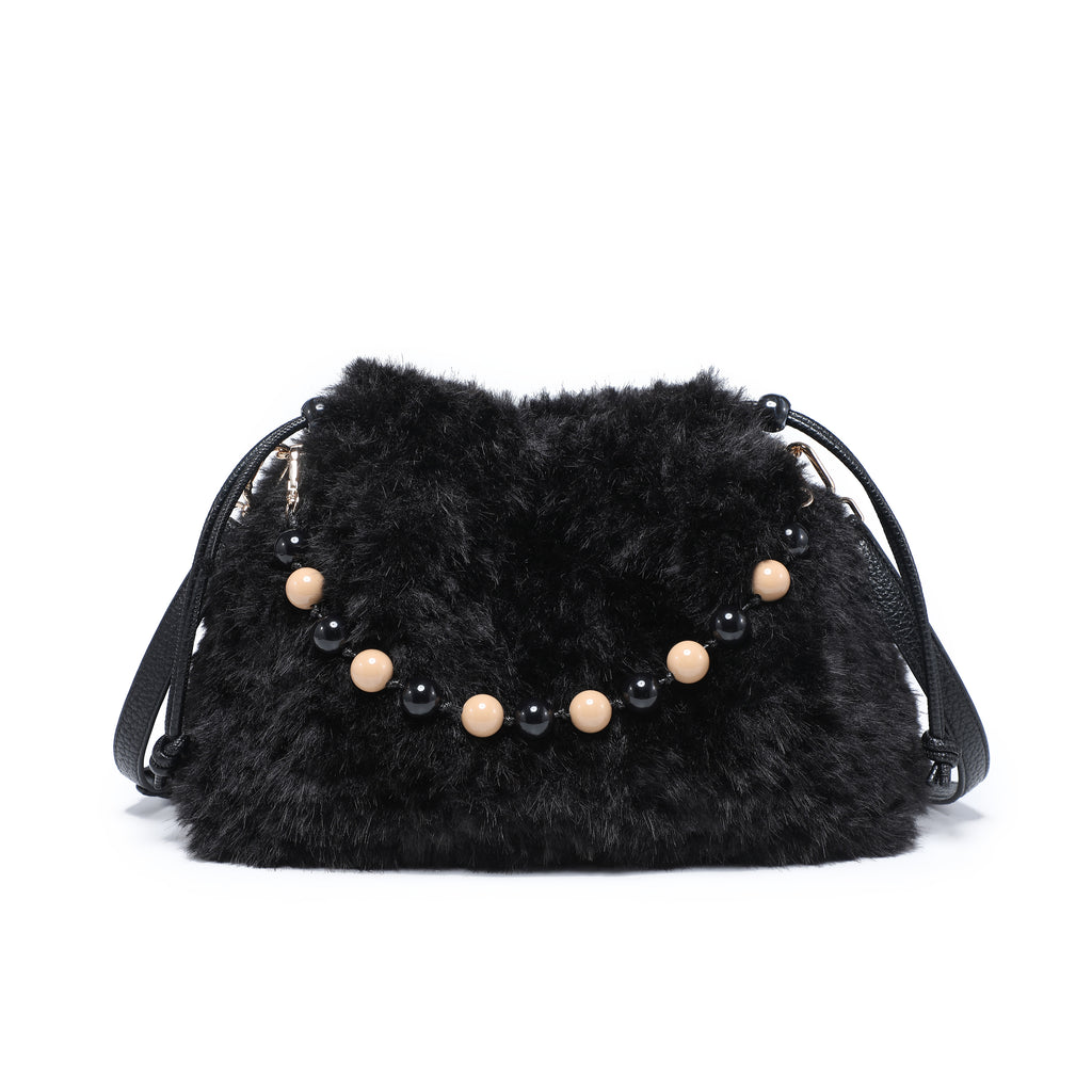 Borsa a tracolla strutturata in peluche con accento di catena di perline all'ingrosso