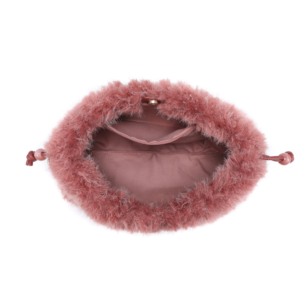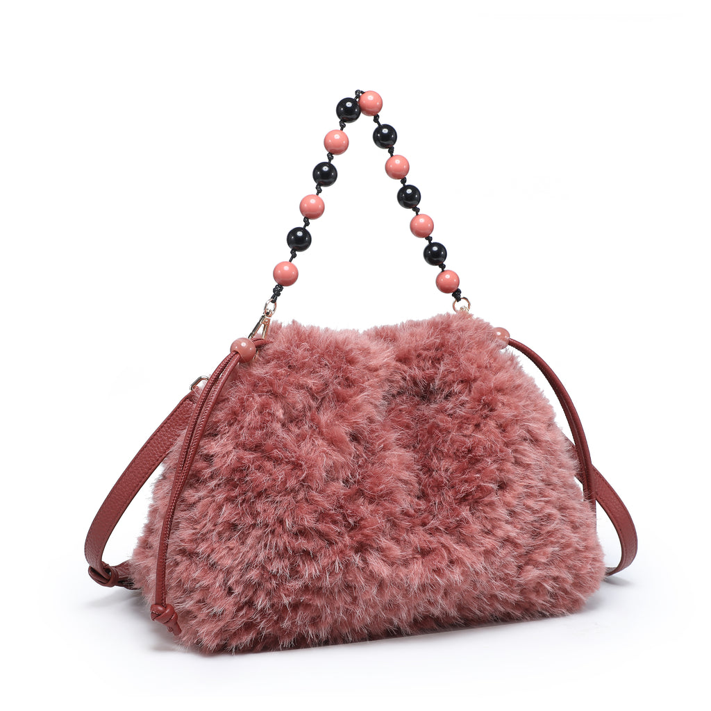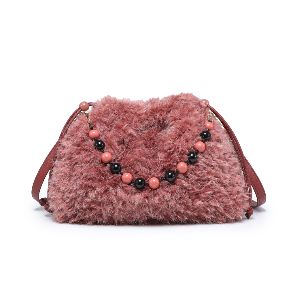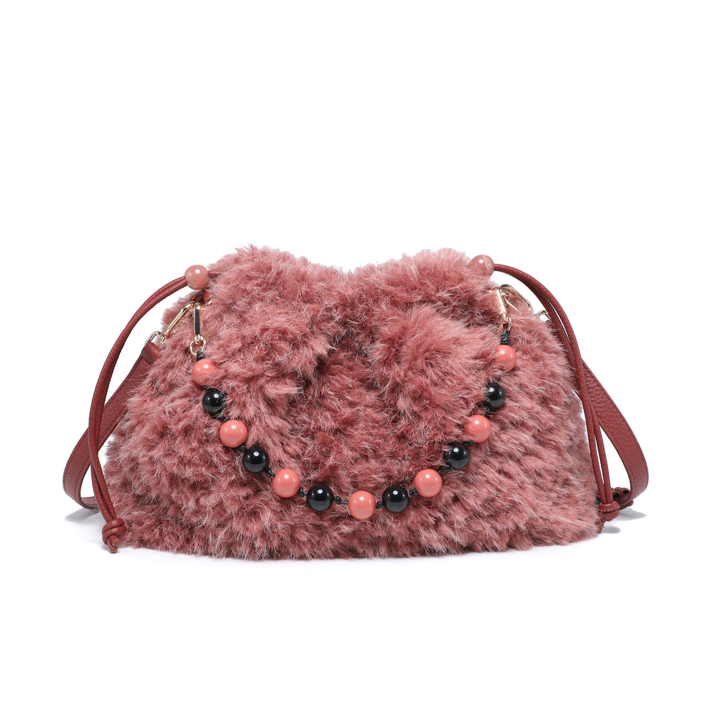 Borsa a tracolla strutturata in peluche con accento di catena di perline all'ingrosso