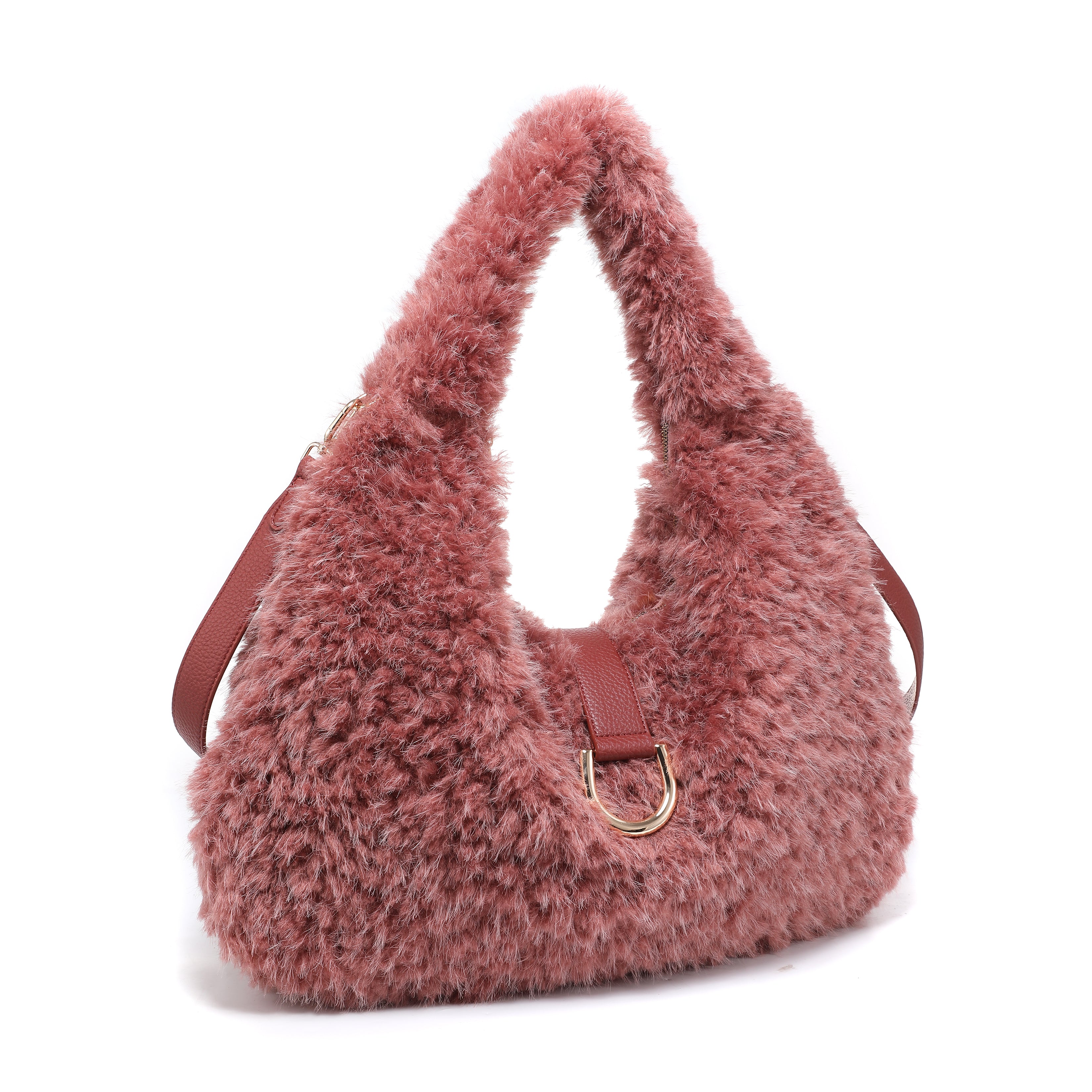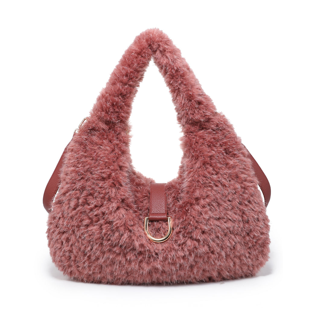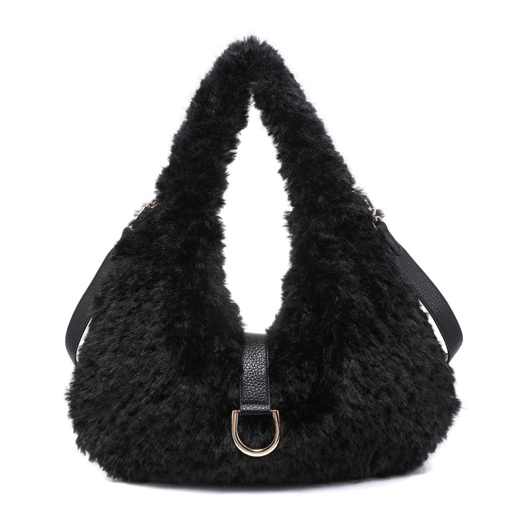 Borsa hobo testurizzata in peluche con accento fibbia dorata all'ingrosso