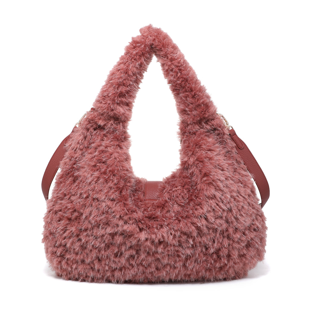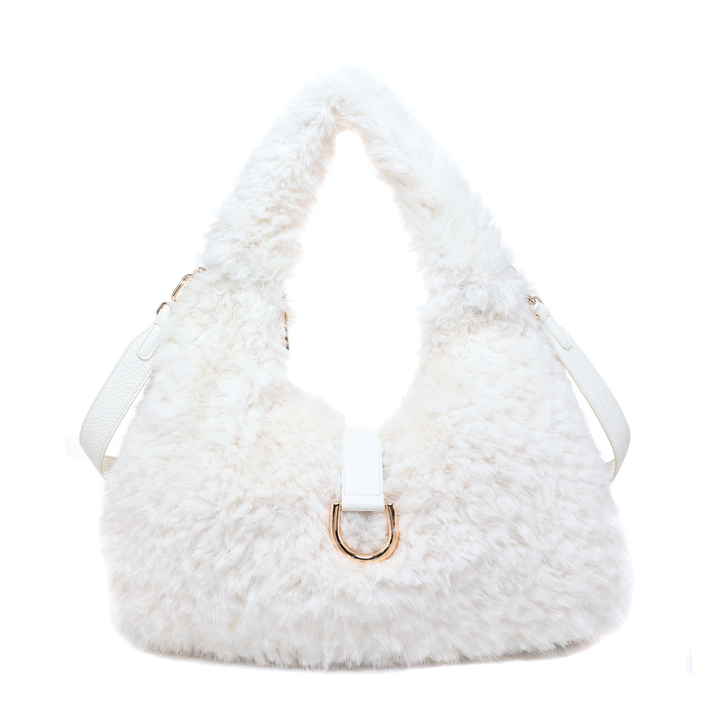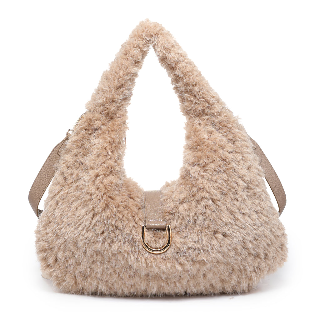 Borsa hobo testurizzata in peluche con accento fibbia dorata all'ingrosso