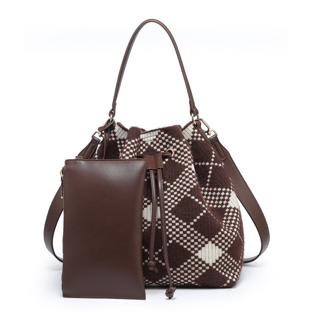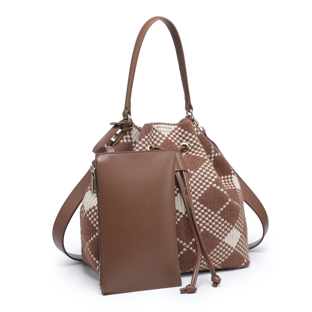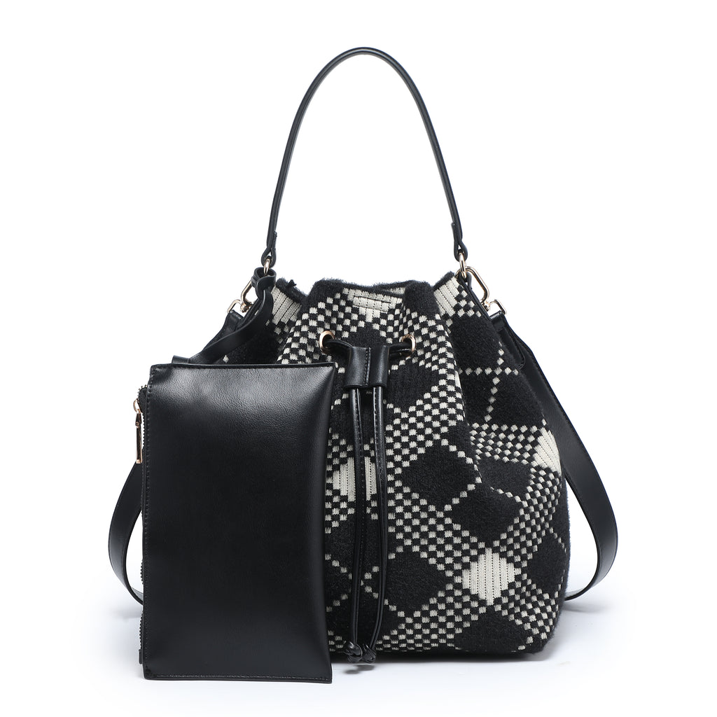 Borsa per bucket a quadri con taschina abbinata e chiusura a coregne all'ingrosso