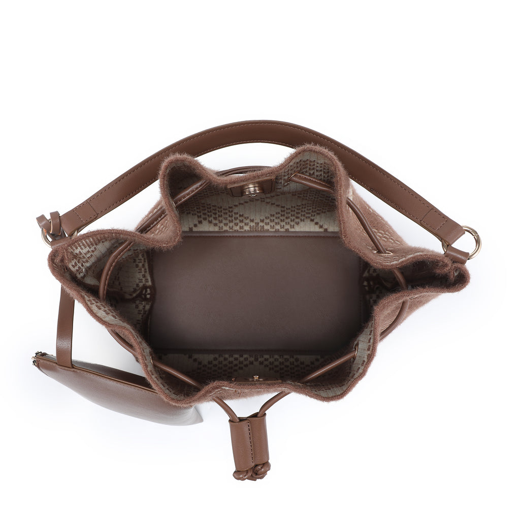 • Silhouette a mezzaluna elegante con finitura testurizzata da boucle