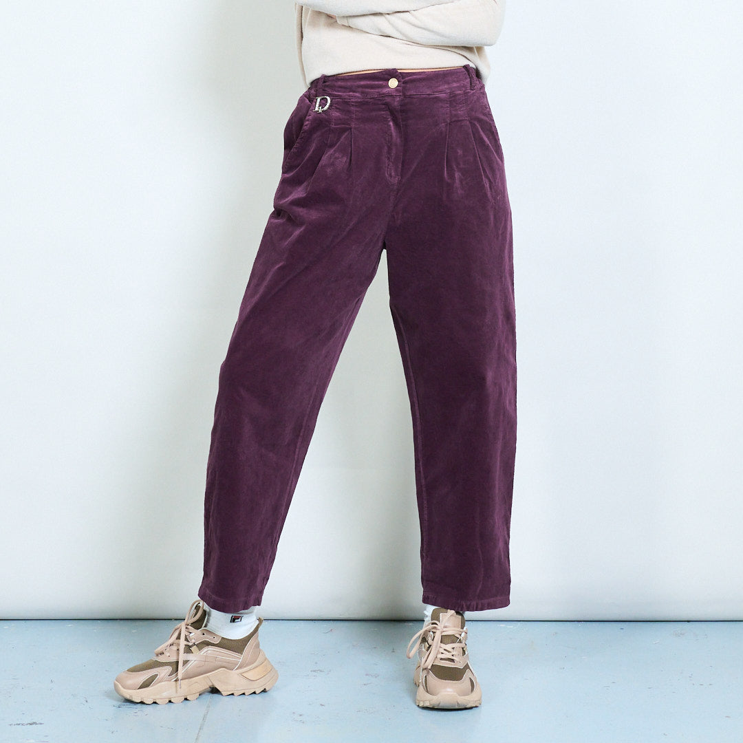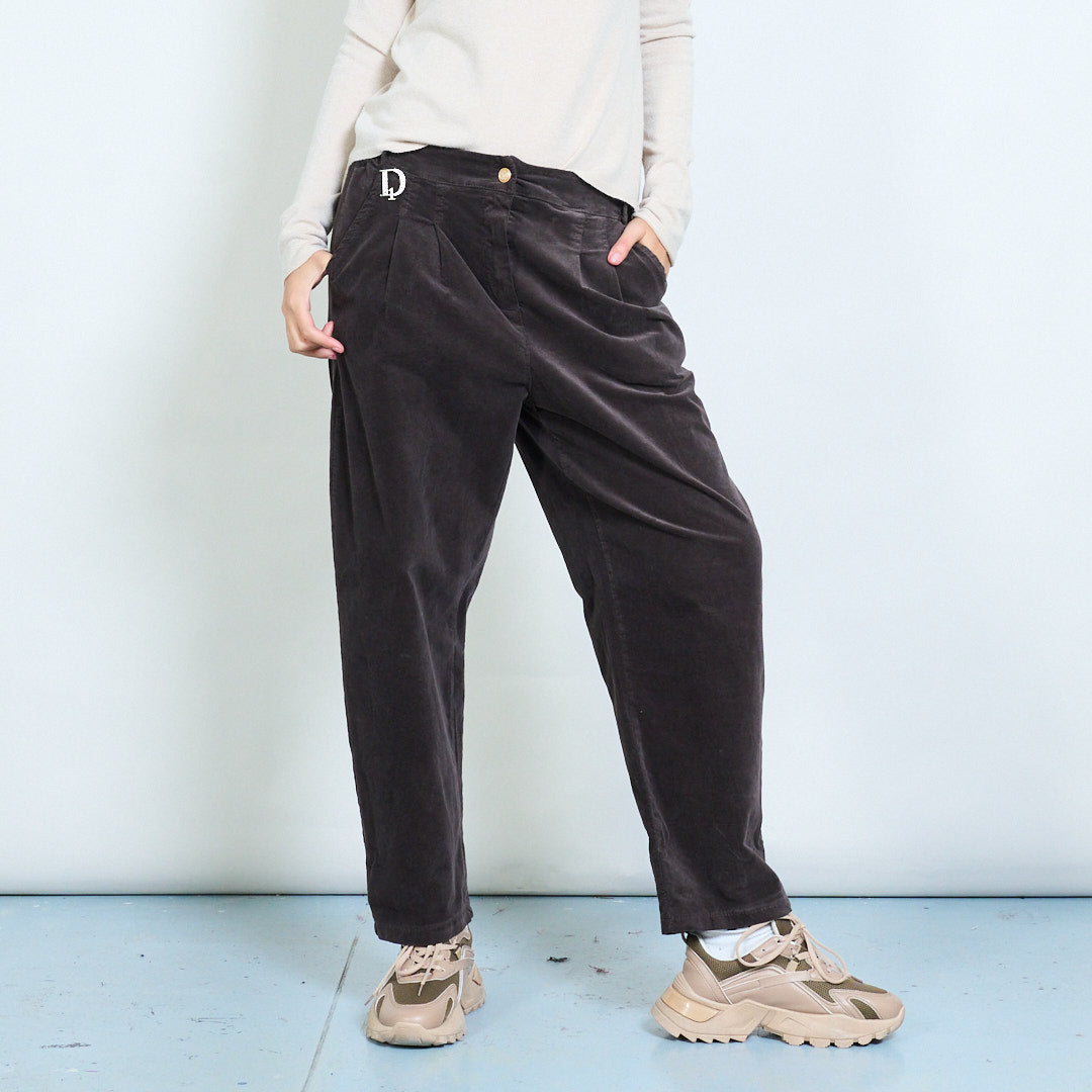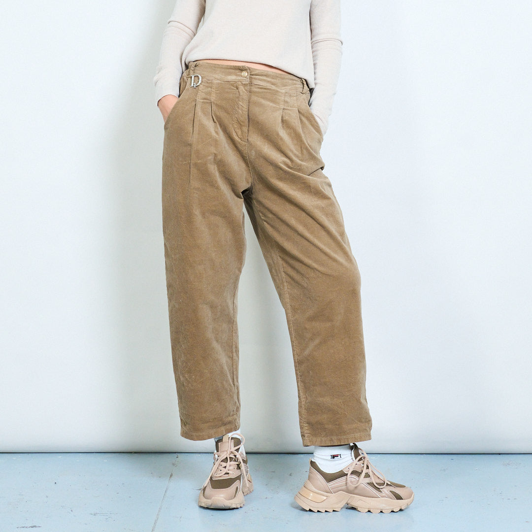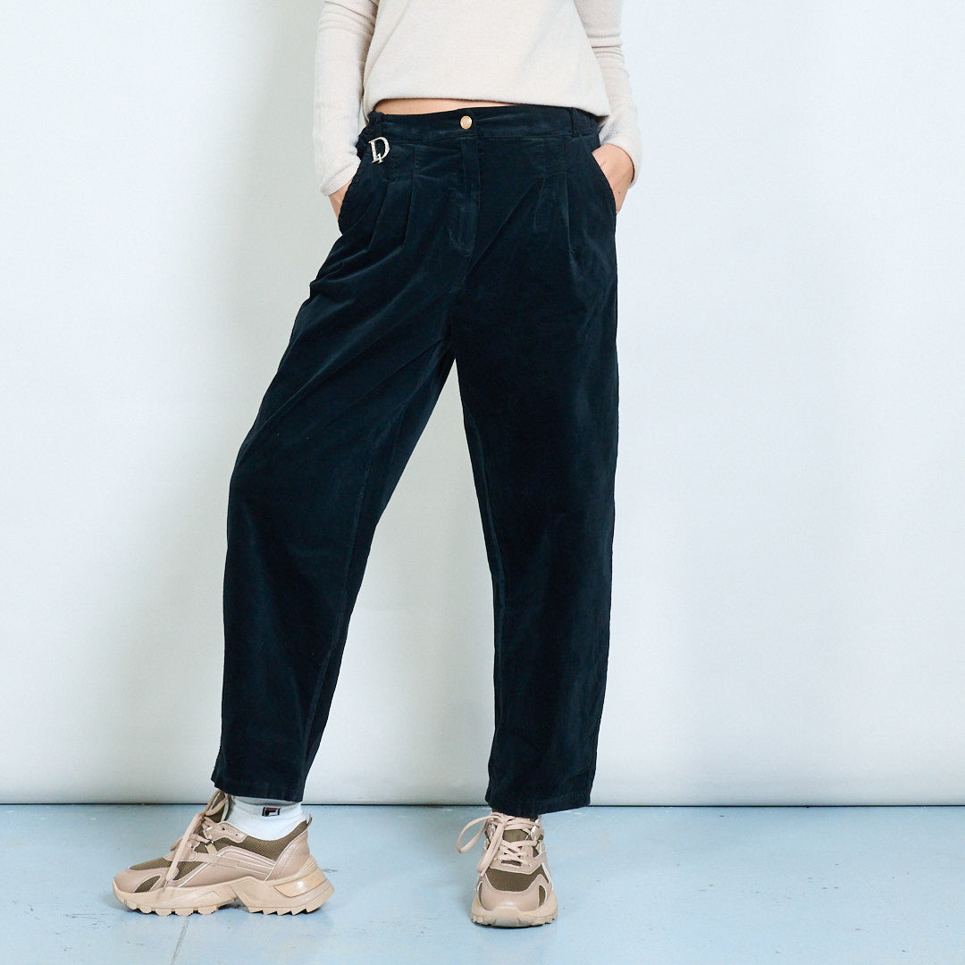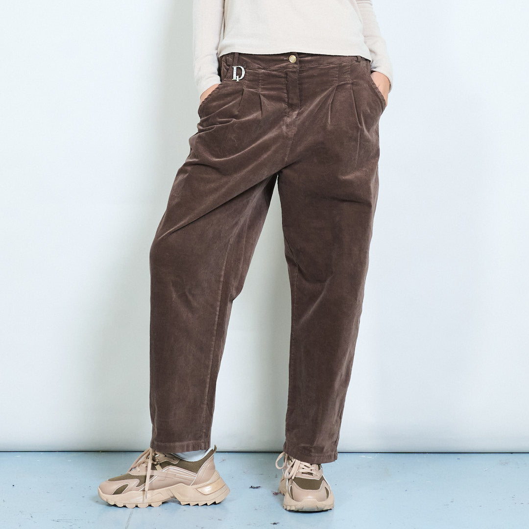 Pantaloni rilassati affusolati a pieghe con stemma decorativo all'ingrosso