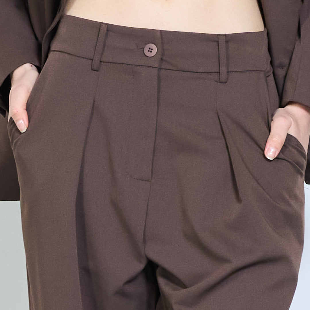 Pantaloni sartoriali a gamba dritta pieghettati con design a vita pulita all'ingrosso