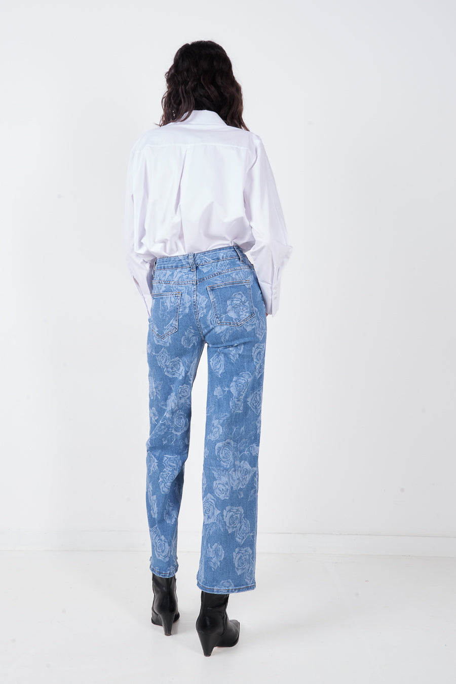 Vendita all'ingrosso di jeans denim a gamba dritta con motivo floreale