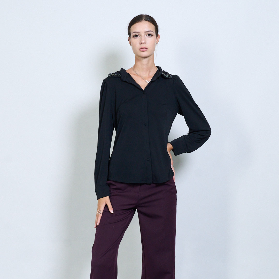 - Blusa senza tempo con chiusura frontale pulsante pulito