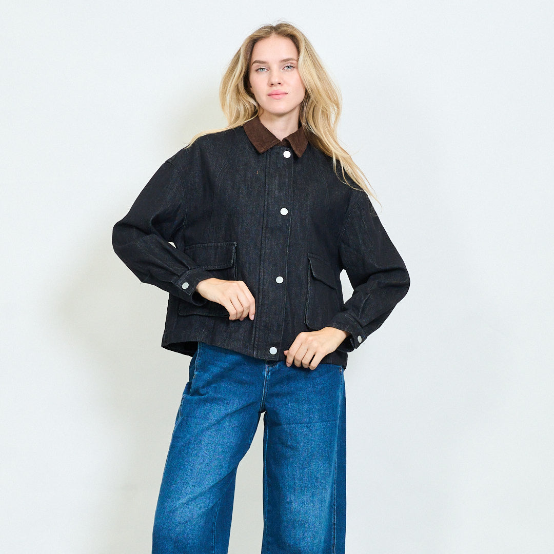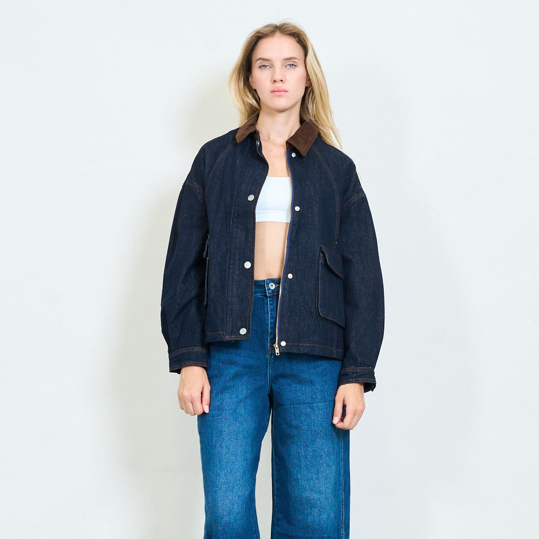 - Giacca in denim a fit rilassato con collare a velluto a contrasto