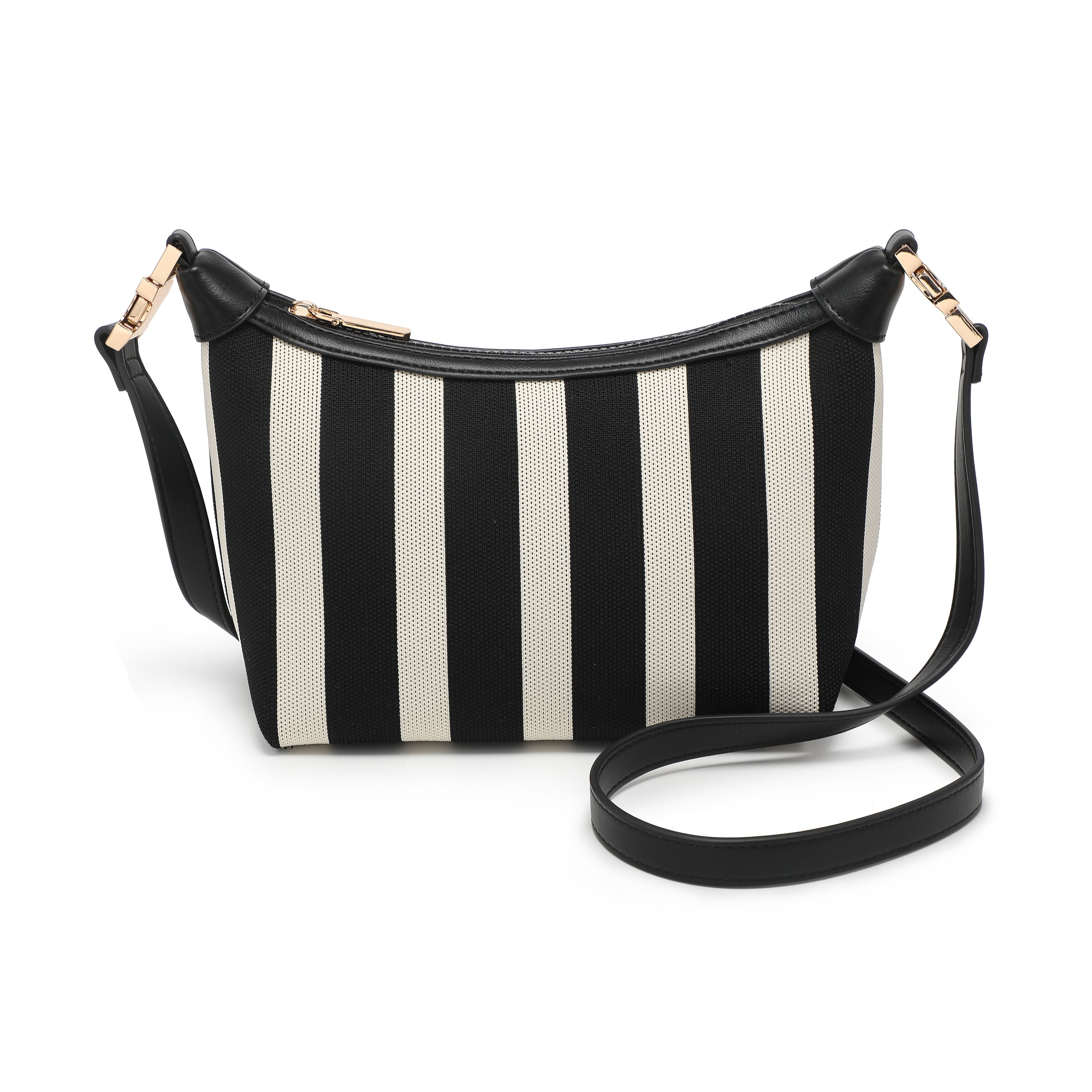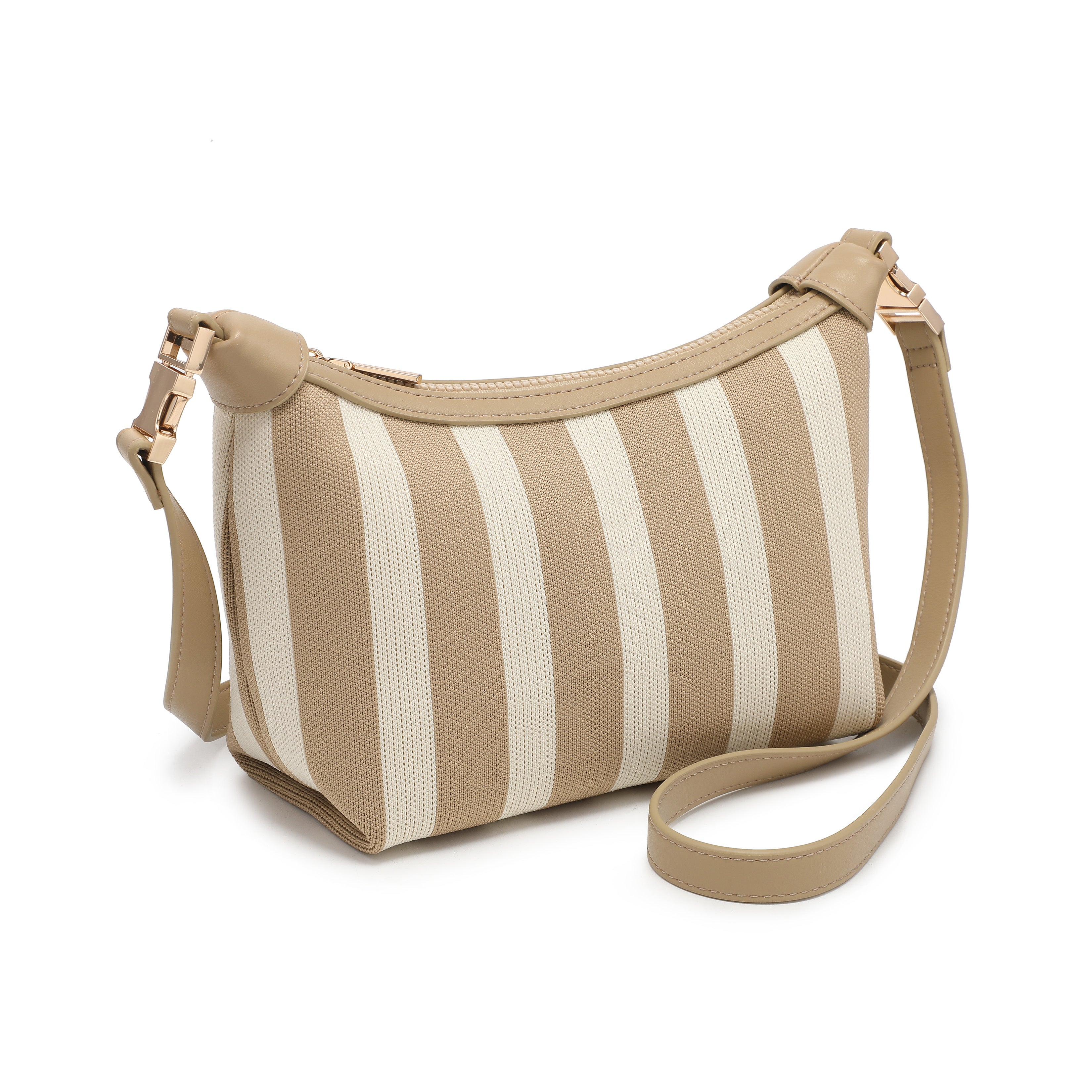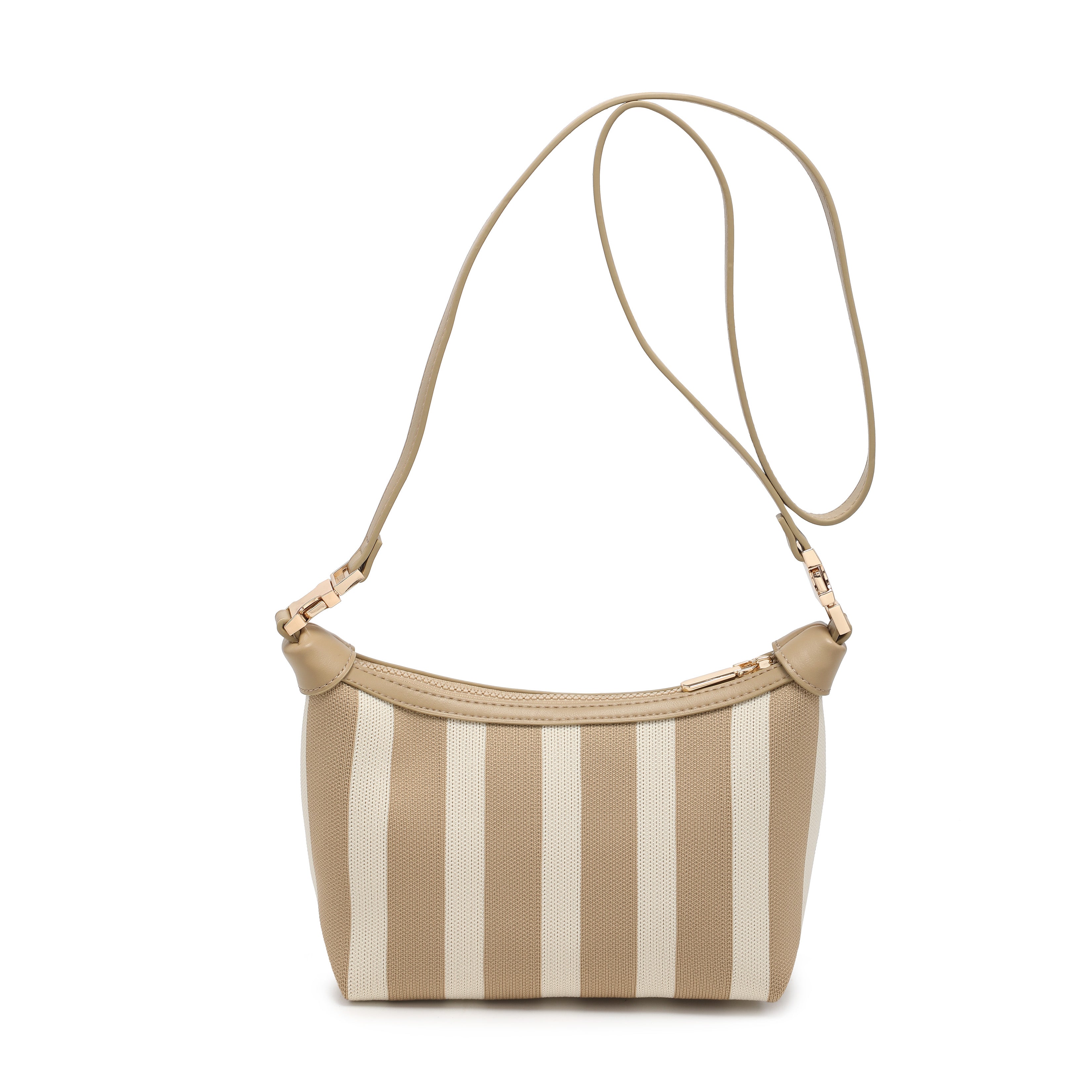 Borsa a spalla in tela a righe con chiusura a zip e tracolla all'ingrosso