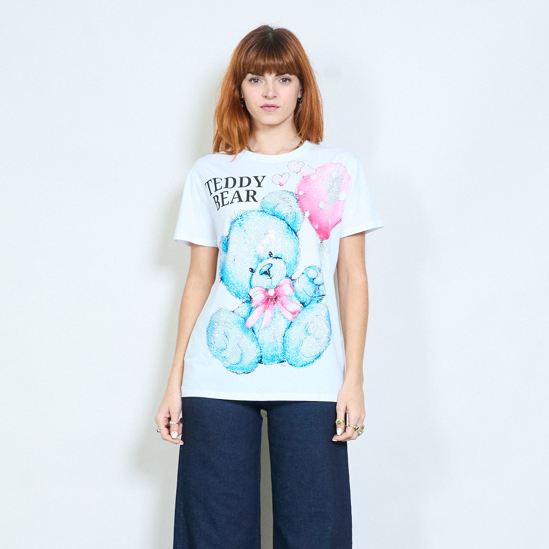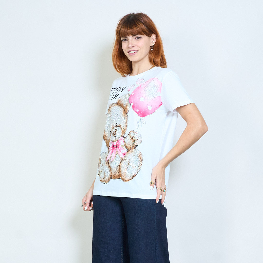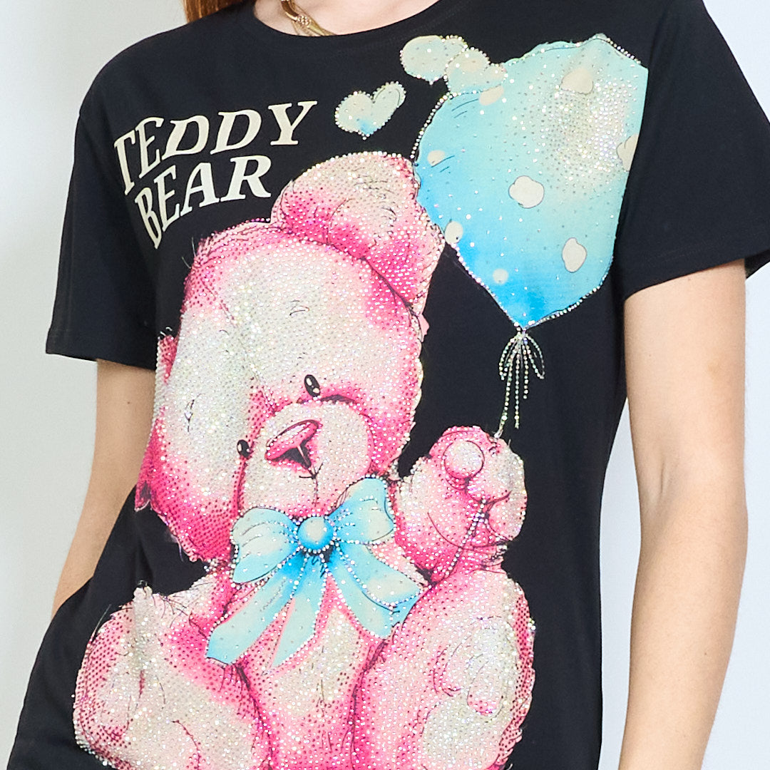 Animalia modifica la maglietta a maniche corte stampata con grafica "Teddy Bear" con strass all'ingrosso
