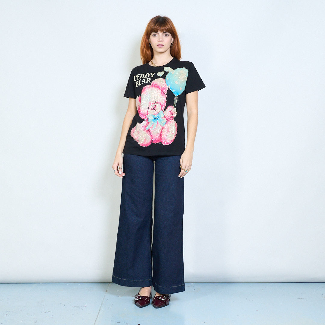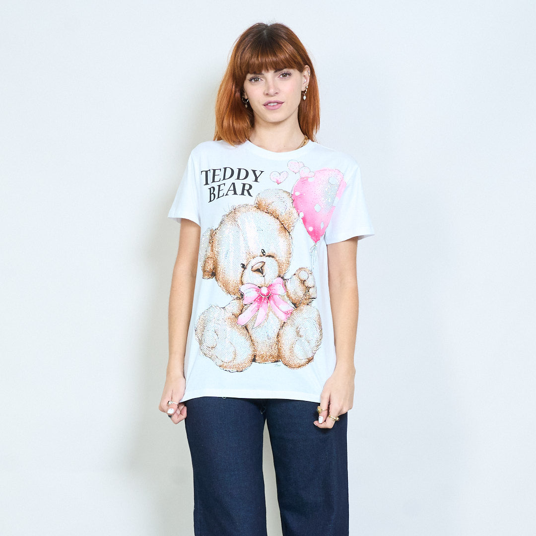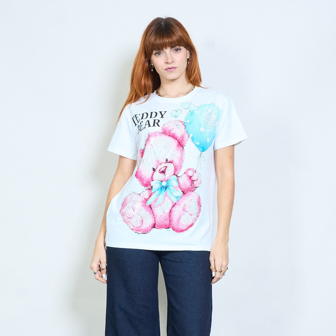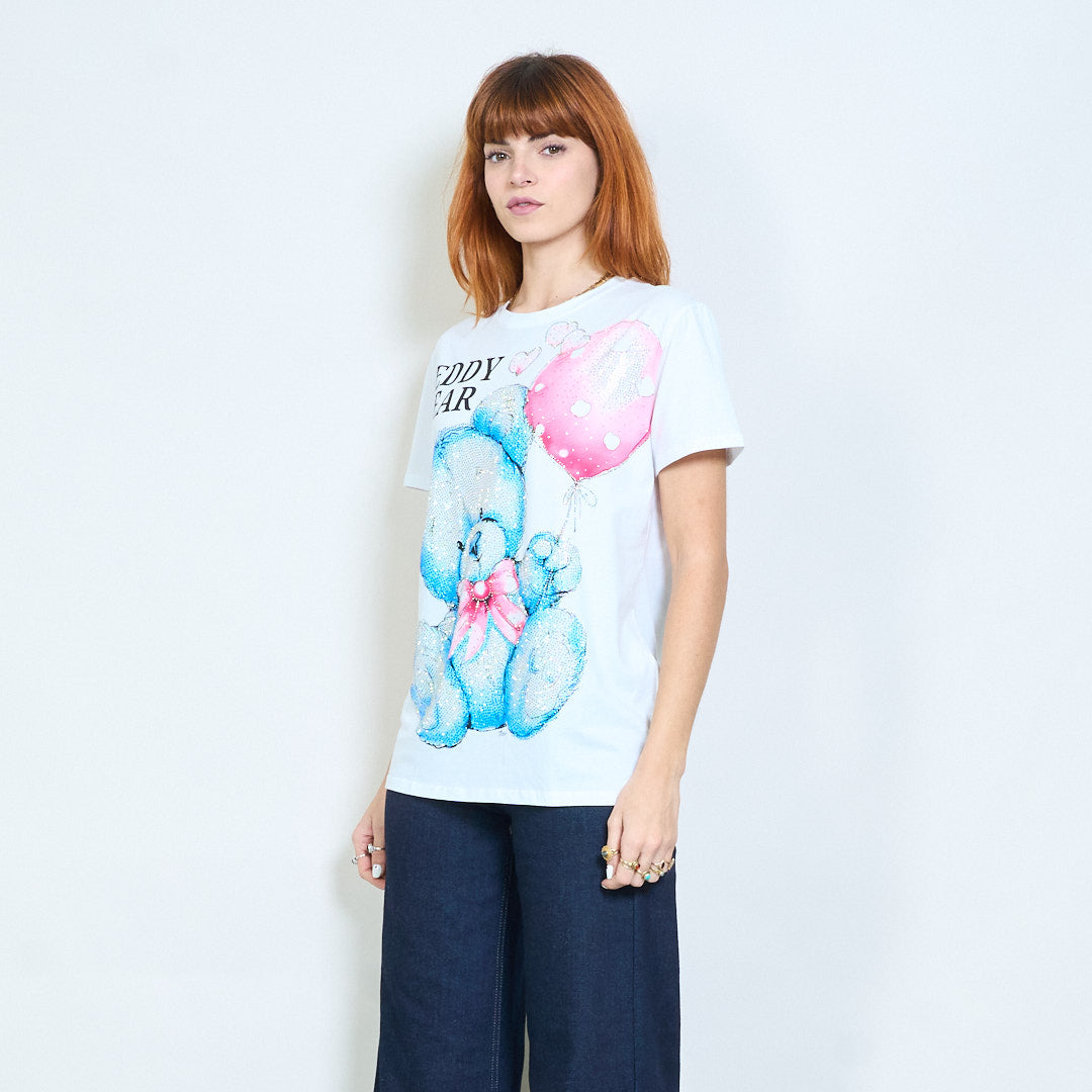 Animalia modifica la maglietta a maniche corte stampata con grafica "Teddy Bear" con strass all'ingrosso