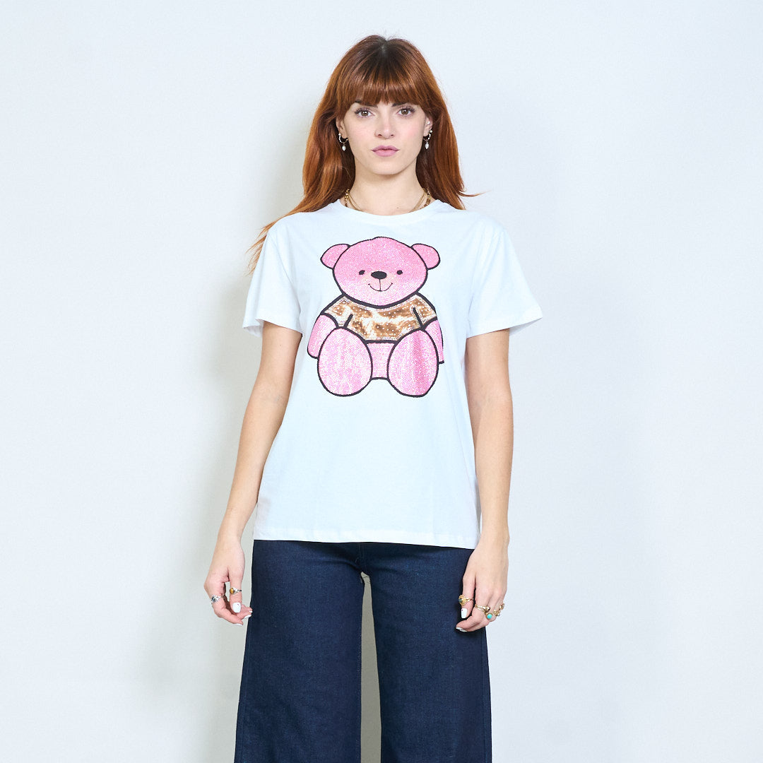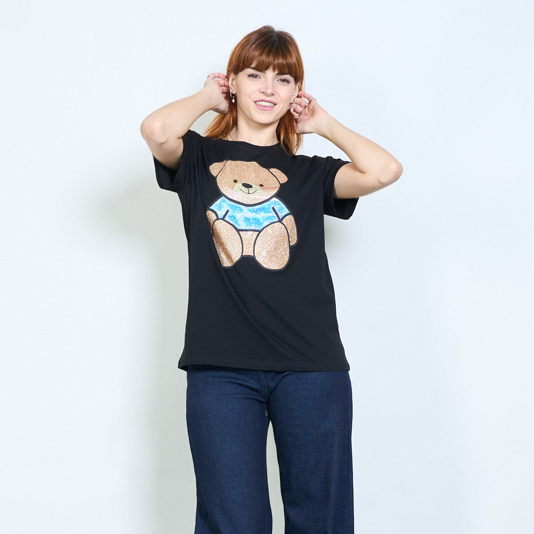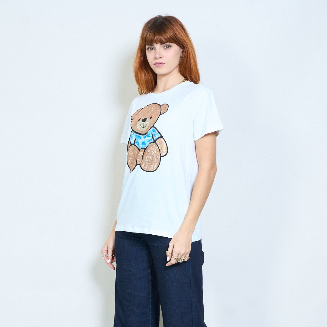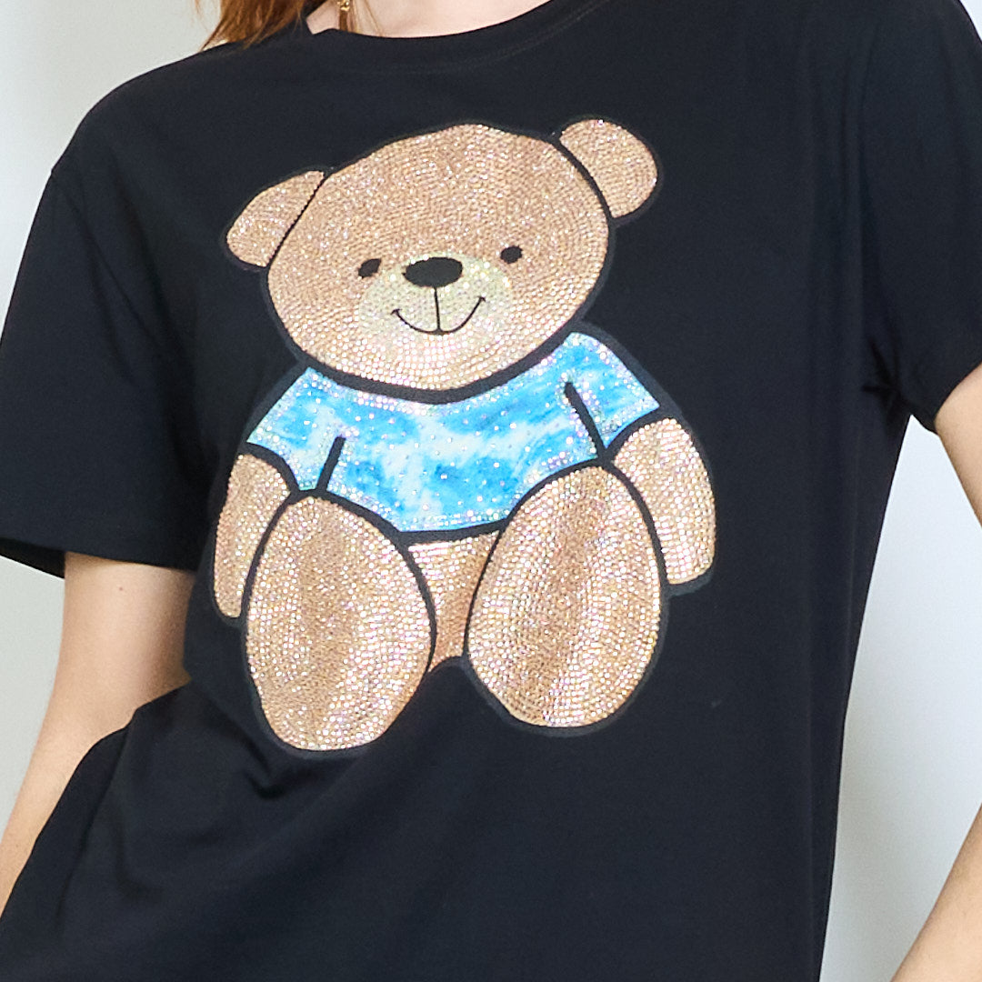 Animalia modifica strass con orso grafica t-shirt a maniche corte all'ingrosso