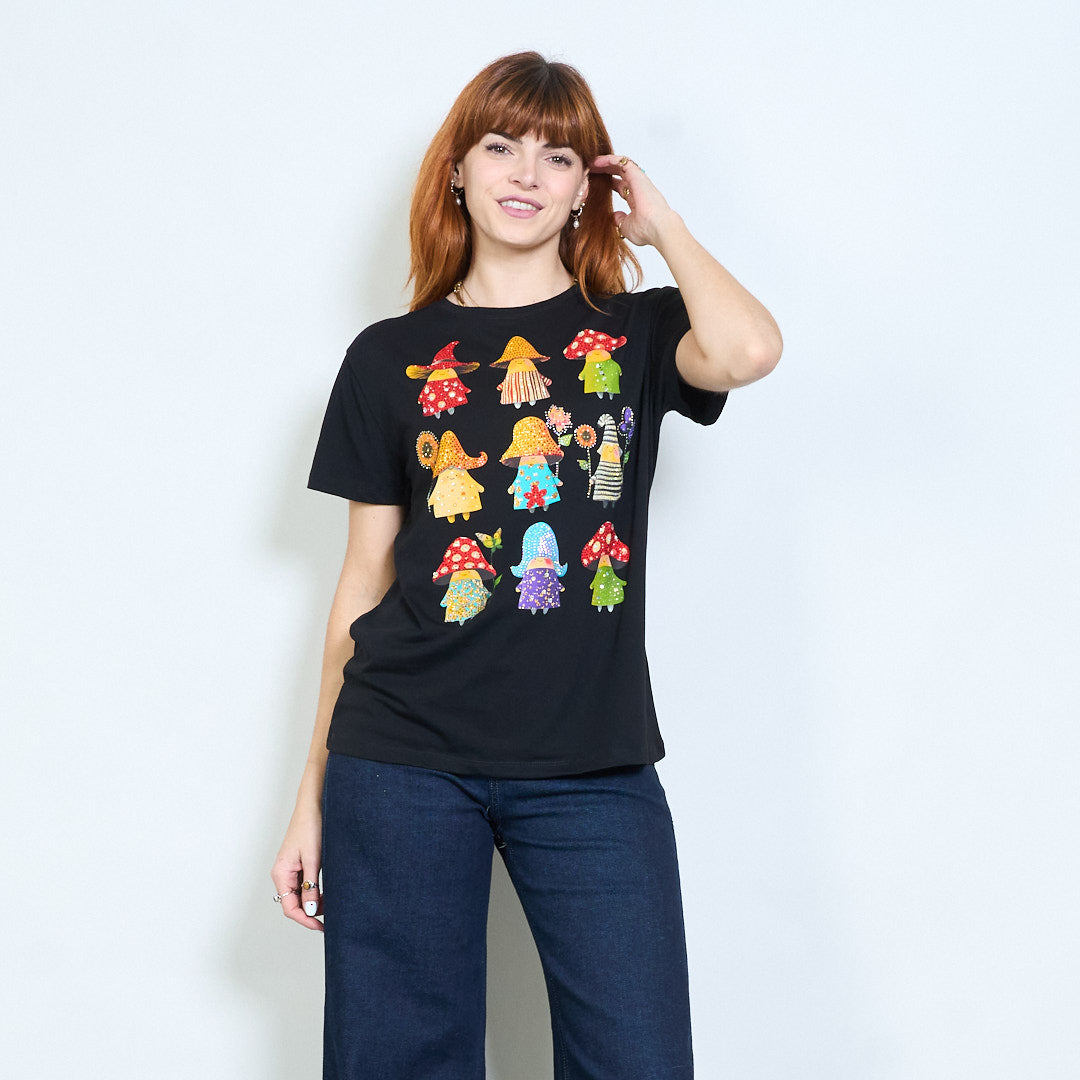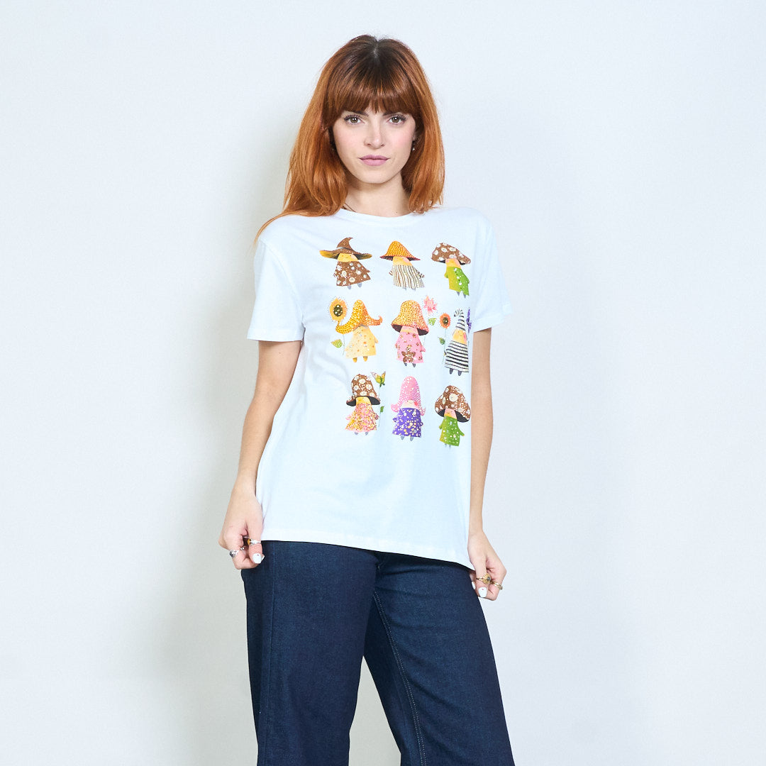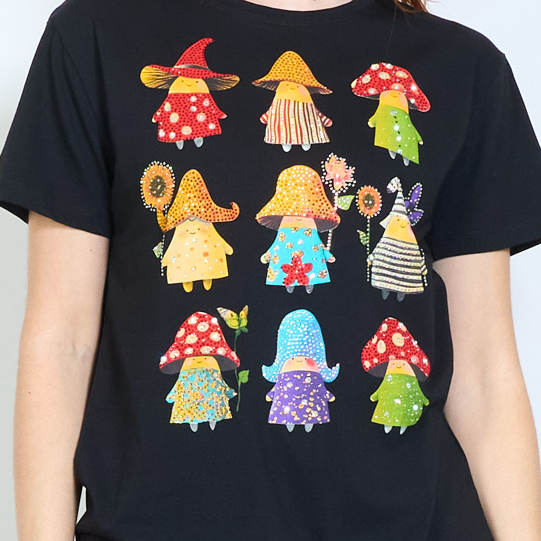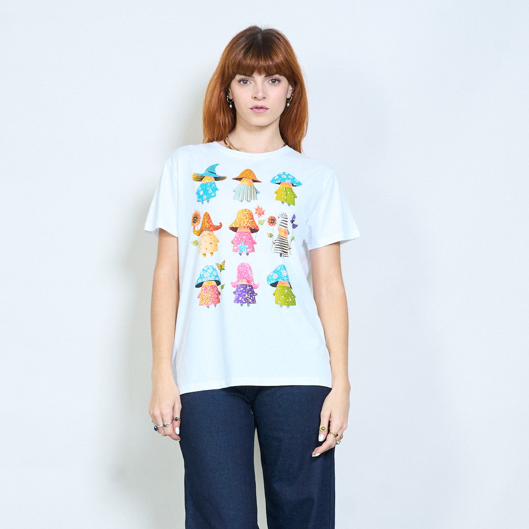 Commercio all'ingrosso di magliette a maniche corte stampate con grafica di personaggi illustrati con strass