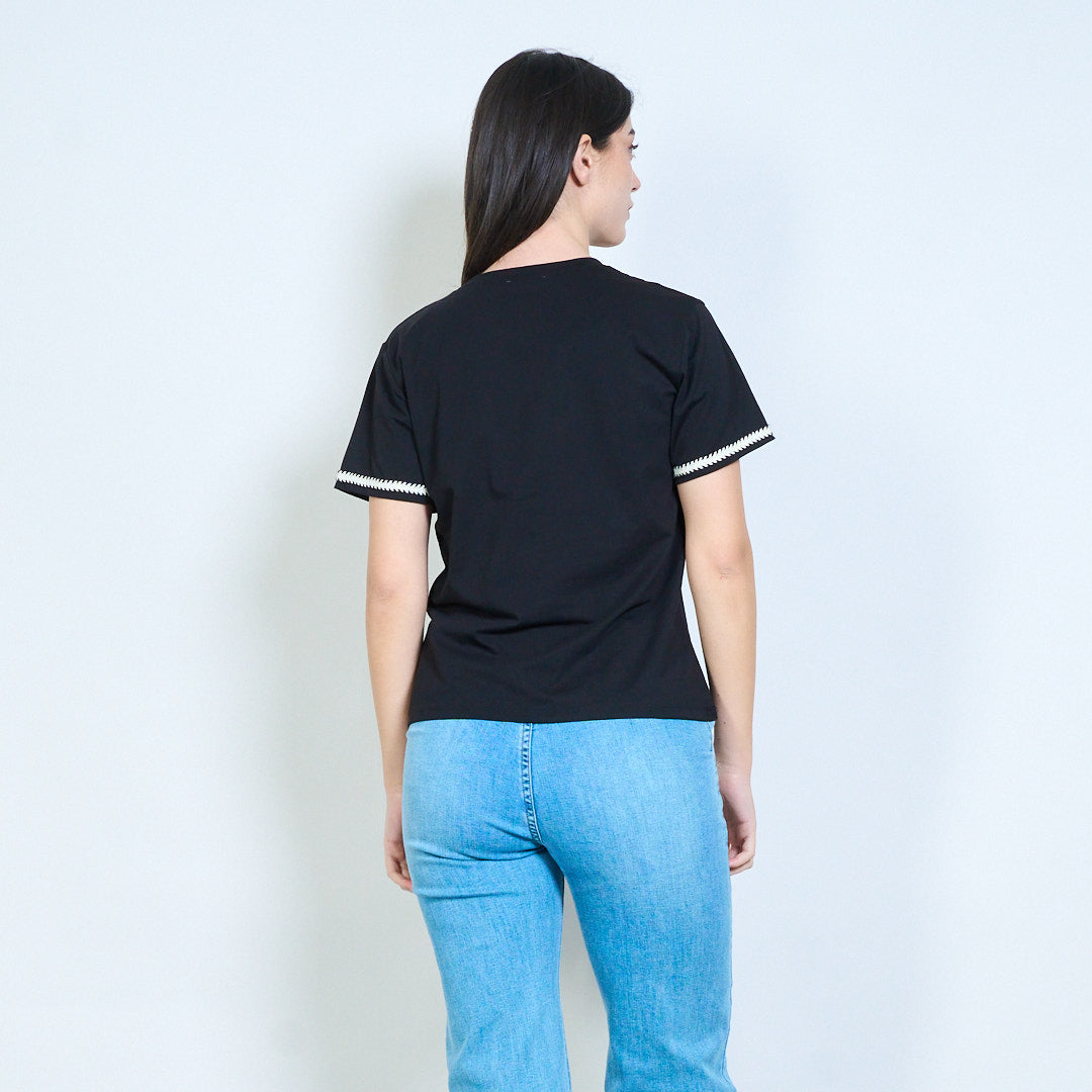 - Maniche corte con dettaglio rifinitura a contrasto