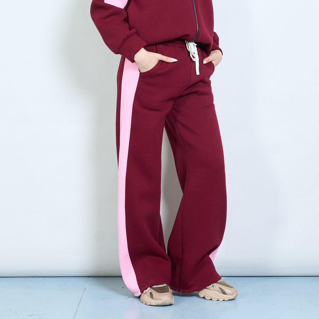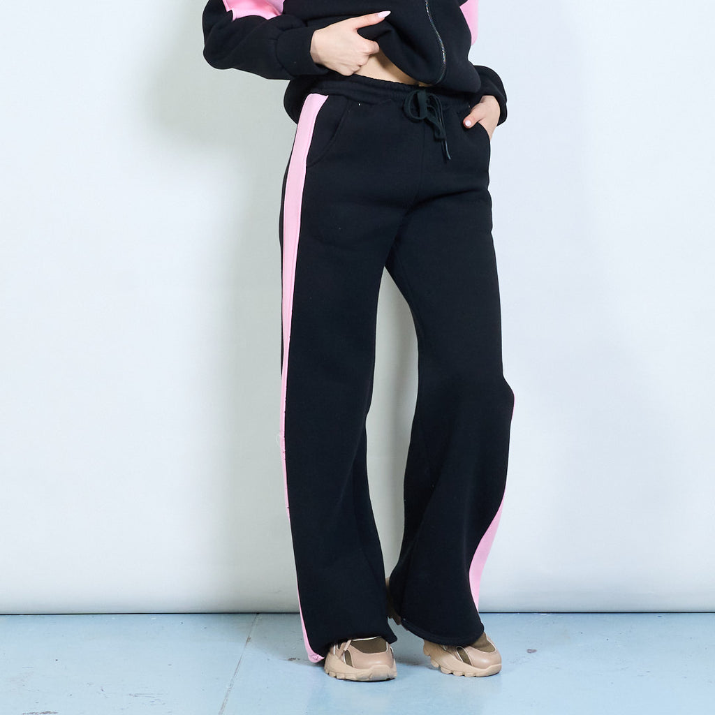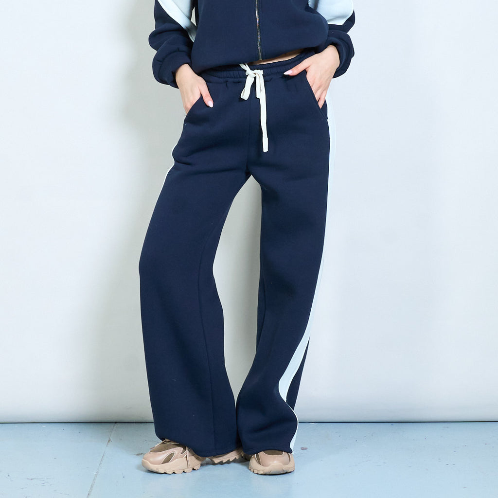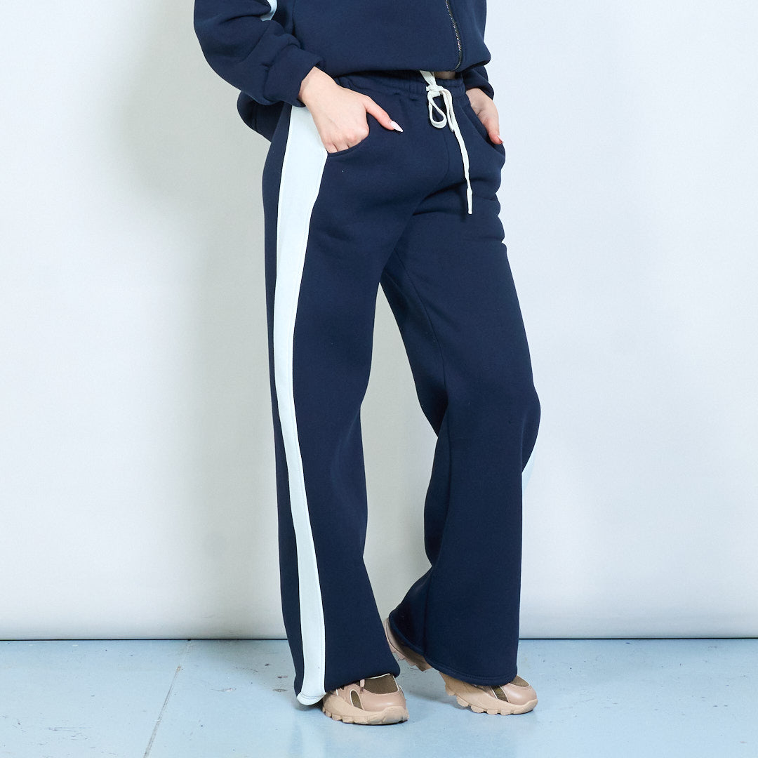 - Pantaloni dalla vestibilità comoda progettati con strisce sportive sui pannelli laterali a contrasto