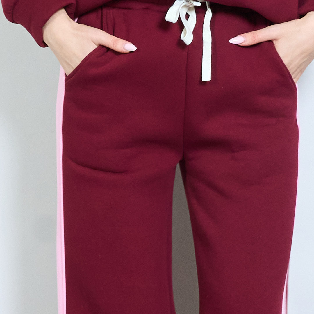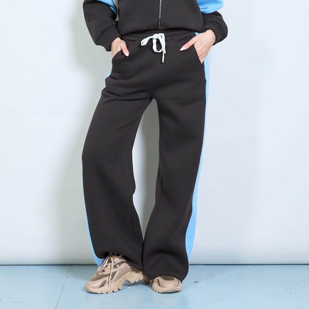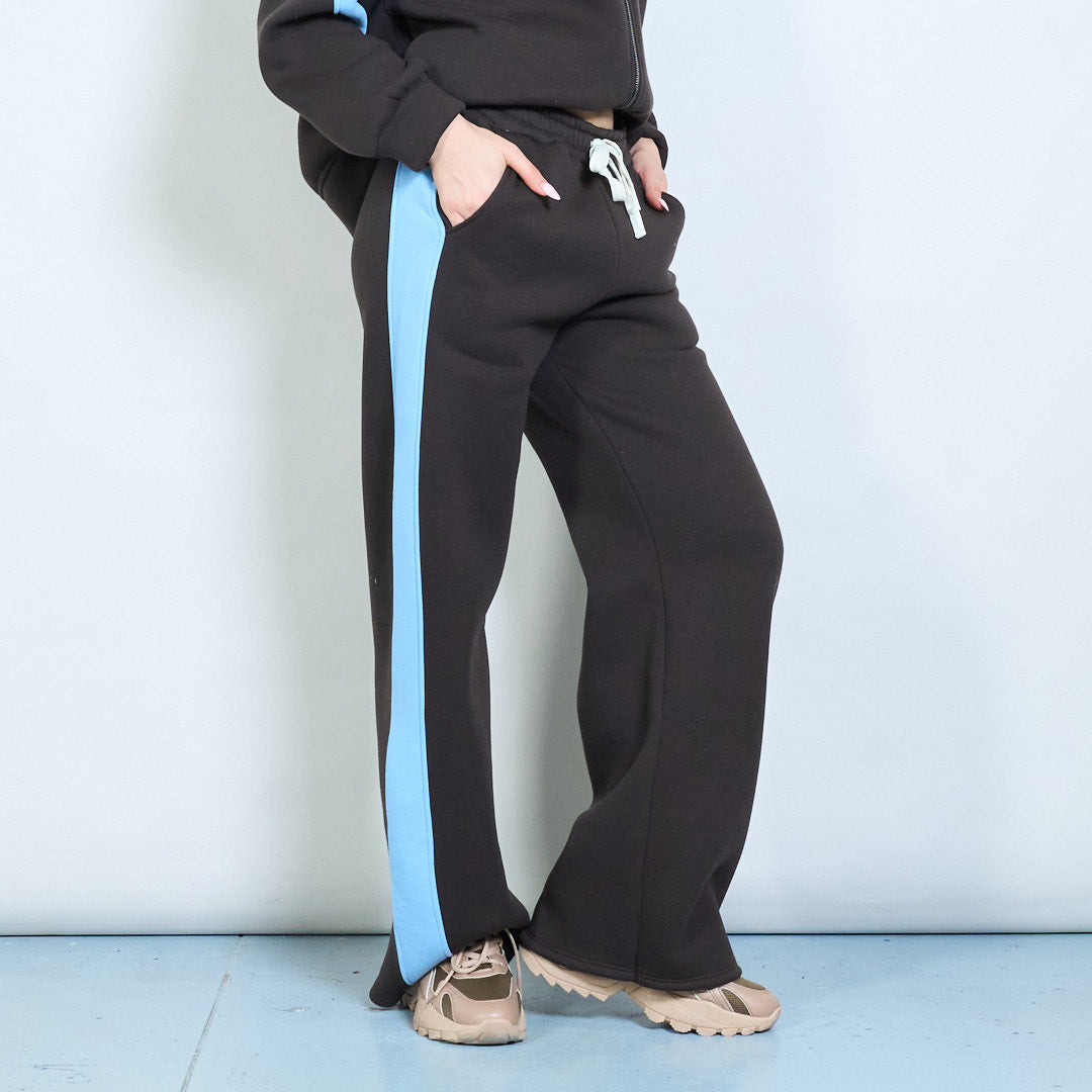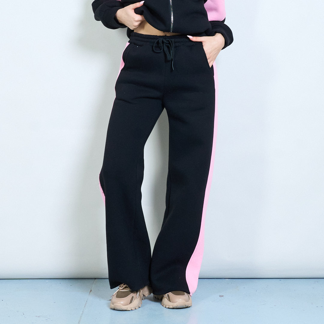 - Pantaloni dalla vestibilità comoda progettati con strisce sportive sui pannelli laterali a contrasto