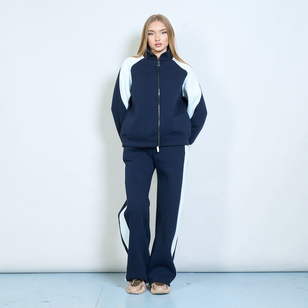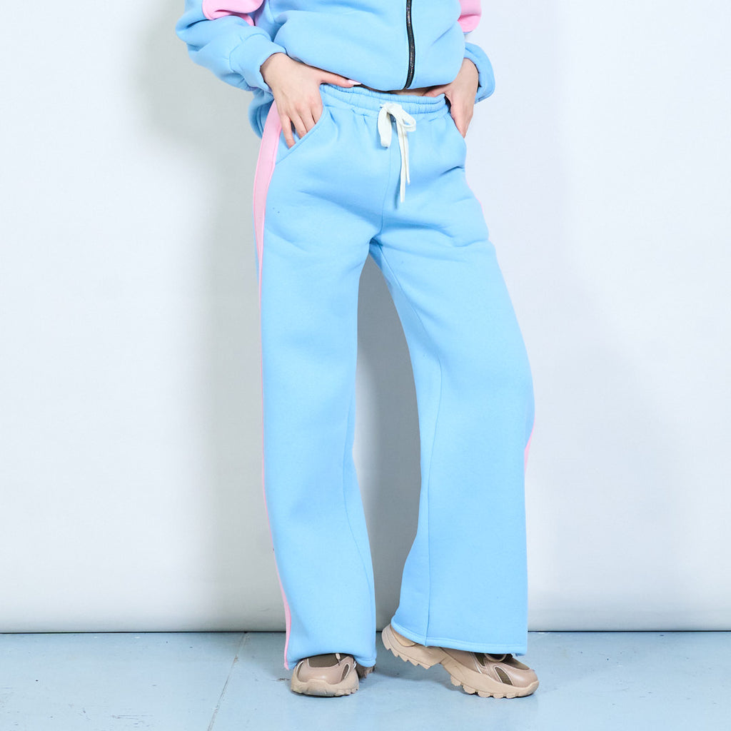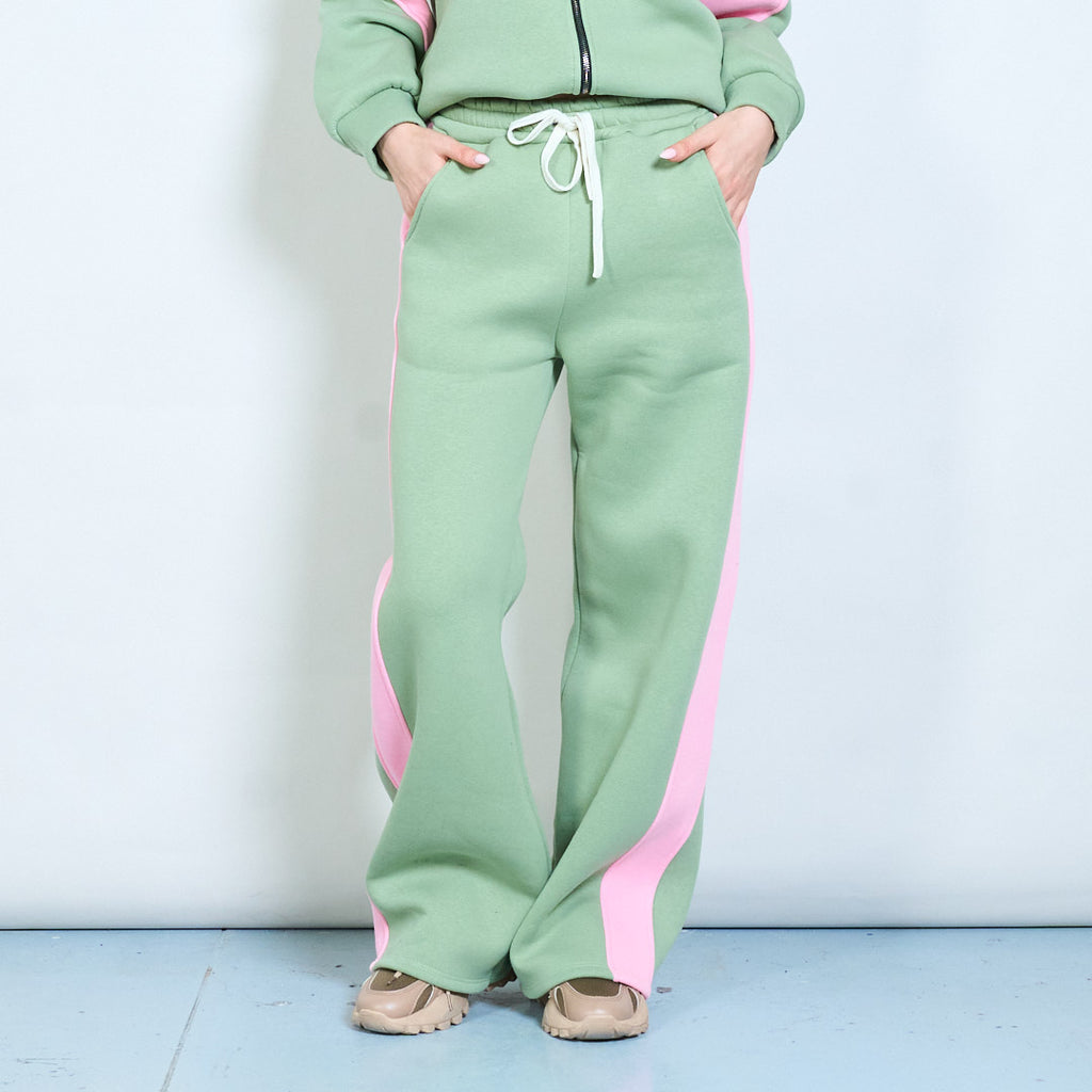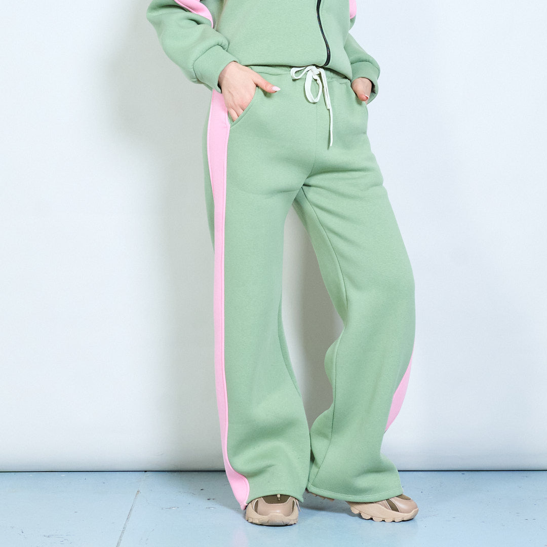 - Pantaloni dalla vestibilità comoda progettati con strisce sportive sui pannelli laterali a contrasto