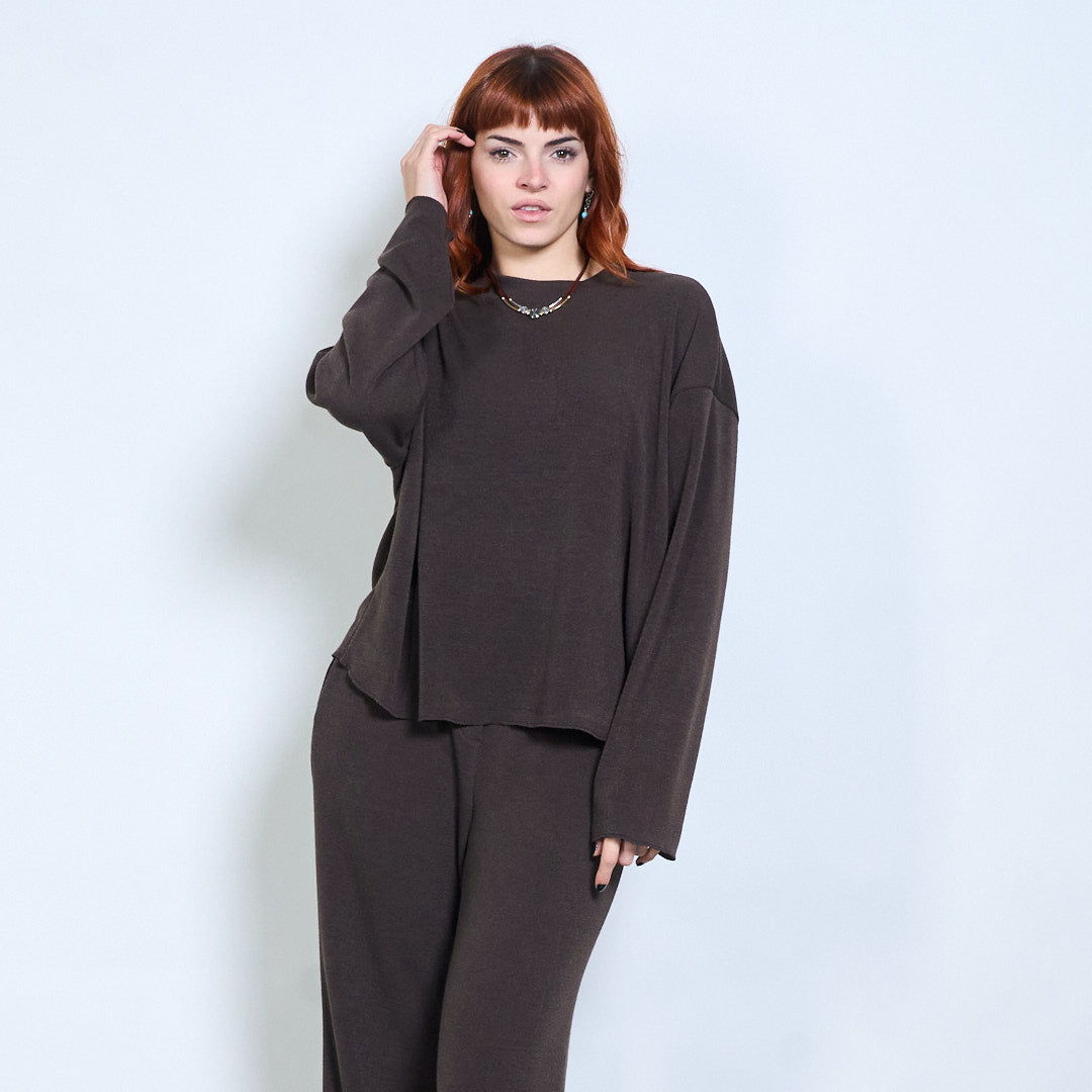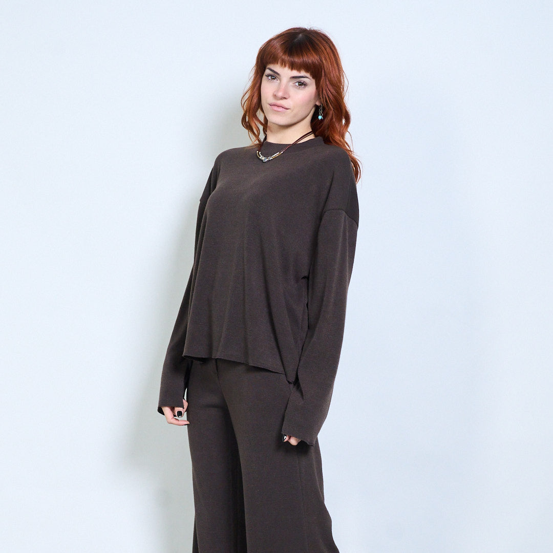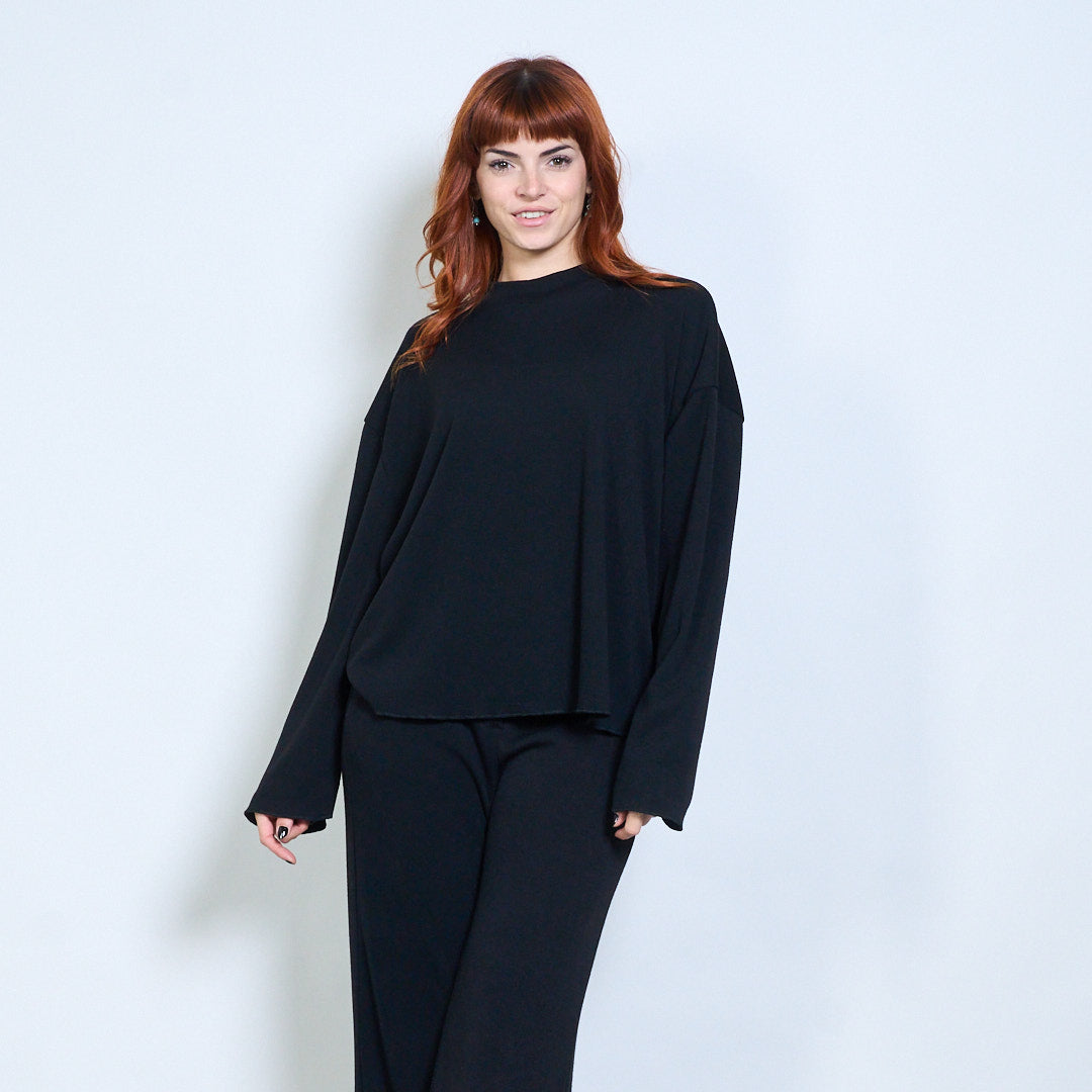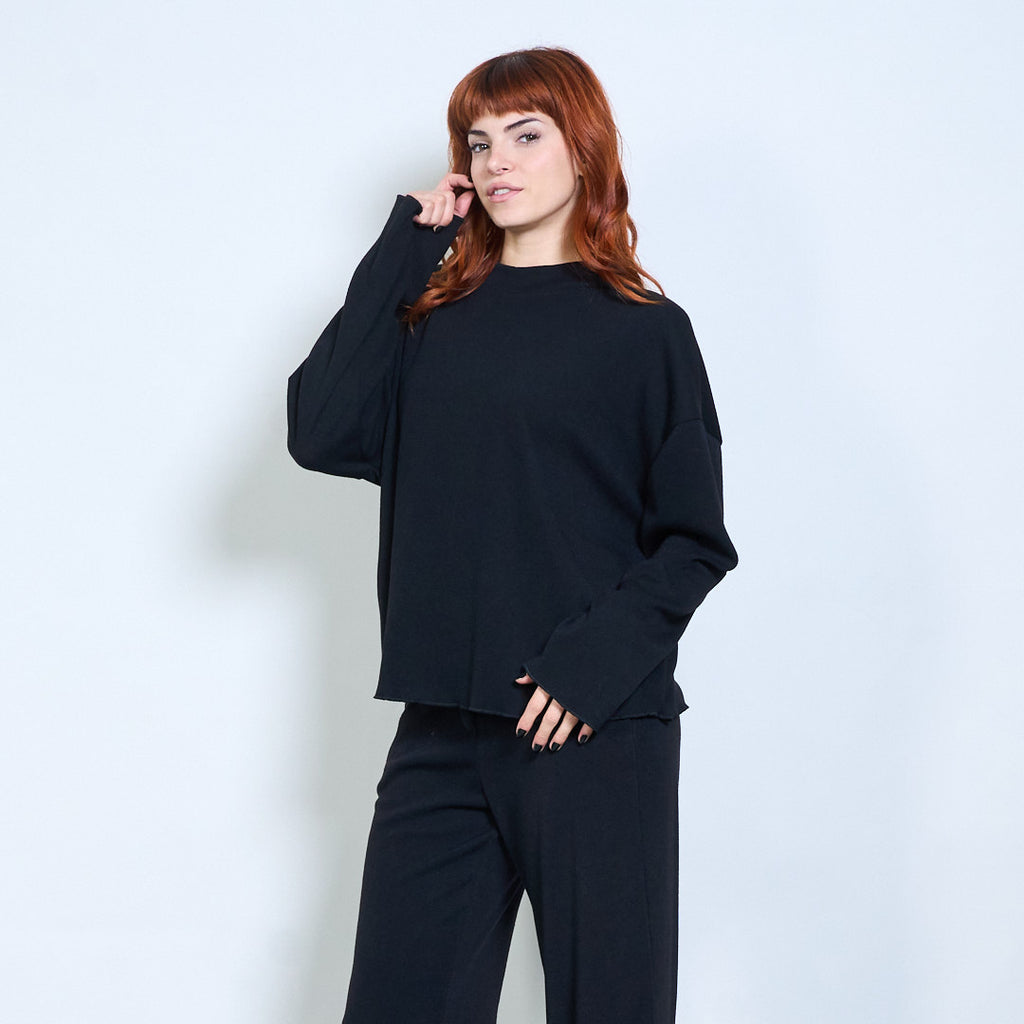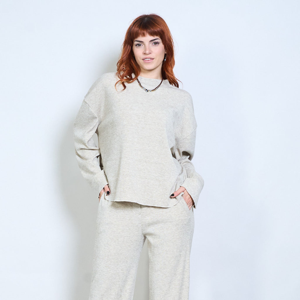 - Scollo rotondo e maniche lunghe per un look accogliente e versatile