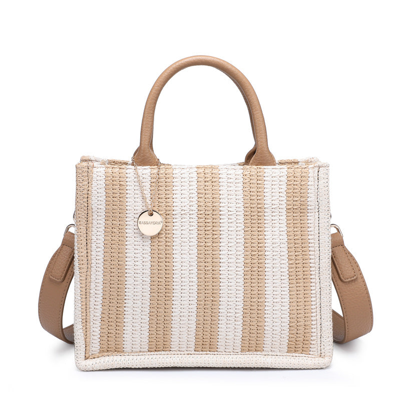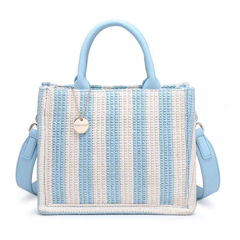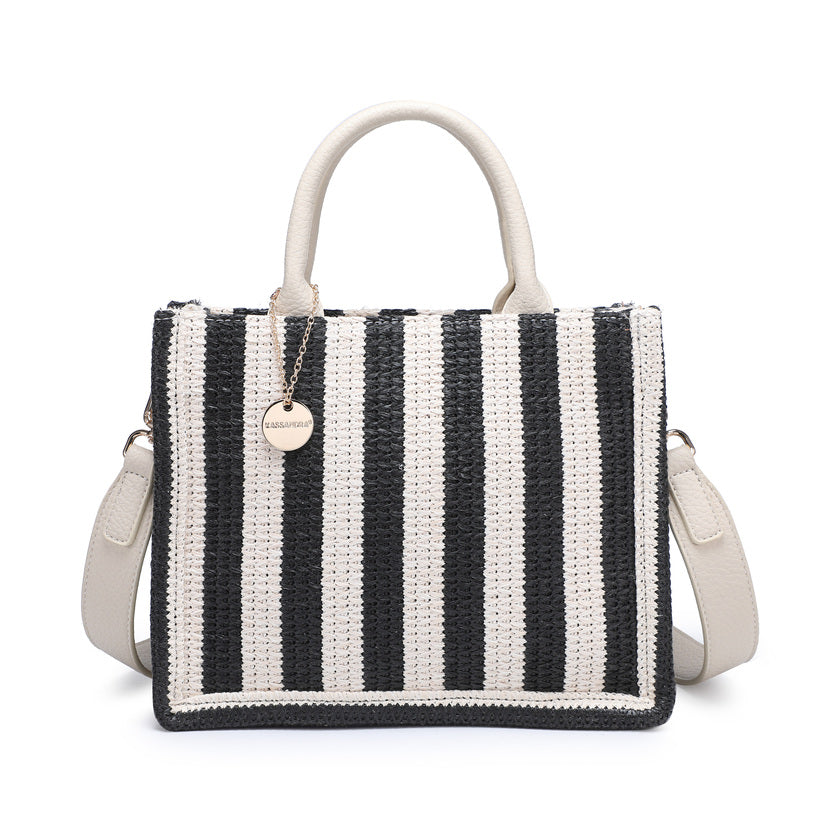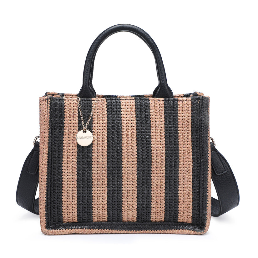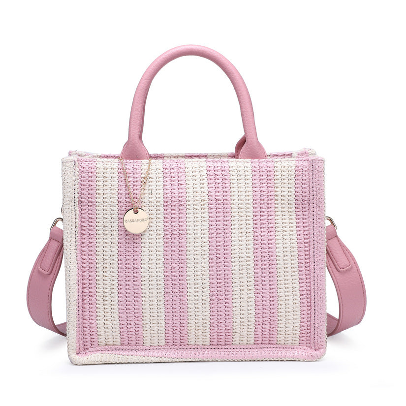 - Tote intrecciata compatta con un modello di striscia verticale giocosa