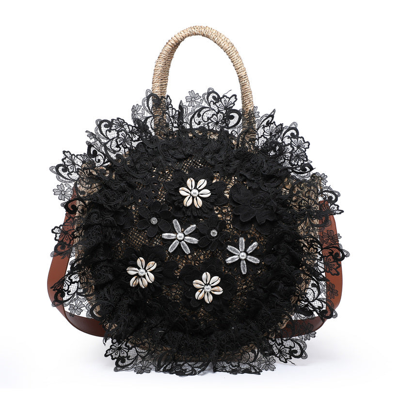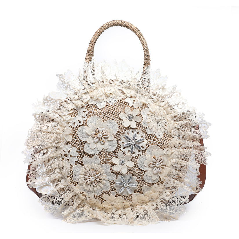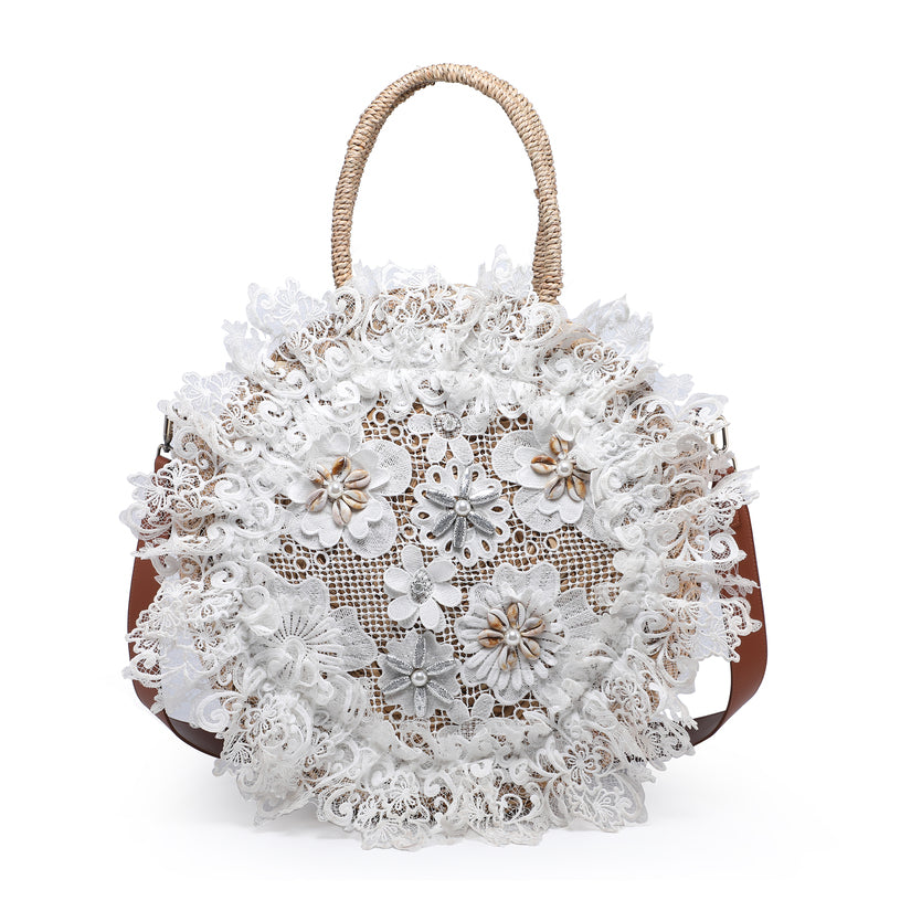 Shopper in pizzo floreale rotondo con abbellimenti con shell e paillettes all'ingrosso