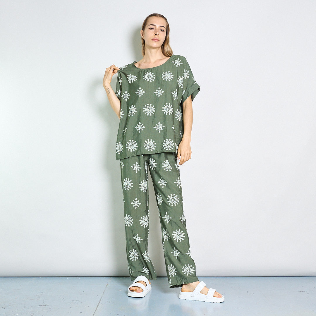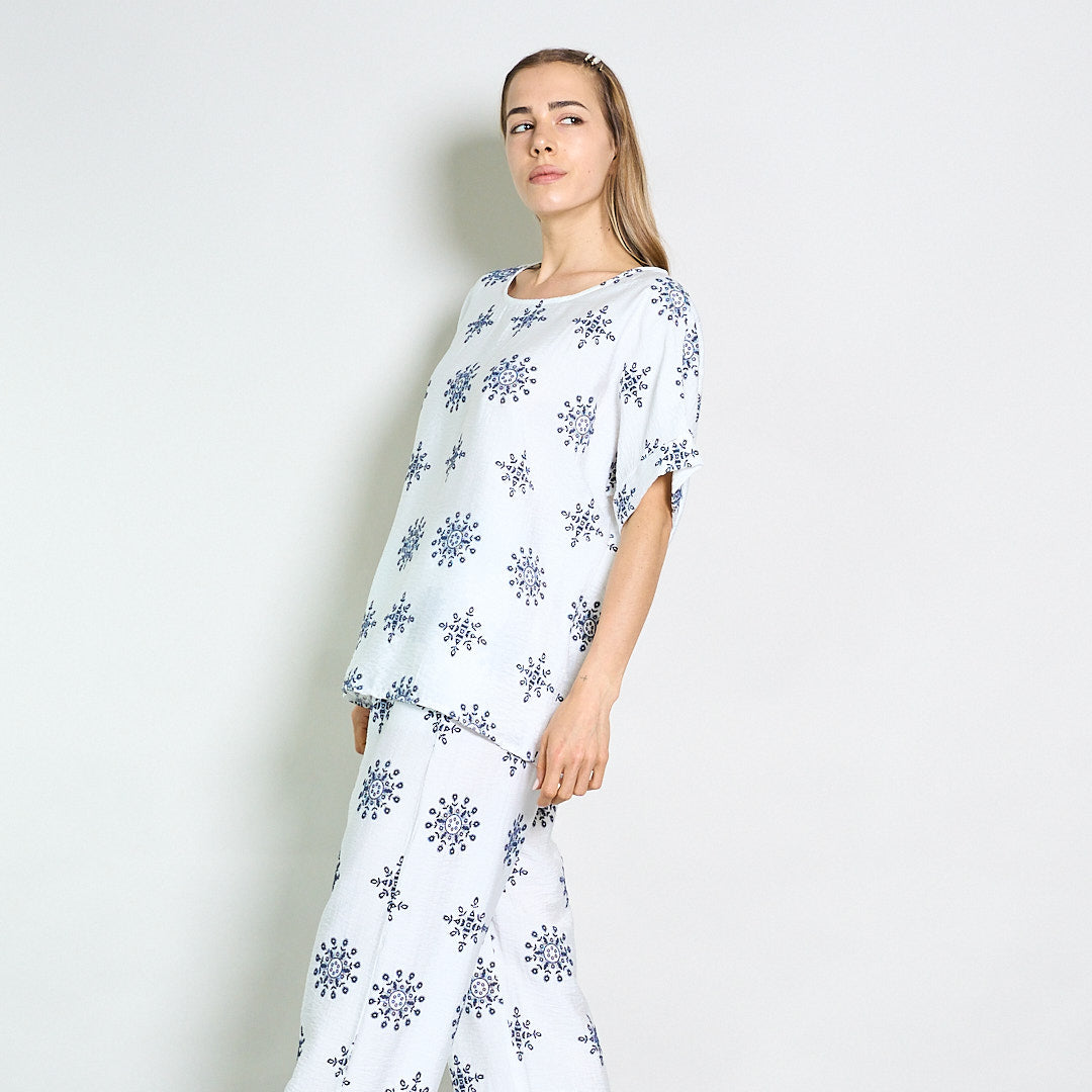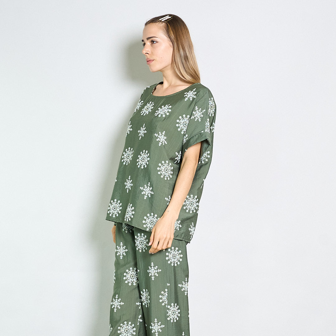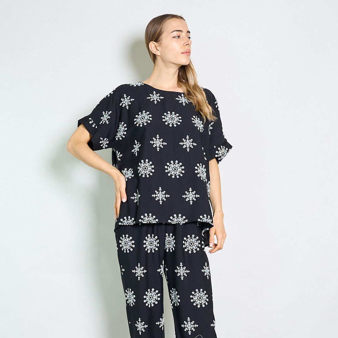 Camicetta ricamata boxy con scollatura rotonda all'ingrosso