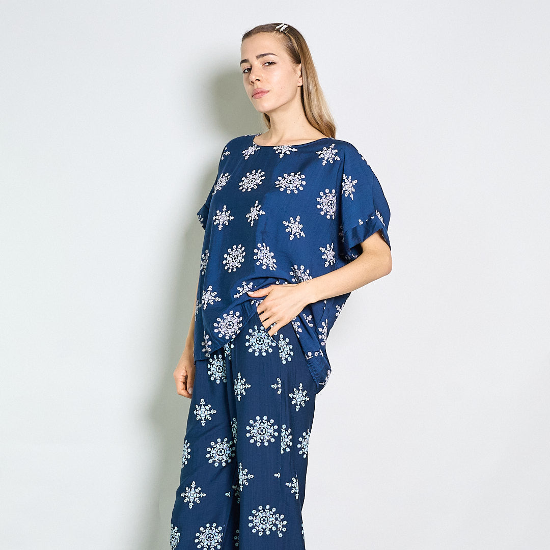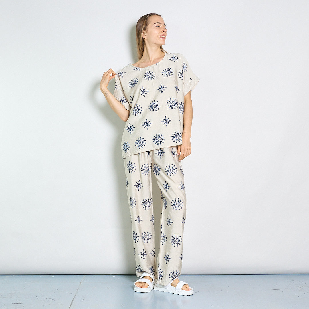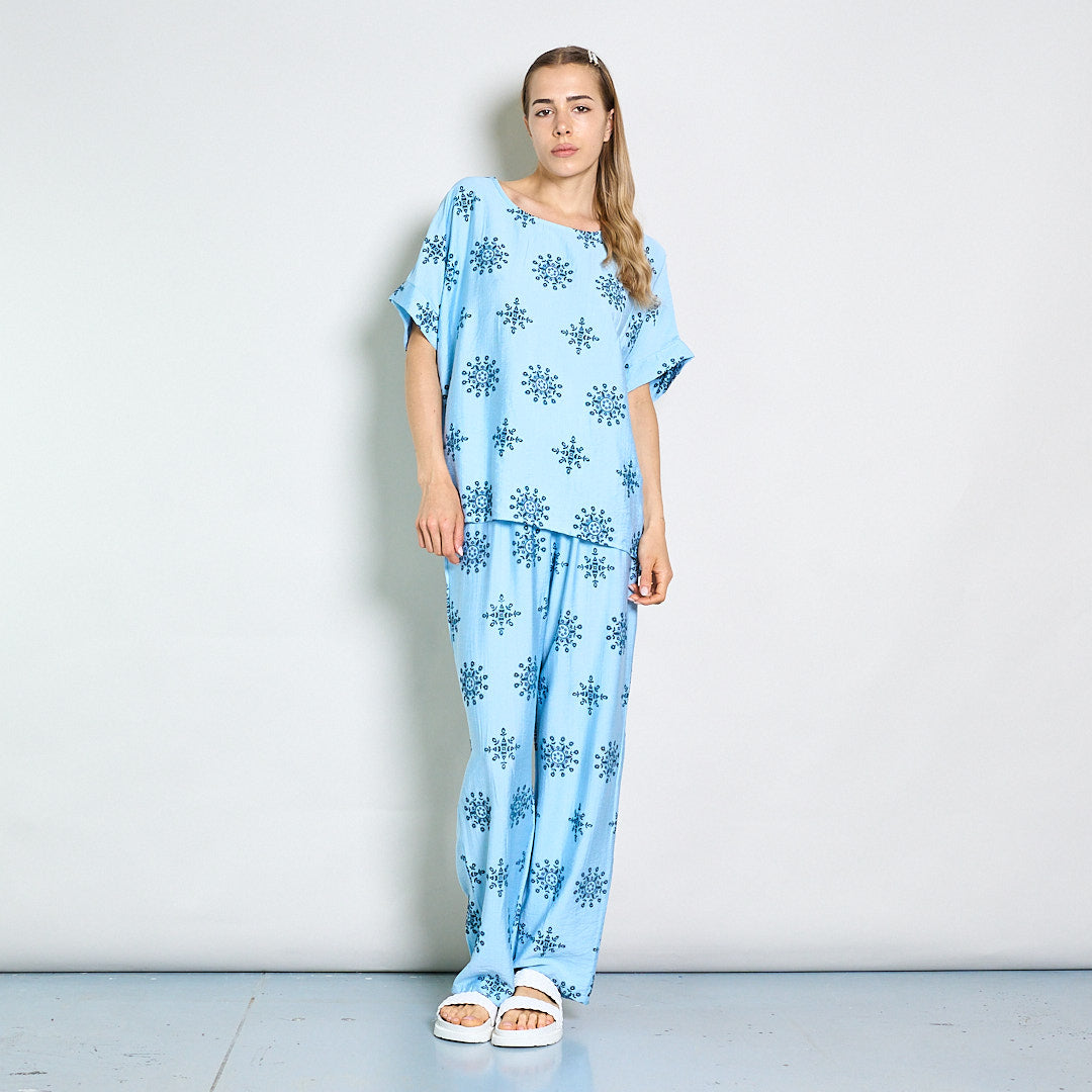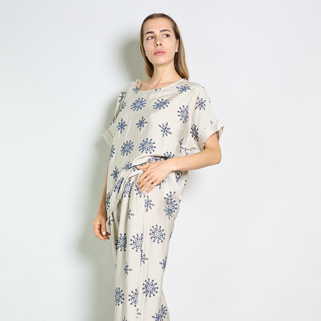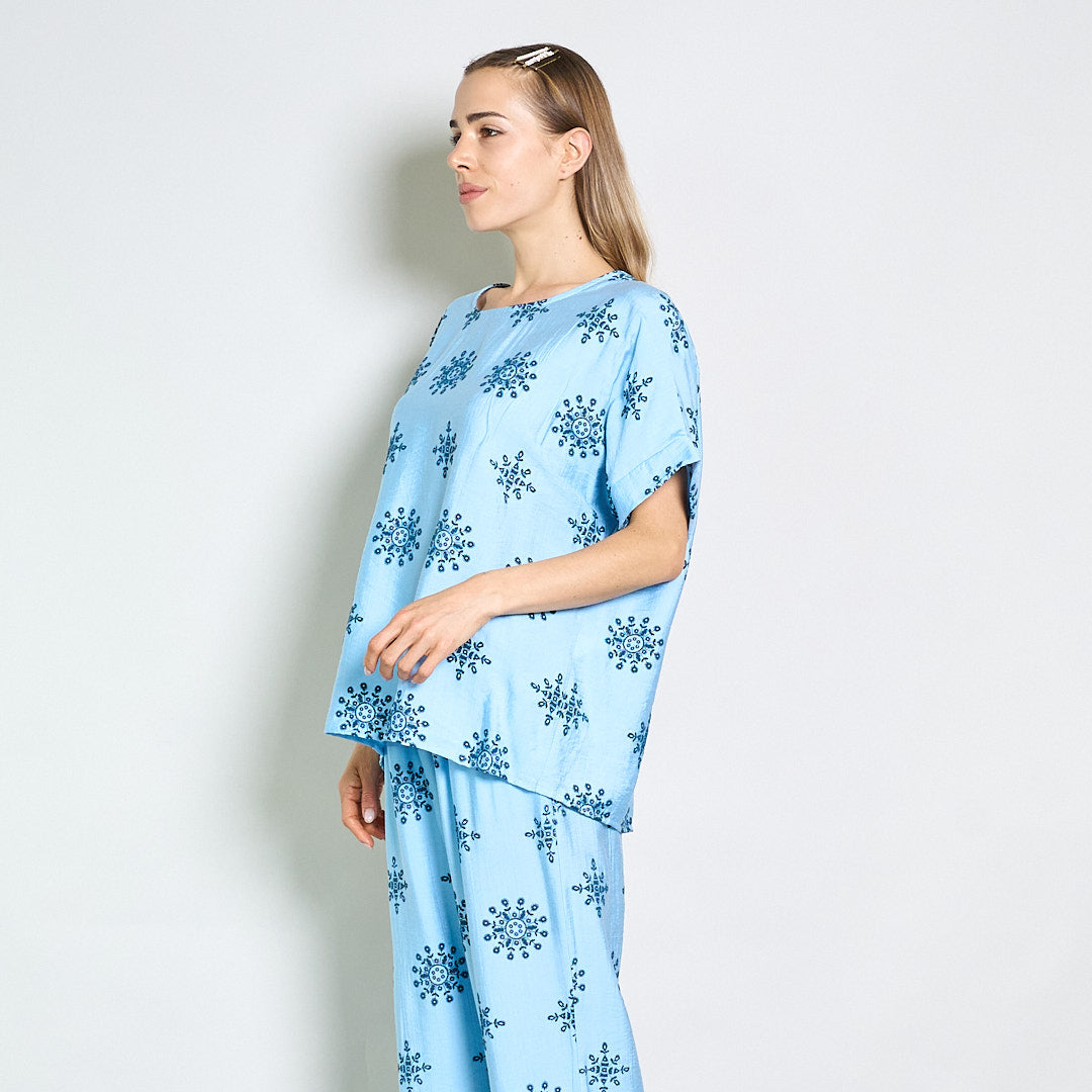 Camicetta ricamata boxy con scollatura rotonda all'ingrosso