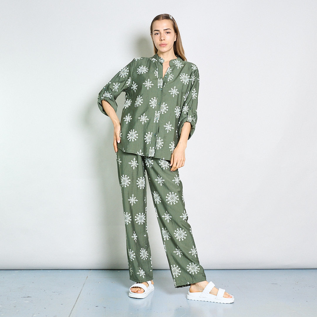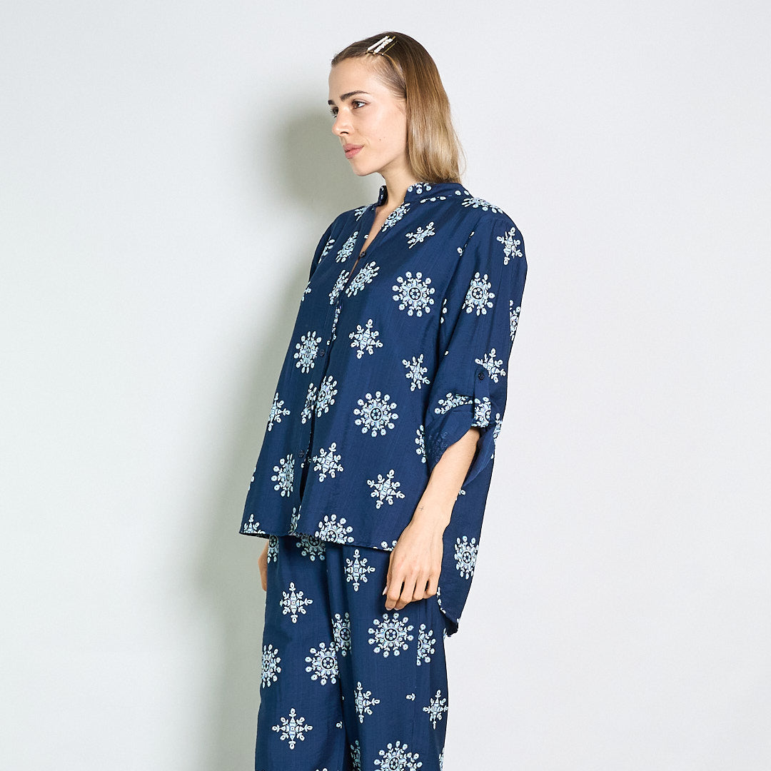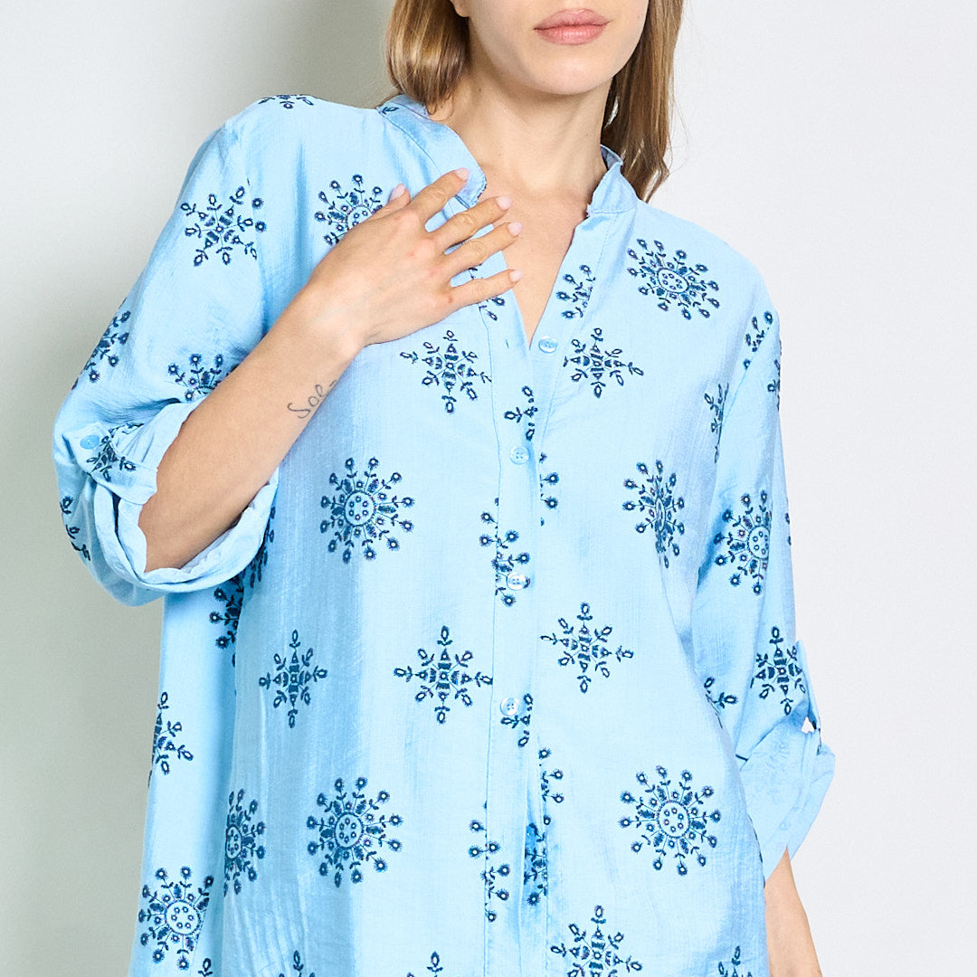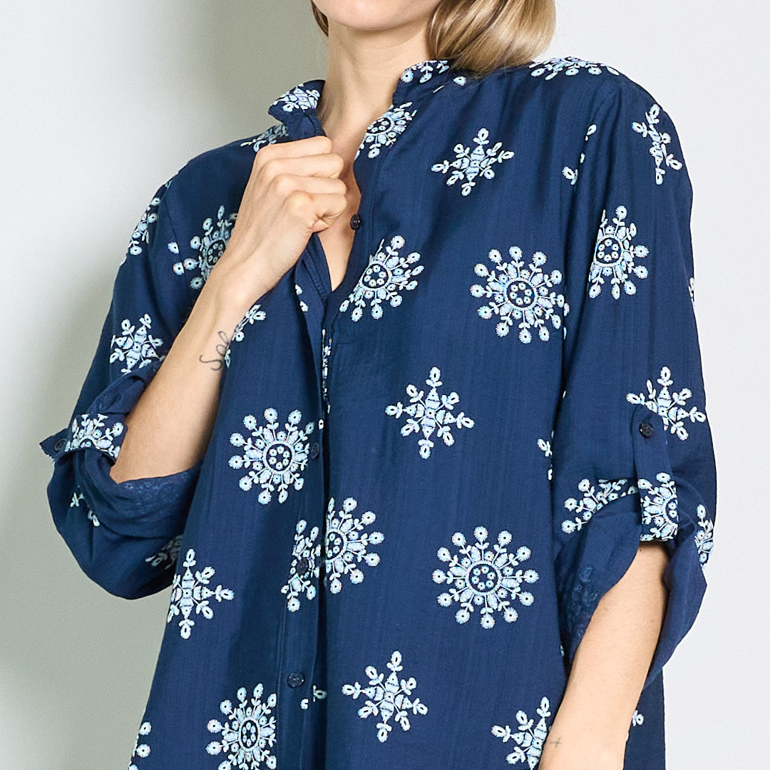 Camicetta ricamata rilassata con collare mandarino all'ingrosso